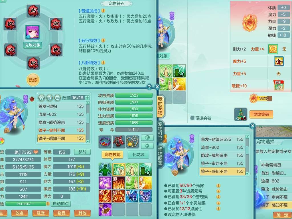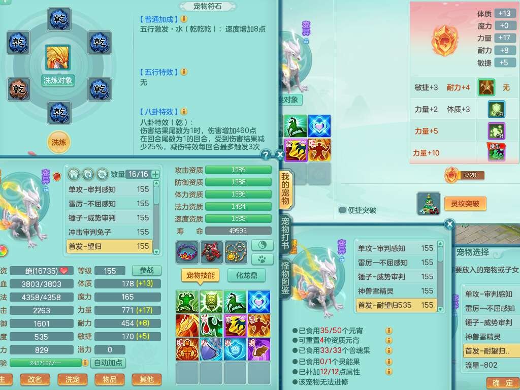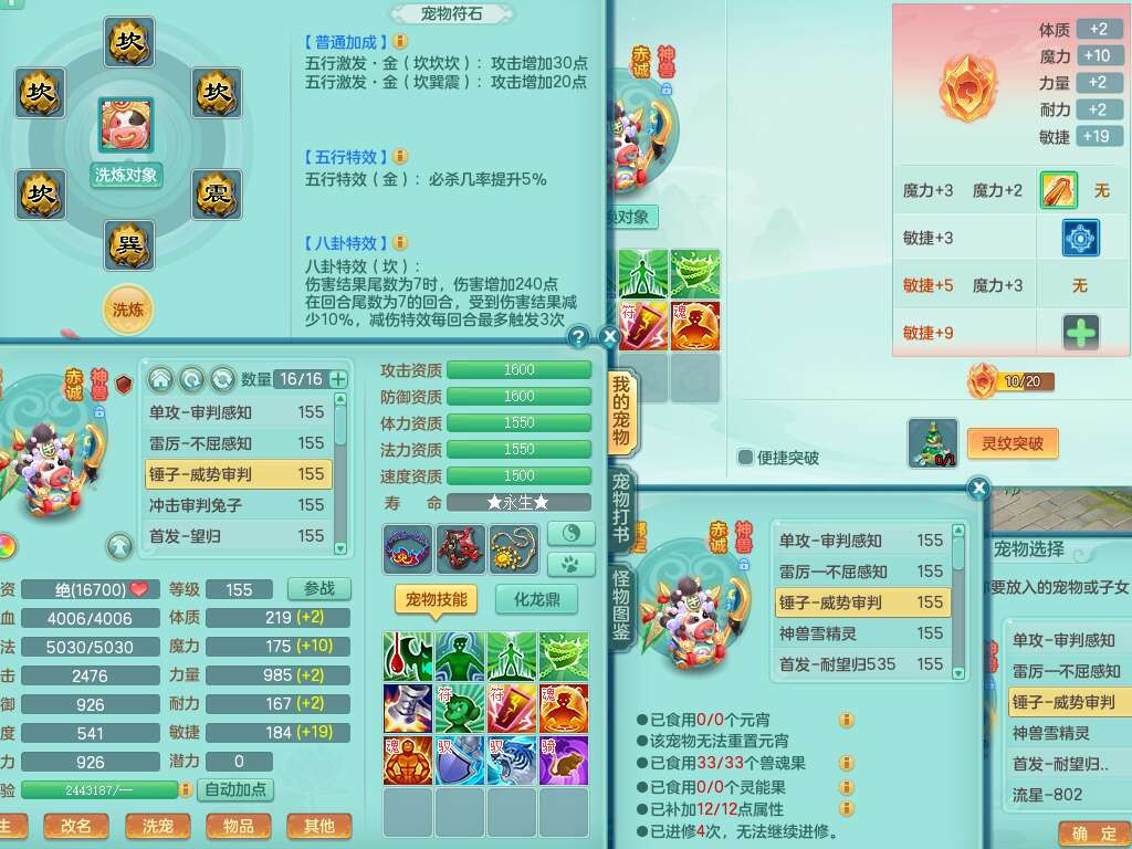 S22107生日快乐159男普陀,精灵舞,2龙2内胆神,7只觉醒(4只潜龙BB,符石差3个主要,2个附加,化龙鼎差5.5),4位靓号不含4,6宠皮,1只六技能龙姬,4只六技能镜花灵,3特殊(夺命,流星,墨守),愤怒六特,物理923易成长武器,破甲单加55鞋子,坚毅项链,5.0基础鼎+70攻+280血,14个永久格子,7个纯六字,3个五字,23只满果子,宠排在榜,经验修炼成就在榜,5个坐骑,2只双人,暴龙泰坦,带66天月卡。