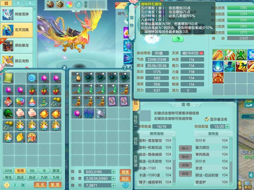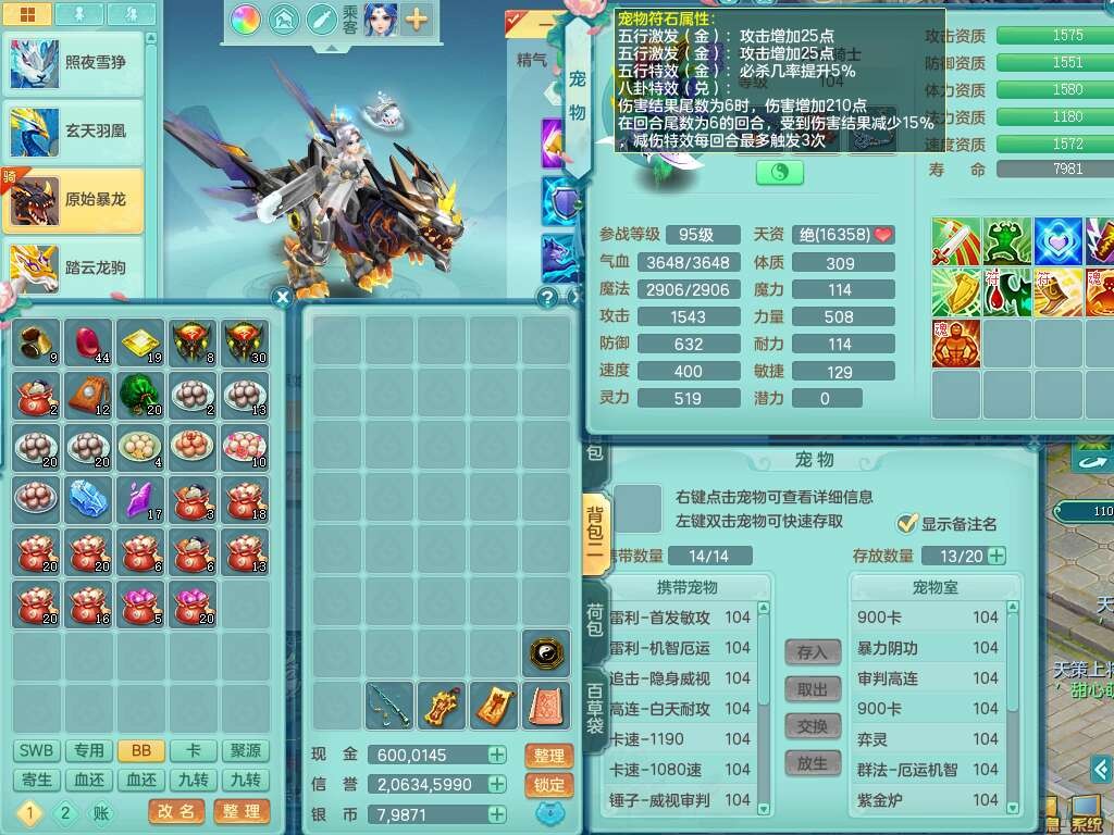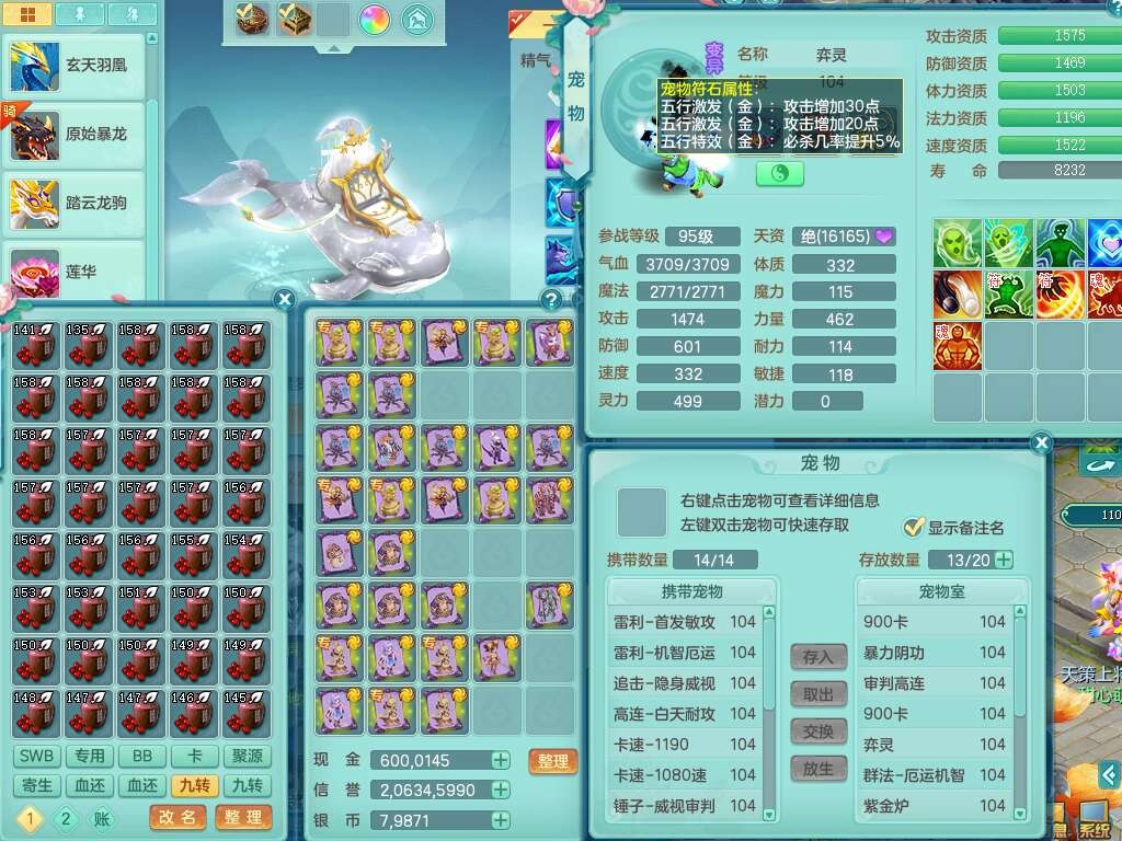 p22096花好月圆99女力天宫,6龙2内胆神,2破镜,【16只觉醒,已潜龙】,4位靓号不含4,5宠皮,554易成长蓄力一击单加33武器,崩山衣服,神佑破血链子,愤怒单加32腰带,迅捷单加35鞋子,有破甲单加32鞋子,2.5基础鼎+42攻+168血,10个纯六字,5个五字,23只满果子,仓库还有60个果子,宠排在榜,6只坐骑,暴龙泰坦+西瓜冰武器,冰晶庭院。
