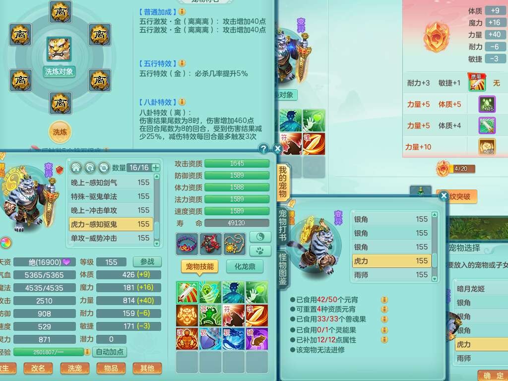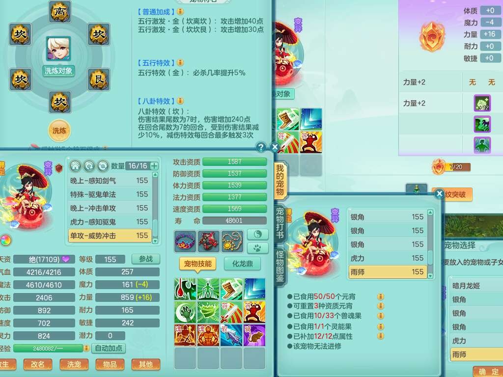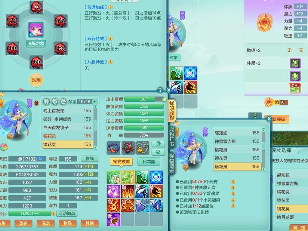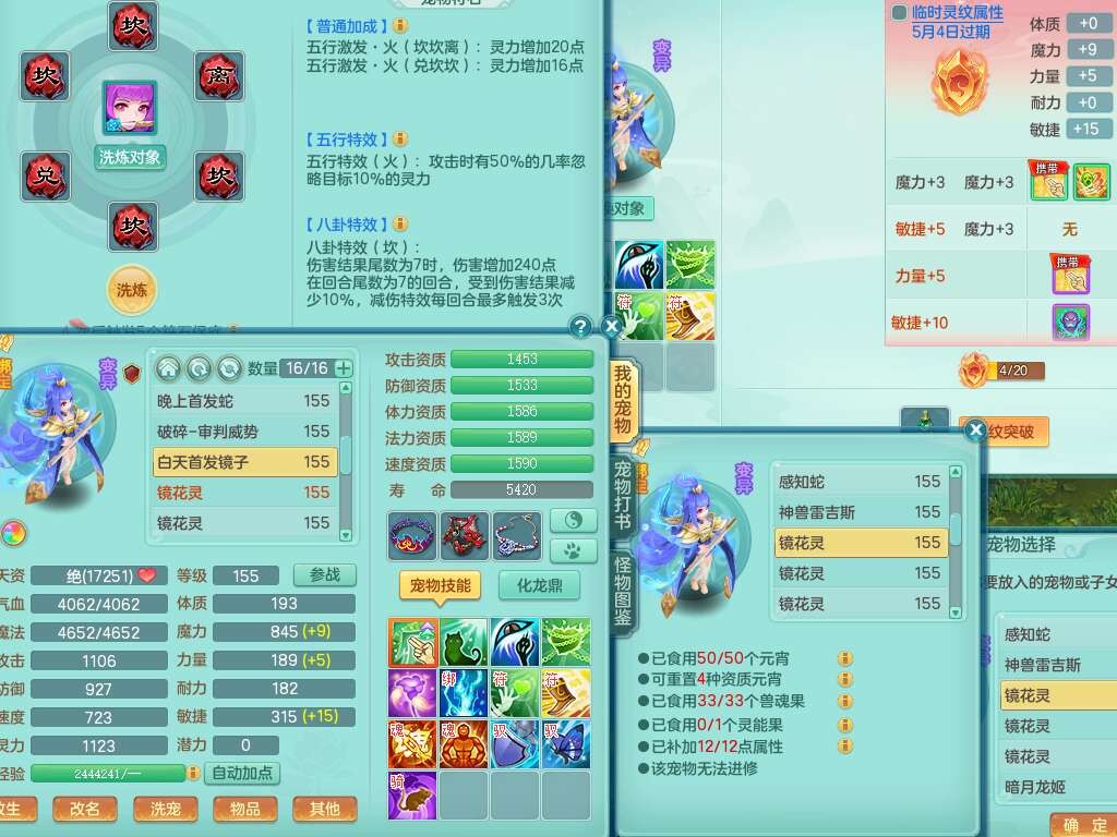 A22102龙腾九州159男方寸,精灵舞,5龙2内胆神,【10觉醒,已潜龙】,4位靓号不含4,2宠皮,4特殊(剑胆,藕断,上善,雷利),3只六技能镜花灵,1只六技能龙姬,愤怒易成长单加腰带,五特,5.5基础鼎+70攻+280血,14个永久格子,10个纯六字,1个五字,19只满果子,仓库还有35个果子,宠排在榜,经验在榜,永久称谓,2只双人坐骑,24天月卡。