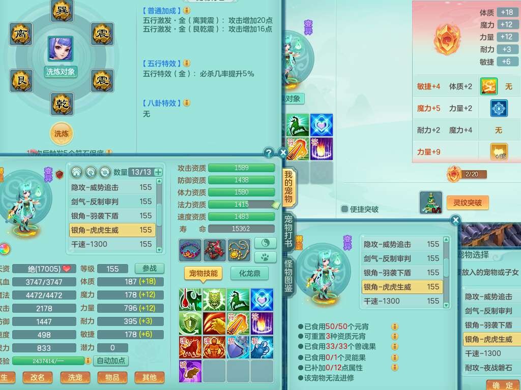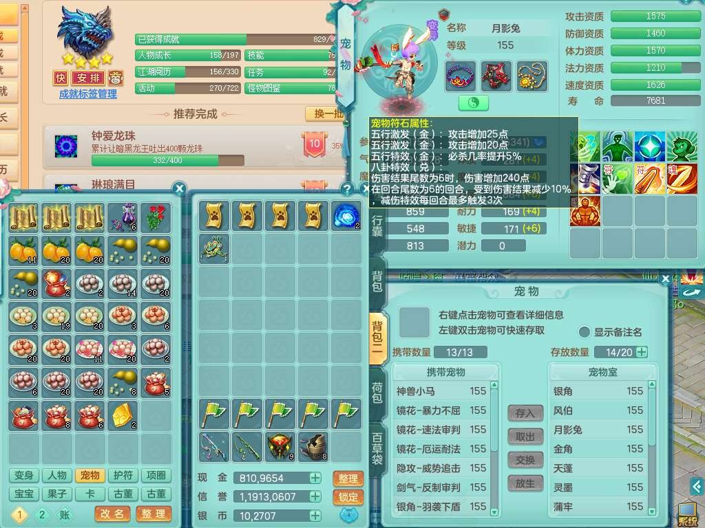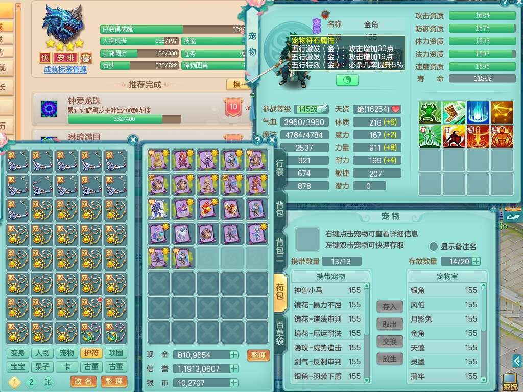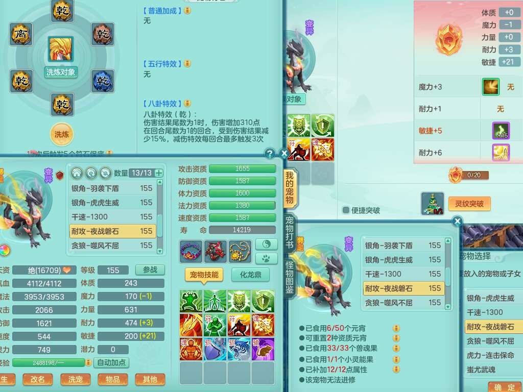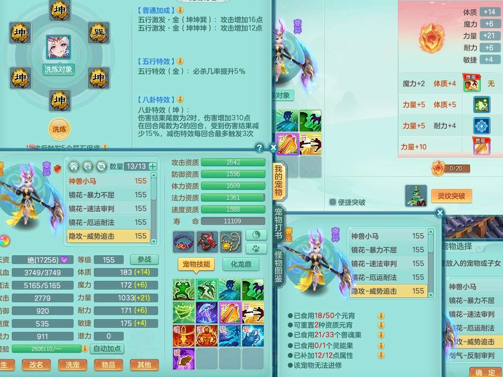 S22094七窍玲珑159男万兽,1内胆神,2觉醒,2特殊(羽袭,虎虎),3只六技能镜花灵,1只六技能龙姬,易成长魔音摄心单加56头,903易成长崩山单加武器,易成长慈航单加57衣服,坚毅破血链子,易成长四灵诀单加腰带,易成长单加55鞋子,4.5基础鼎,1个五字,3只满果子。➕159女方寸奶粉,1神兽,1觉醒,1只六技能镜花灵。➕159女地府奶粉,1神兽,2觉醒,1只六技能镜花灵,1只六技能龙姬。
