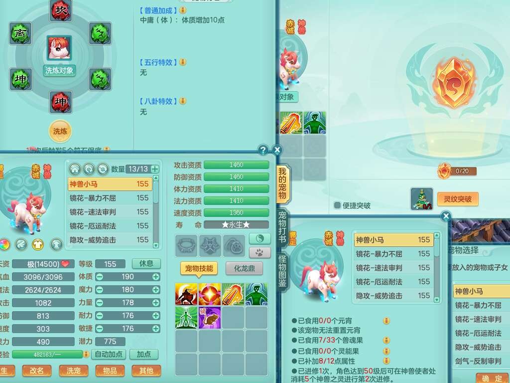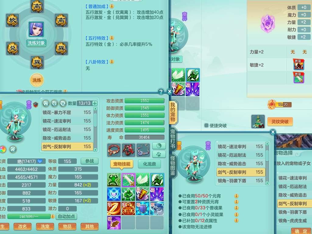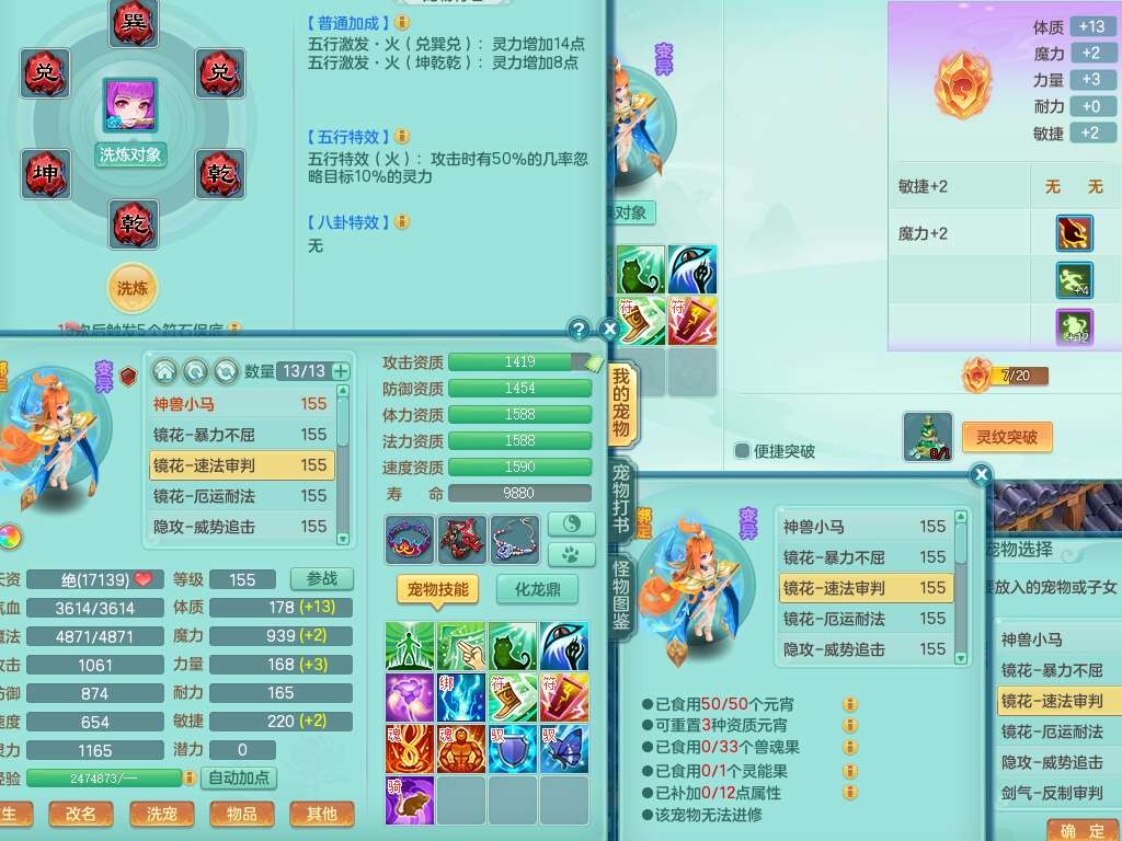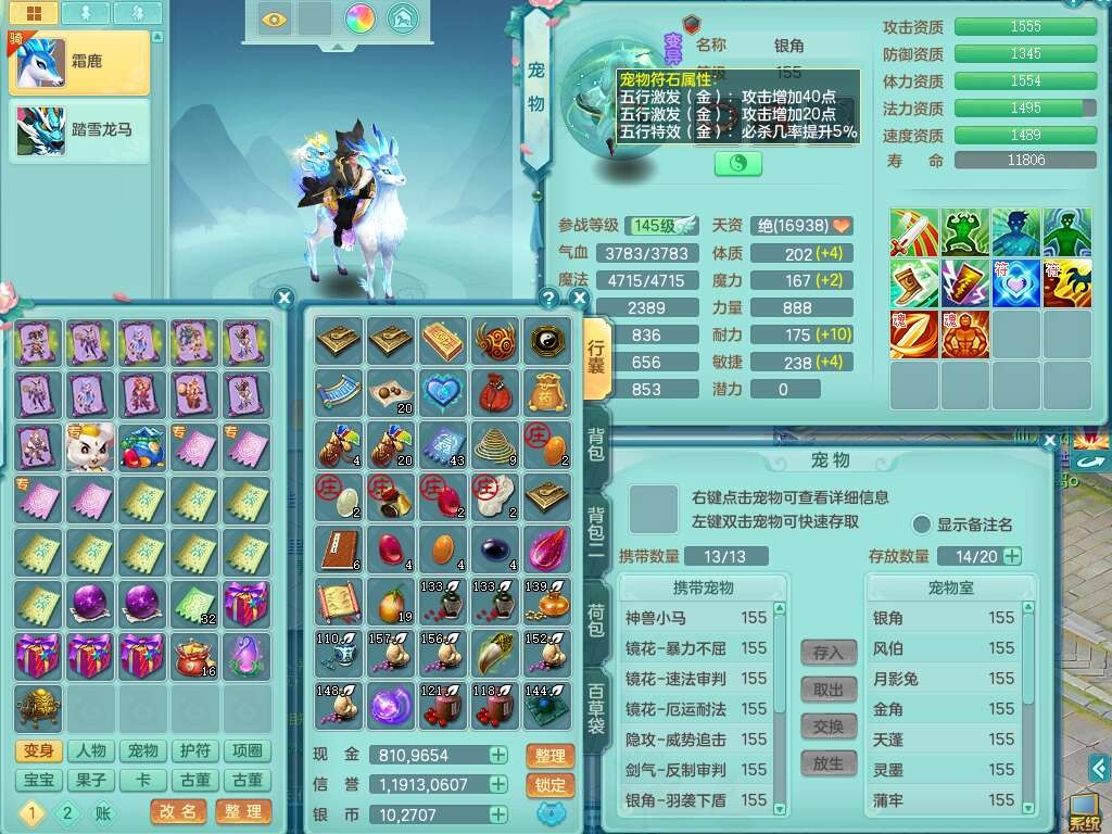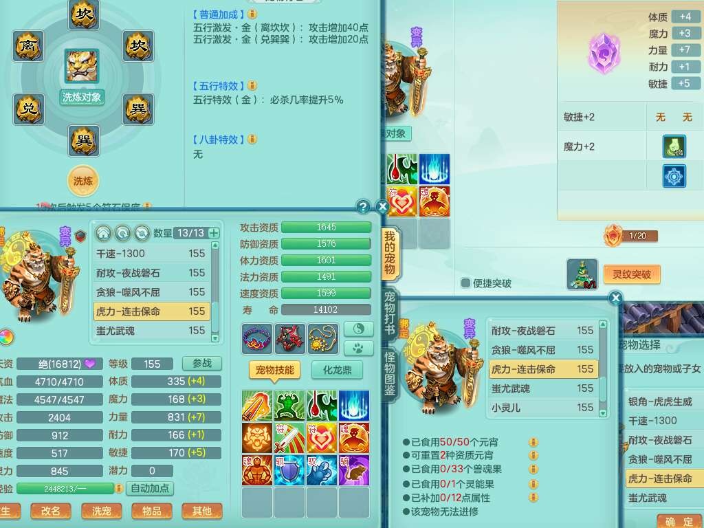 S22094七窍玲珑159男万兽,1内胆神,2觉醒,2特殊(羽袭,虎虎),3只六技能镜花灵,1只六技能龙姬,易成长魔音摄心单加56头,903易成长崩山单加武器,易成长慈航单加57衣服,坚毅破血链子,易成长四灵诀单加腰带,易成长单加55鞋子,4.5基础鼎,1个五字,3只满果子。➕159女方寸奶粉,1神兽,1觉醒,1只六技能镜花灵。➕159女地府奶粉,1神兽,2觉醒,1只六技能镜花灵,1只六技能龙姬。
