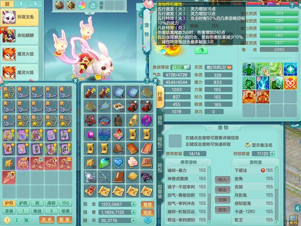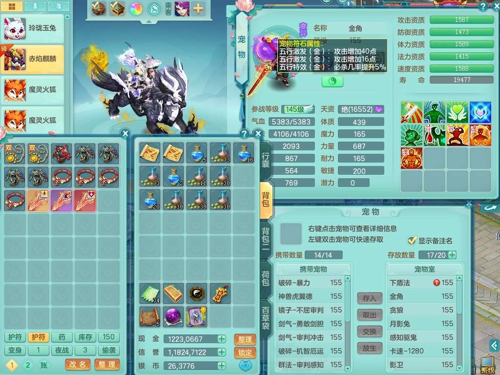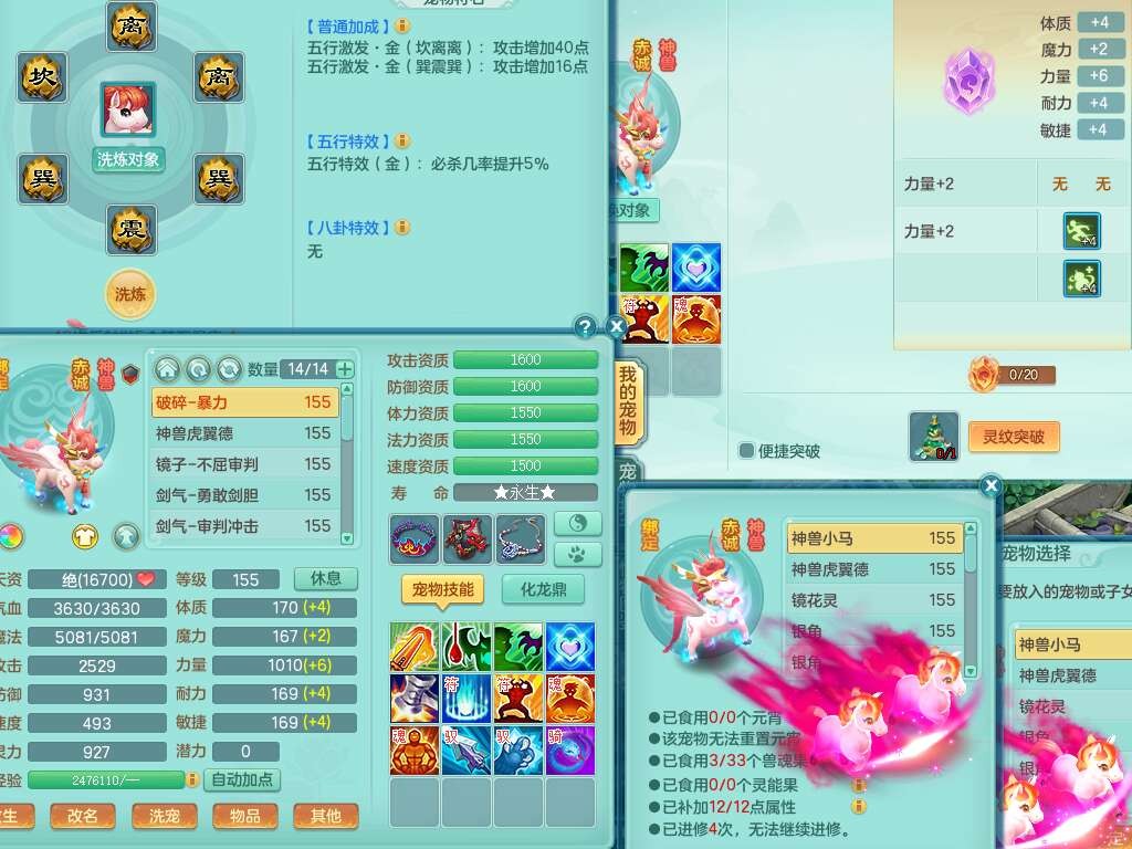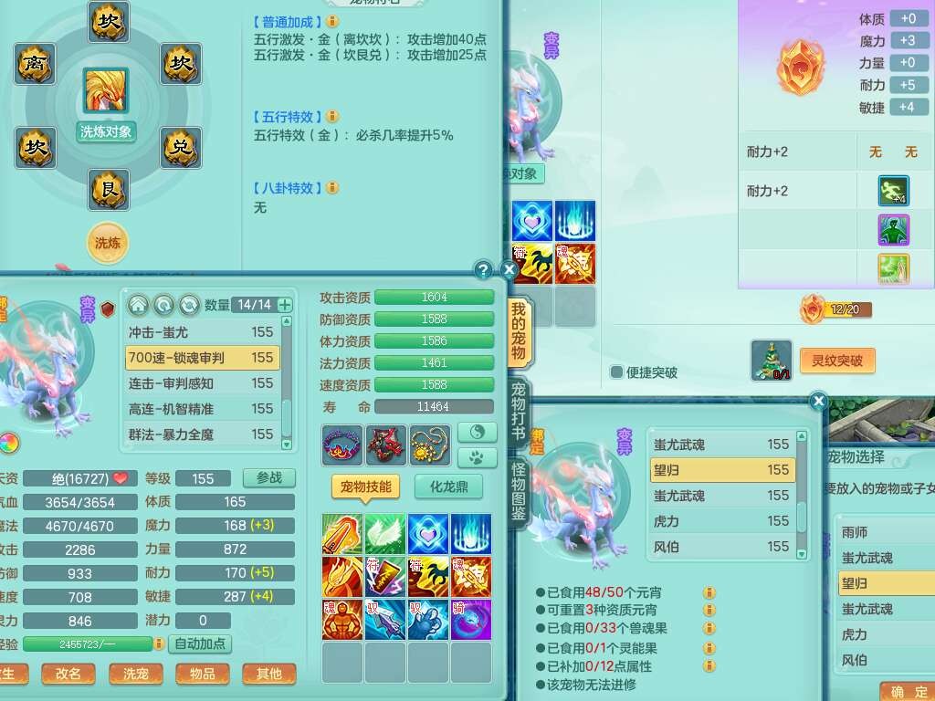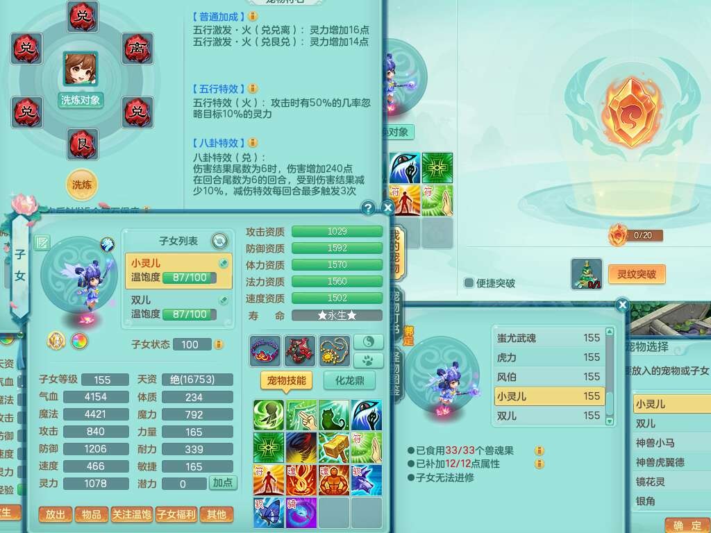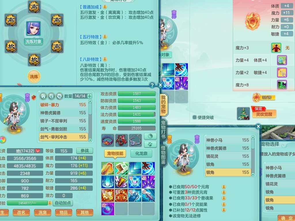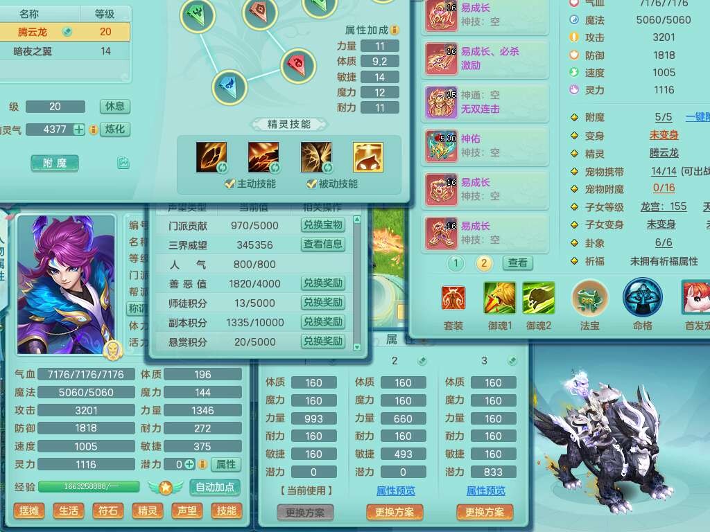 S22092扬名立万159男万兽,精灵歌,1内胆神,4觉醒,1宠皮,4特殊(剑胆,锤子,以战,虎虎),1只六技能镜花灵,易成长单加53头,904三红必杀易成长野兽武器,神佑单加50项链,易成长单加55腰带,有易成长单加55衣服,4.5基础鼎,13个永久格子,9只满果子,2只双人坐骑,22个仙兽蛋。
