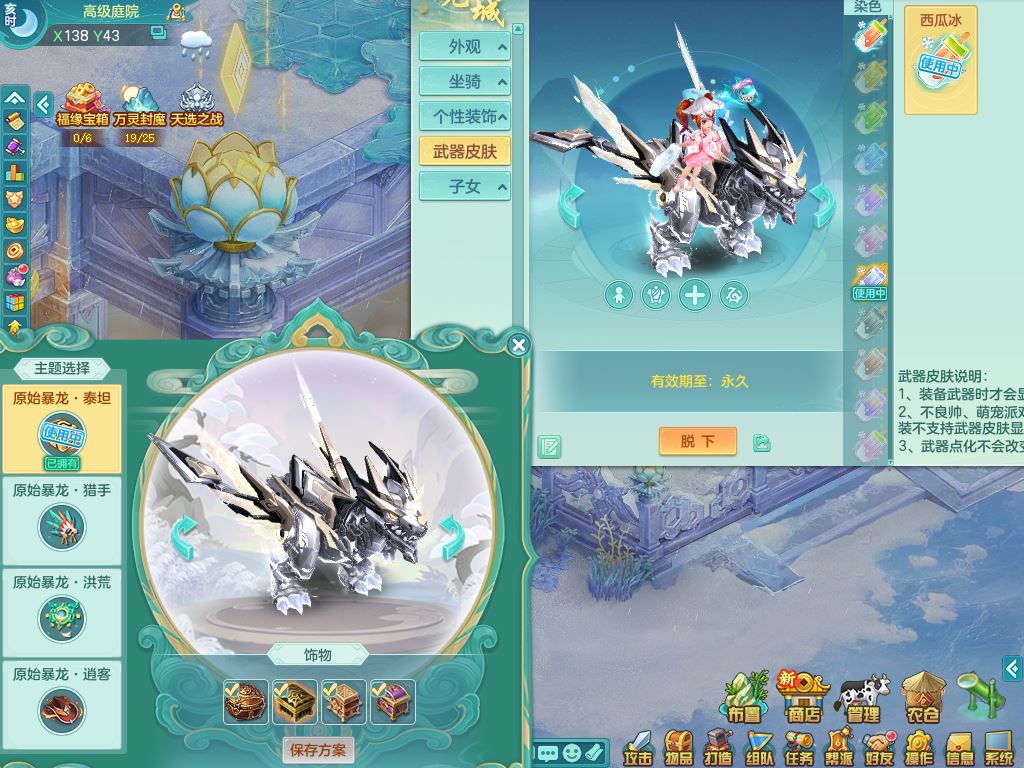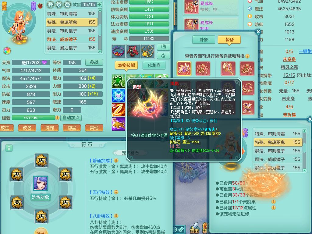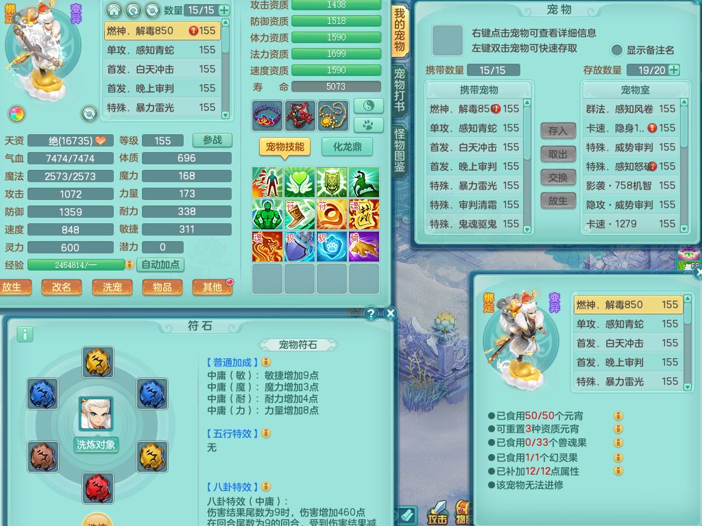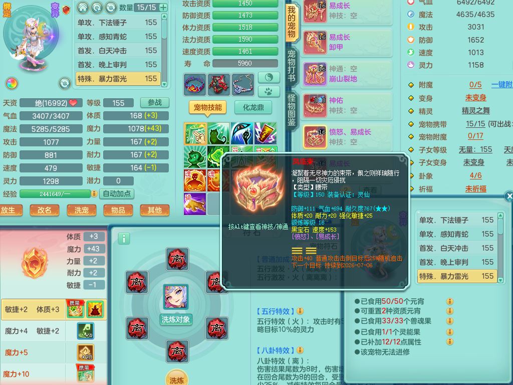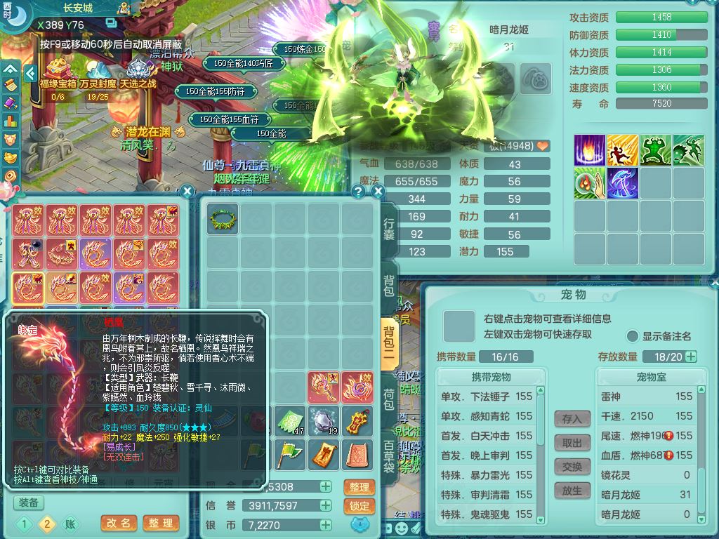 jt10362九天揽月159女天魔【潜龙在渊+暴龙泰坦+西瓜冰】精灵舞,1内龙2内(2青蛇)1望归4镜花3龙姬10特殊(荒古*2、雷光、青霜、流星、号角、风卷、勇猛、怒破、影袭)6宠皮,10觉醒11六字2五字4四字综合21只满果子,8红装备,Y卸甲武器,愤怒Y腰带,Y罗汉鞋子,鼎5.5+70+280,3套符石,51天月卡,冰晶庭院165,房屋152,31个内丹碎片,2个混沌果,1双人飞行坐骑
