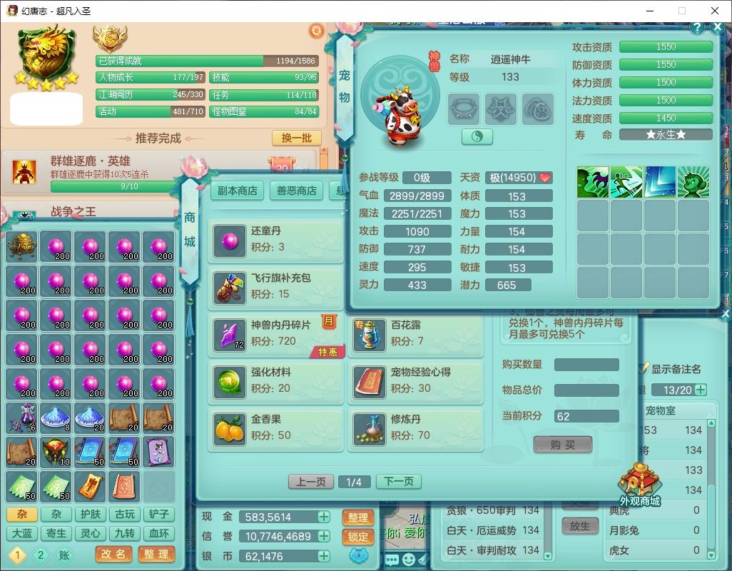 a22070超凡入圣129男万兽,精灵歌,1龙无内,2内丹神(1青蛇),【10觉醒,潜龙号】,8字靓号AABBBBAA,6宠皮,1神石,1九幽,1炉子,10个六字,2个五字,7个四字,22只满果子,7红装备,狂暴武器,崩山衣服,Y止戈腰带,1套双法缭星辰之拥装备,法缭回头衣服,法缭Y鞋子,212Y项链,4.5基础鼎+56+224,2套符石,165天月卡,庭院176房屋175,永久头饰、背饰、精灵皮肤,半页还童丹,31内丹碎片,暴龙洪荒,1双人飞行坐骑。