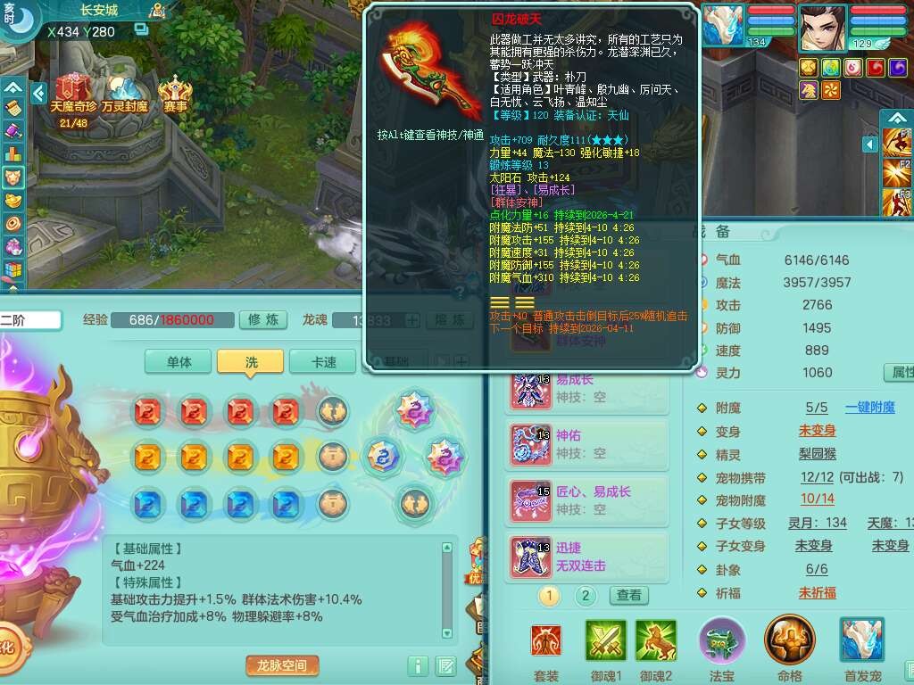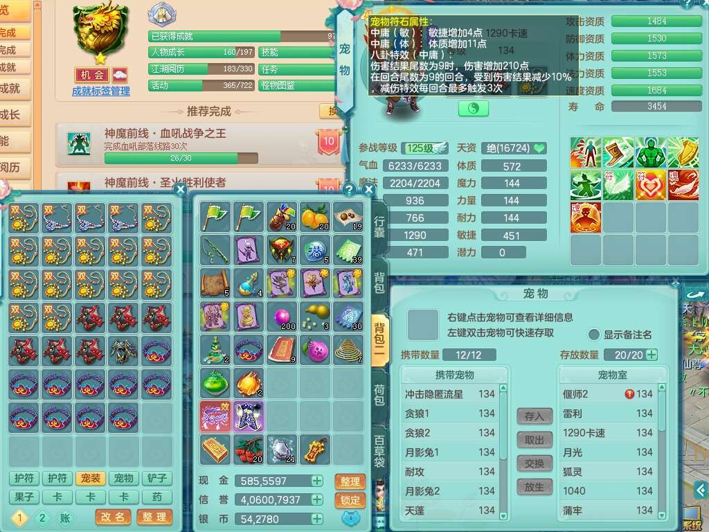 p22065锦绣河山129男天策,精灵歌,7觉醒(准潜龙,符石差1个主要属性,2个附加属性),2宠皮,易成长单加44头,709三红狂暴易成长群体安神单加44武器,易成长单加44衣服,神佑单加43项链,匠心易成长腰带,迅捷破血鞋子,有法爆武器,易成长慈航单加40鞋子,4.0基础鼎+56攻+224血,7个纯六字,15只满果子,双人坐骑,144天月卡。带两个157奶粉。