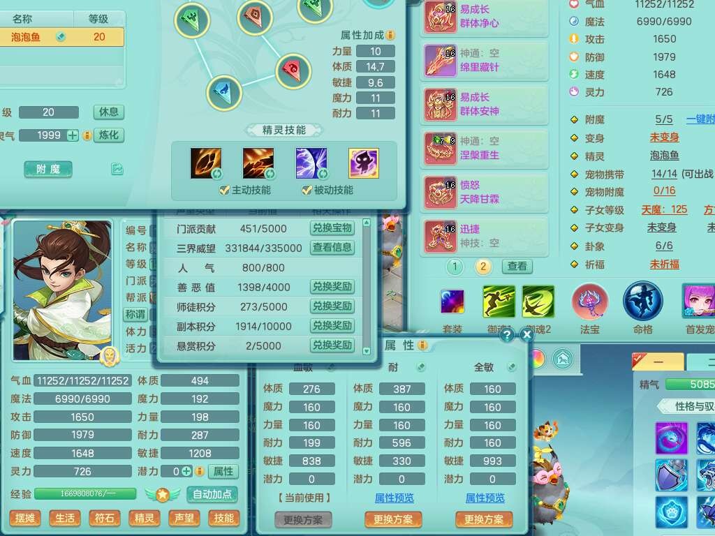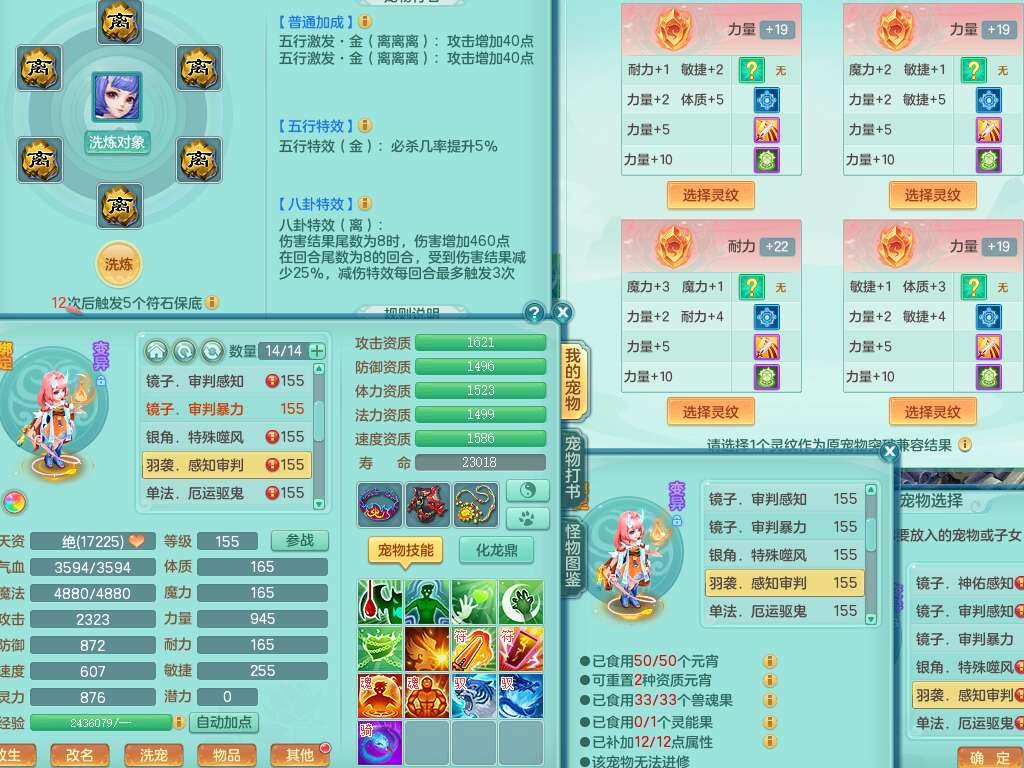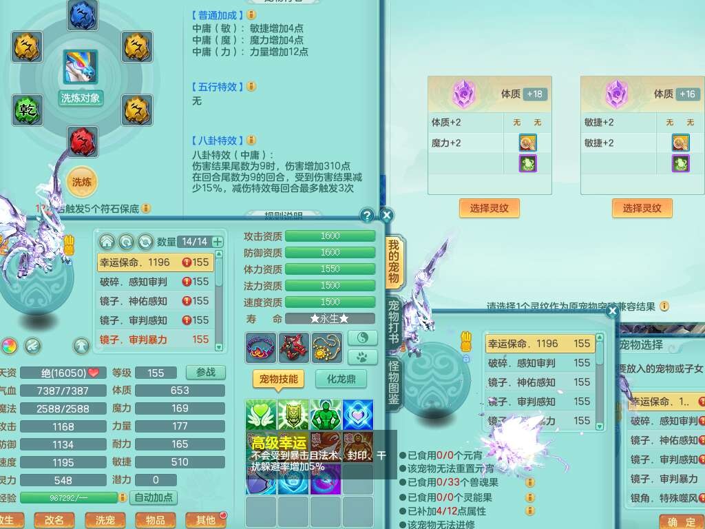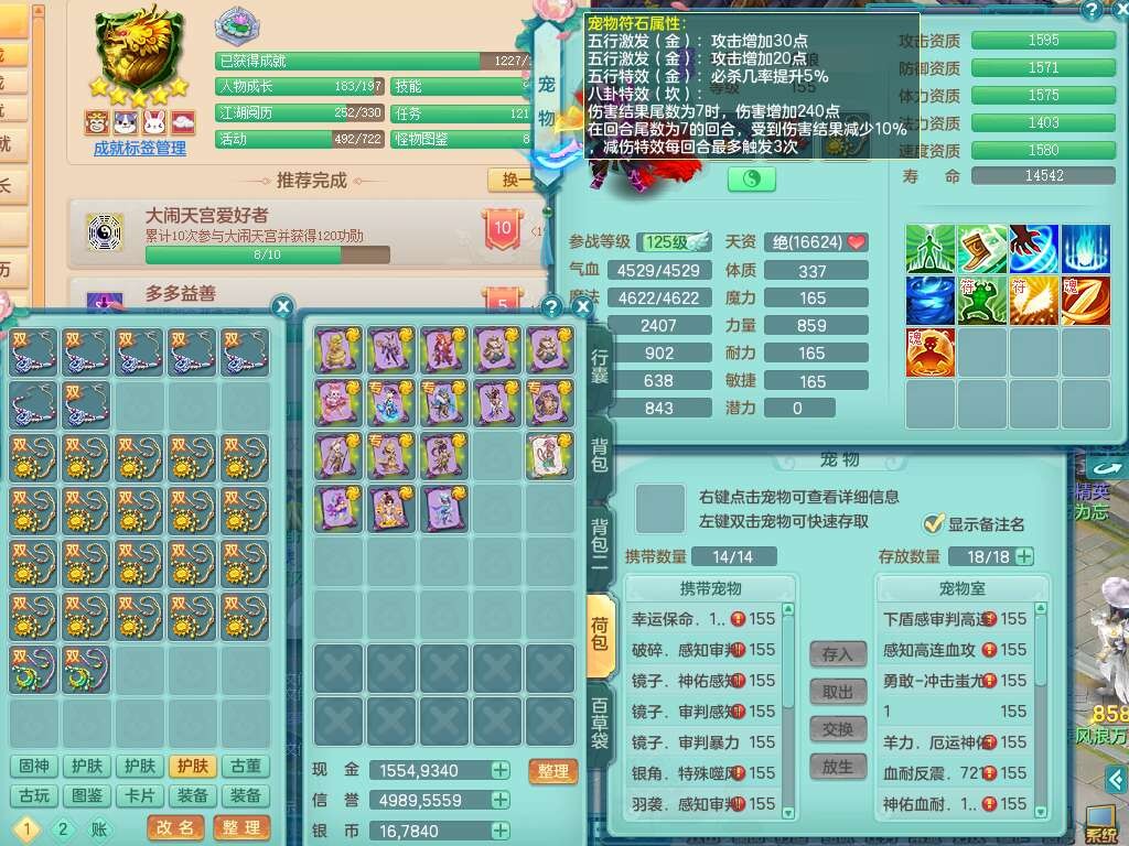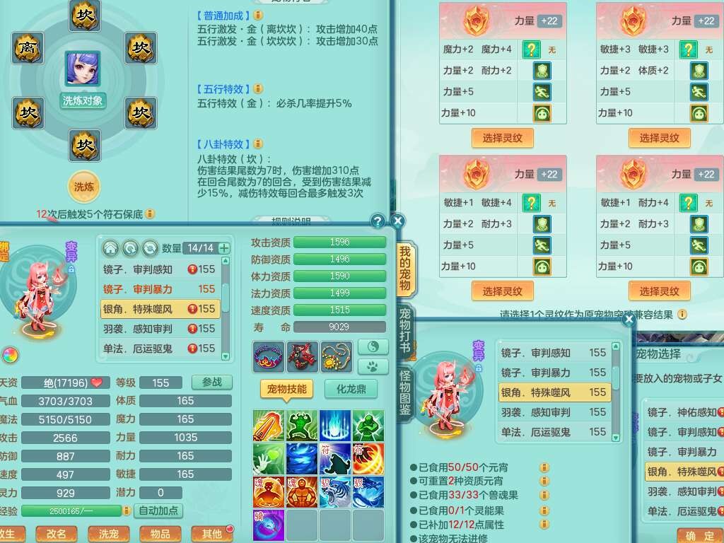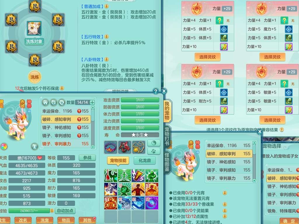 J22064生日快乐159男天魔里,精灵舞,1龙没内,1内胆神,6觉醒,1宠皮,2特殊(噬风斩,羽袭),3只六技能镜花灵,易成长晶清单加51头,易成长群安神衣服,愤怒四海单加57腰带,迅捷单加45鞋子,五特,有263坚毅单加55项链,4.5基础鼎+70攻,5个纯六字,3个五字,10只满果子,成就在榜,40个神兽内胆碎片。