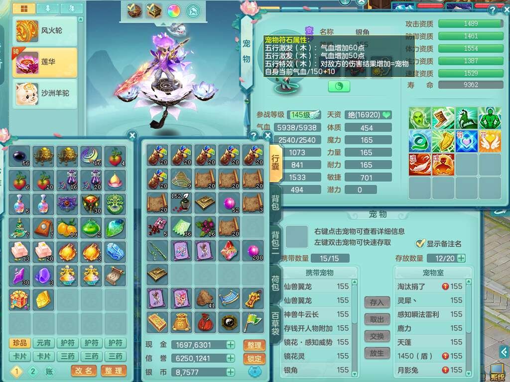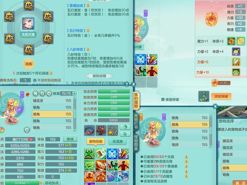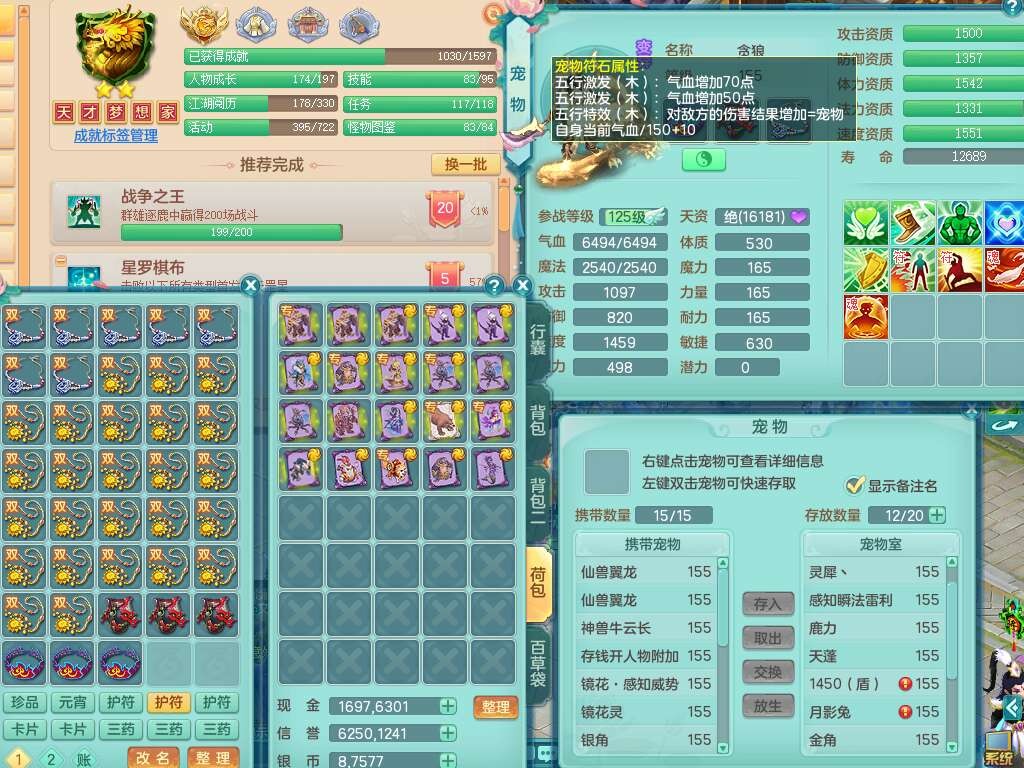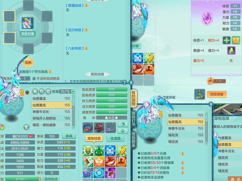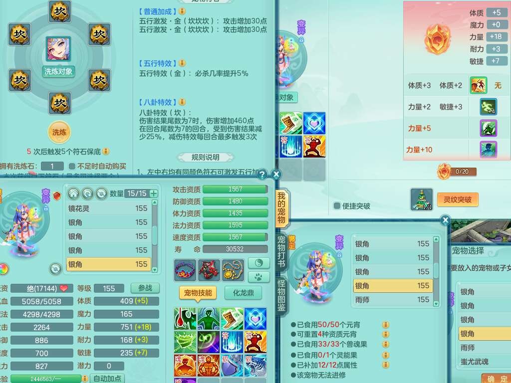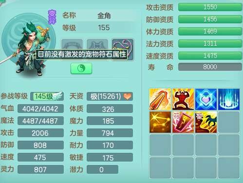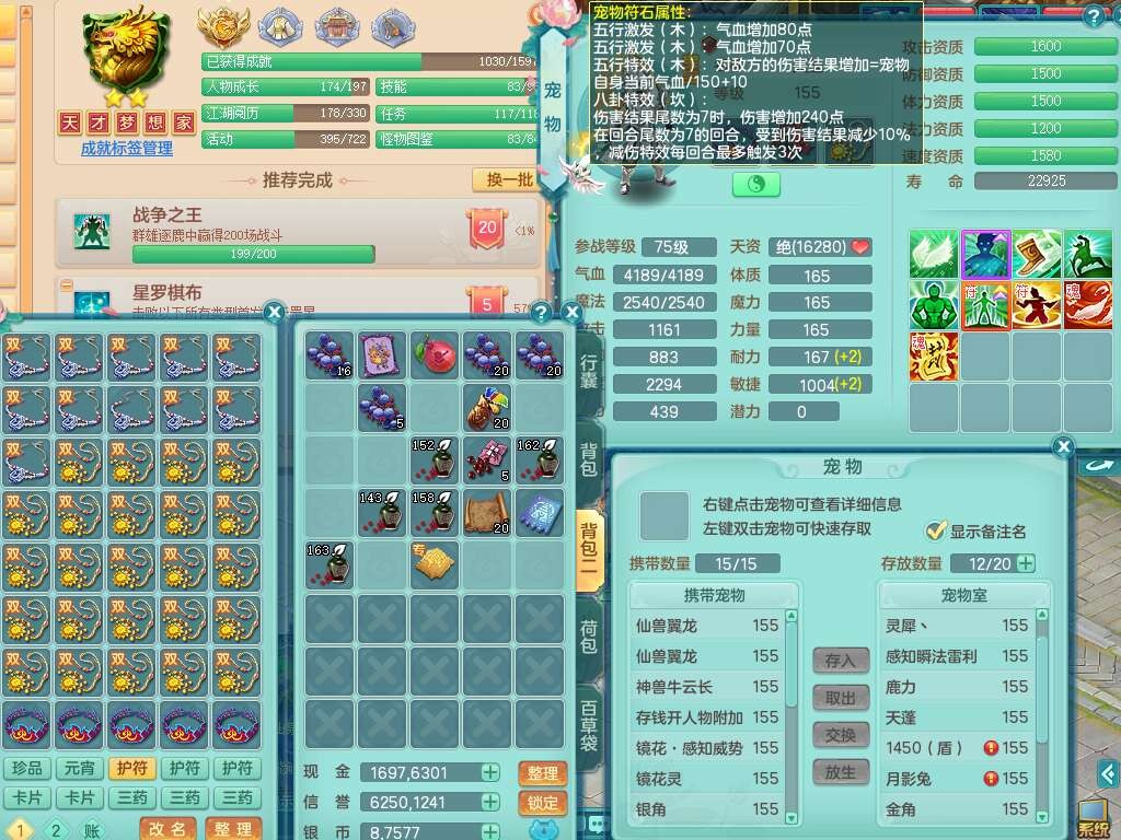 S22060少年游159男五庄,精灵舞,2龙(1龙没内),1内胆神,【12觉醒,已潜龙】,8宠皮,5特殊(坠天,勇猛,双星闪,月光,逆龙),3只六技能镜花灵,愤怒单加55腰带,五特,有932易成长单加54武器, 易成长单加57头,5.5基础鼎+70攻+280血,13个永久格字,7个纯六字,16个满果子,仓库还有30个果子,宠排在榜,修炼在榜,2只坐骑,30个神兽内丹碎片,178天月卡。