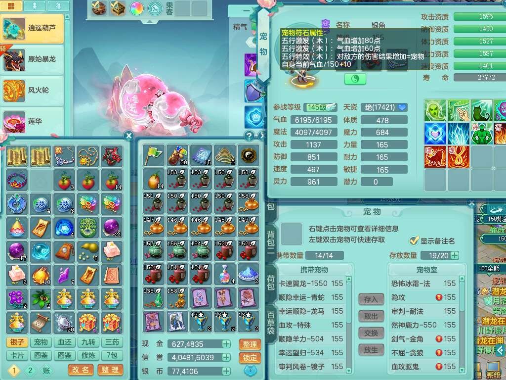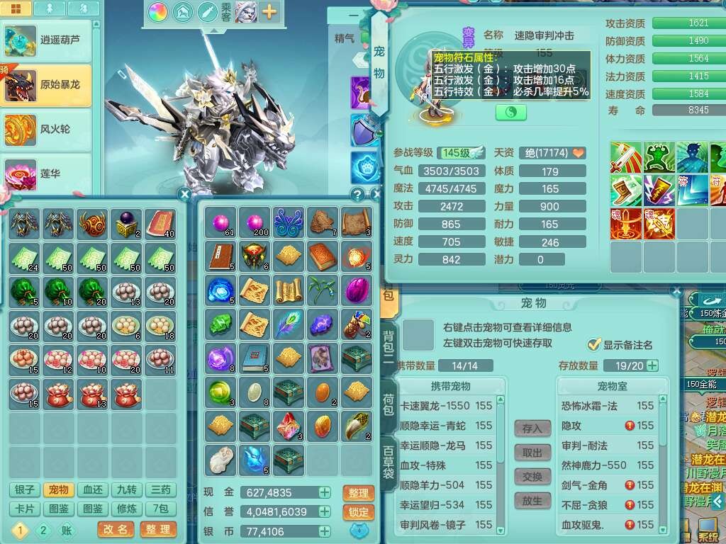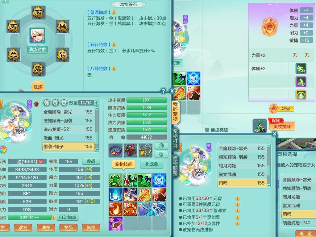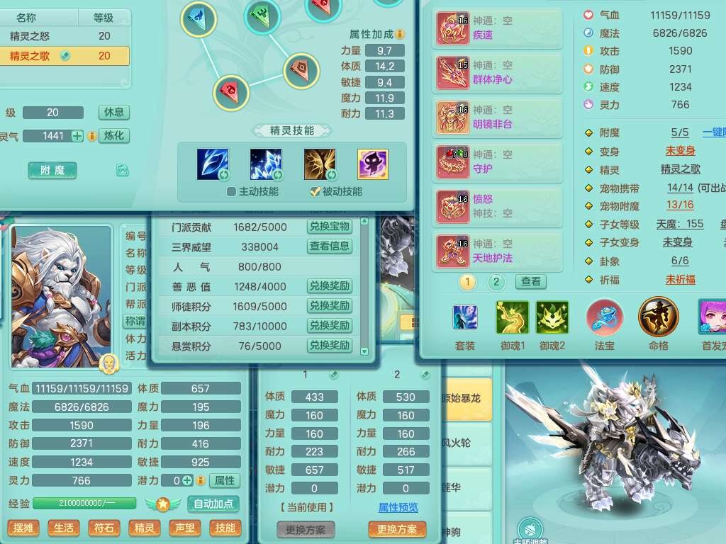 S22055笑傲江湖159男灵月山,精灵舞+怒,1内丹龙+68仙兽灵,2内胆神(1蛇1马),4位靓号不含4,2宠皮,5只觉醒,6特殊(上善,夺命,风卷,雷光,羽袭,锤子),1只六技能镜花灵,愤怒五特,5.5基础鼎+70攻,1个纯六字,16只满果子,经验在榜,成就在榜,永久称谓,6个坐骑,暴龙泰坦+神驹马到成功+火焰之力+西瓜冰,带196天月卡。