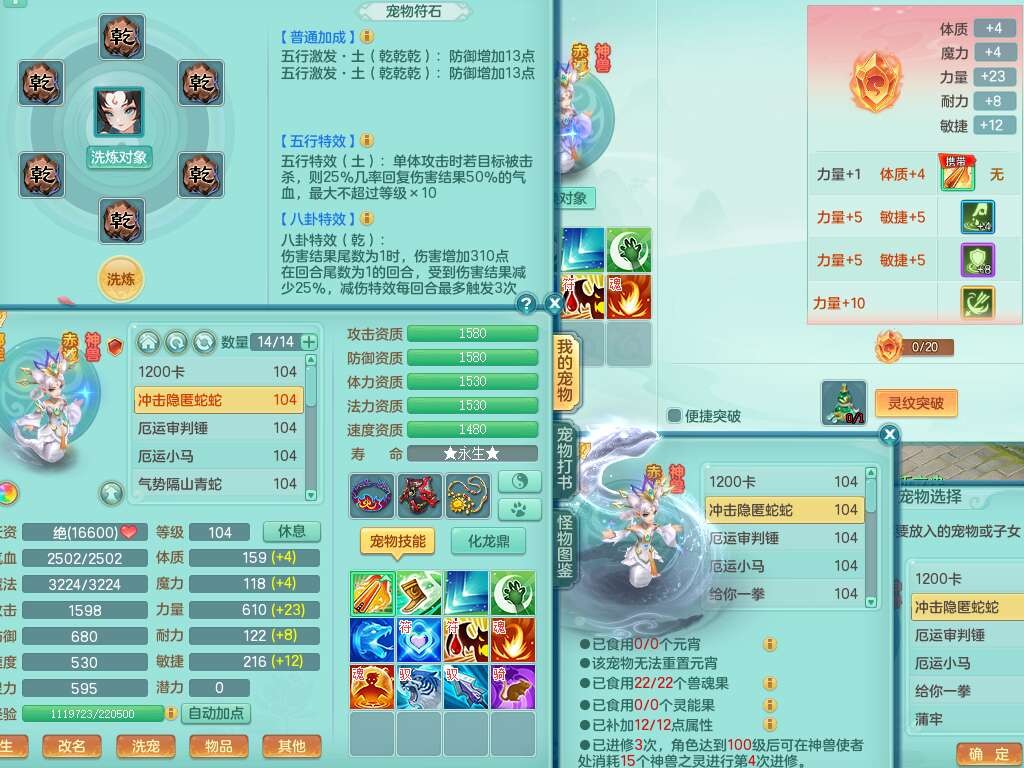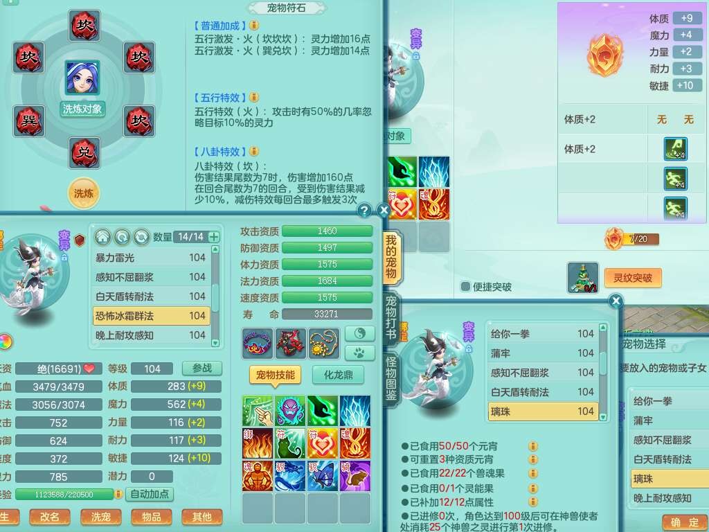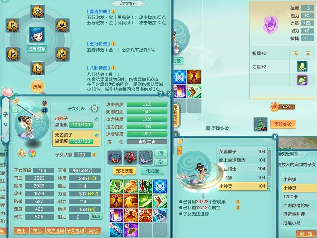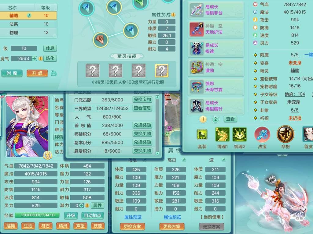 A22056清风明月99女灵月山,1龙4内胆神,1破镜,【物理已潜龙,辅助差4个气血可潜龙】,3宠皮,愤怒四海单加32腰带,6特,易成长笑里单加鞋子,有物理装备,551易成长单加武器,崩山单加30衣服,神佑易成长链子,易成长破血单加鞋子,3.0基础鼎,7个纯六字,2个5字,25只满果子,仓库61神兽内丹碎片,宠排在榜,3只染色坐骑,带4107金币,月卡还有30天。