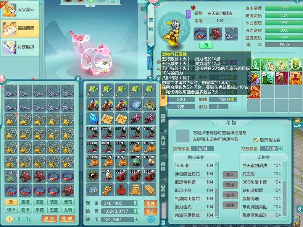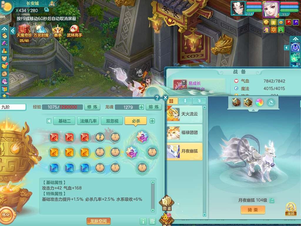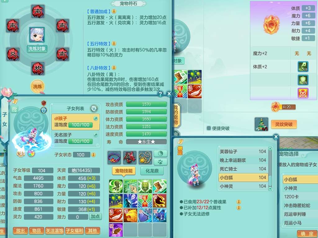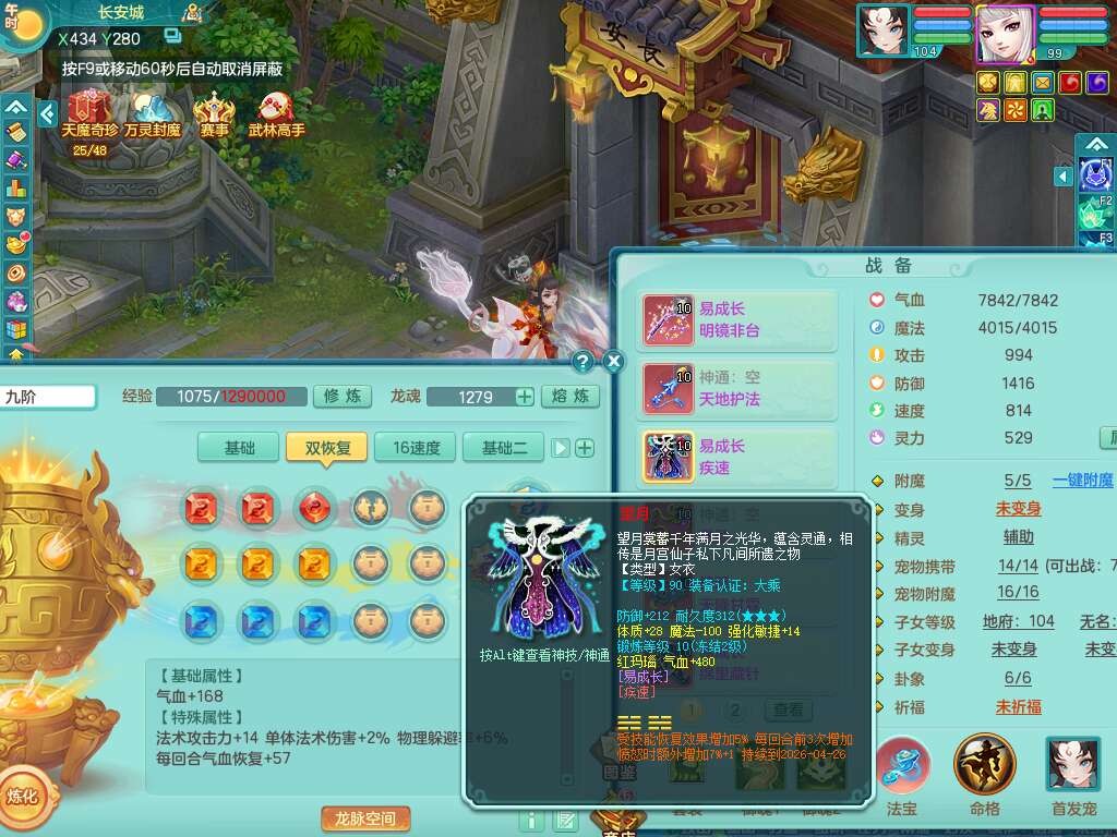 A22056清风明月99女灵月山,1龙4内胆神,1破镜,【物理已潜龙,辅助差4个气血可潜龙】,3宠皮,愤怒四海单加32腰带,6特,易成长笑里单加鞋子,有物理装备,551易成长单加武器,崩山单加30衣服,神佑易成长链子,易成长破血单加鞋子,3.0基础鼎,7个纯六字,2个5字,25只满果子,仓库61神兽内丹碎片,宠排在榜,3只染色坐骑,带4107金币,月卡还有30天。