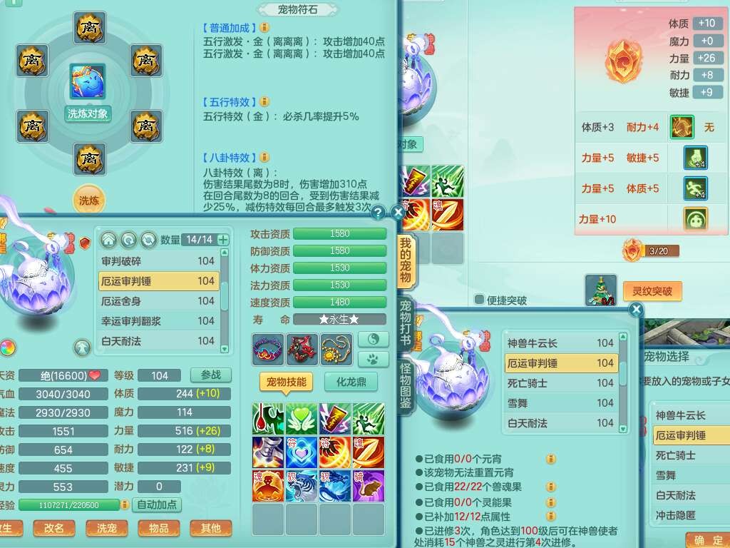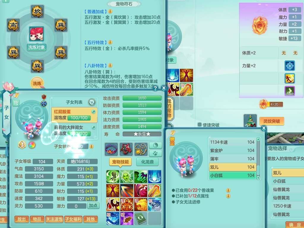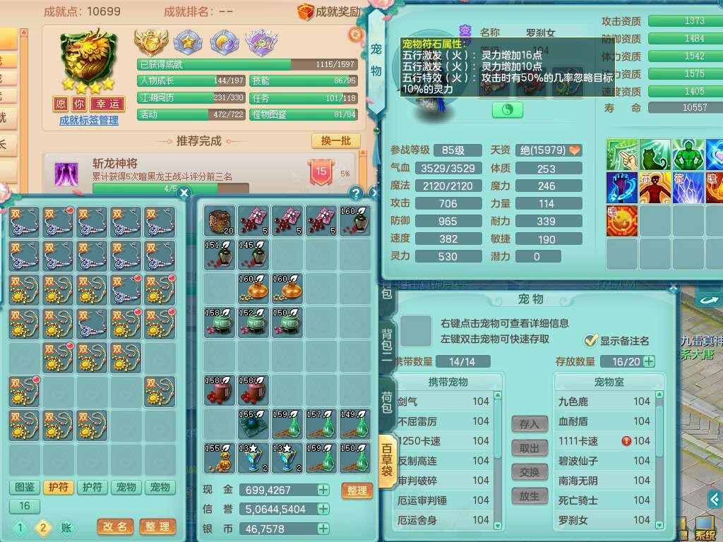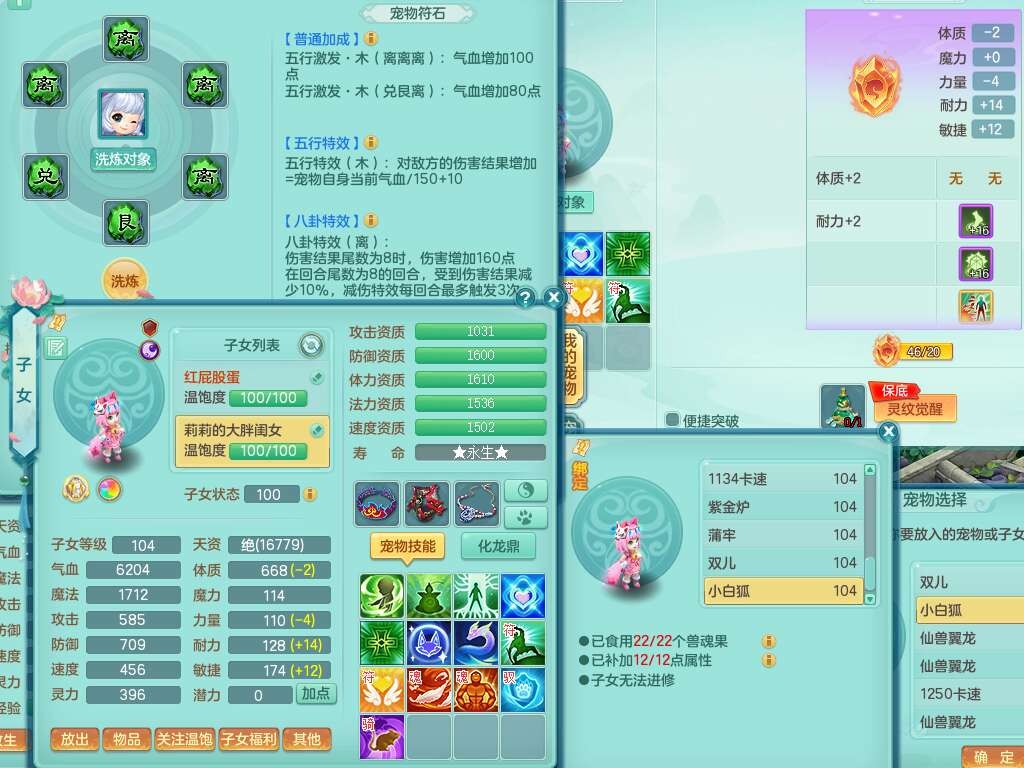A22059江山如画99女龙宫,4龙2内胆神,2破镜,【10只觉醒,已潜龙】,8位靓号不含4,3宠皮,法爆烽火单加34武器,愤怒单加34腰带,法缭五雷鞋子,有套物理装备,555易成长移魂单加35武器,神佑单加34项链,破甲单加33鞋子,5.0法爆,2.0基础鼎+40攻+168血,7个纯六字,2个五字,17只满果子,宠排在榜,3个双人坐骑。