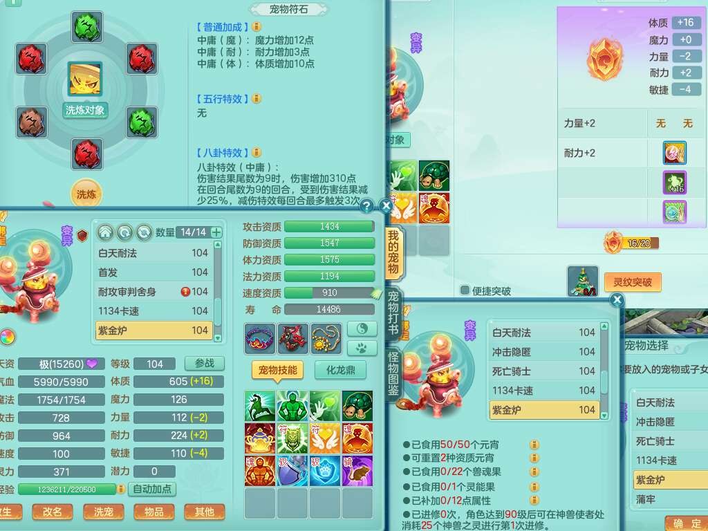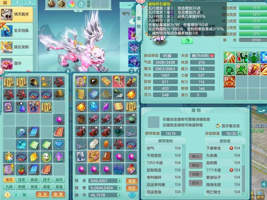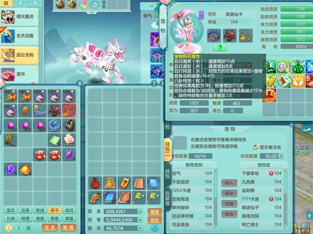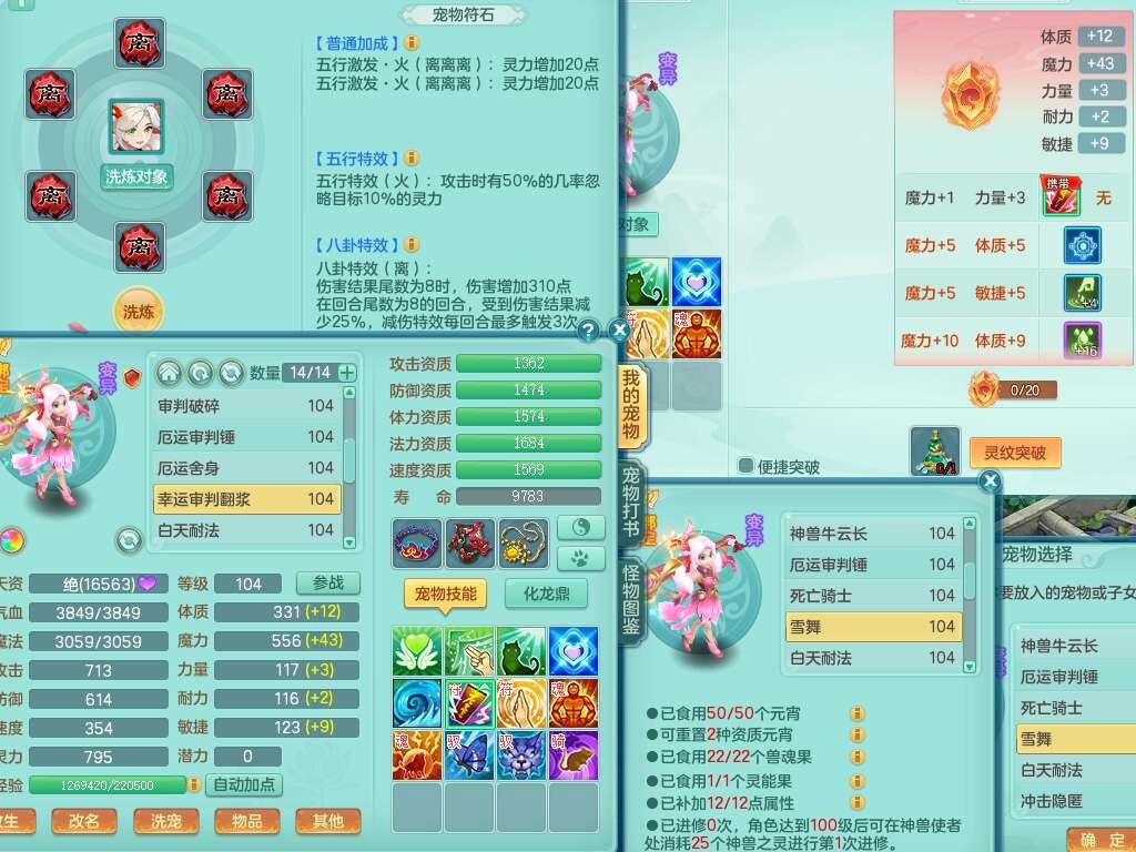 A22059江山如画99女龙宫,4龙2内胆神,2破镜,【10只觉醒,已潜龙】,8位靓号不含4,3宠皮,法爆烽火单加34武器,愤怒单加34腰带,法缭五雷鞋子,有套物理装备,555易成长移魂单加35武器,神佑单加34项链,破甲单加33鞋子,5.0法爆,2.0基础鼎+40攻+168血,7个纯六字,2个五字,17只满果子,宠排在榜,3个双人坐骑。