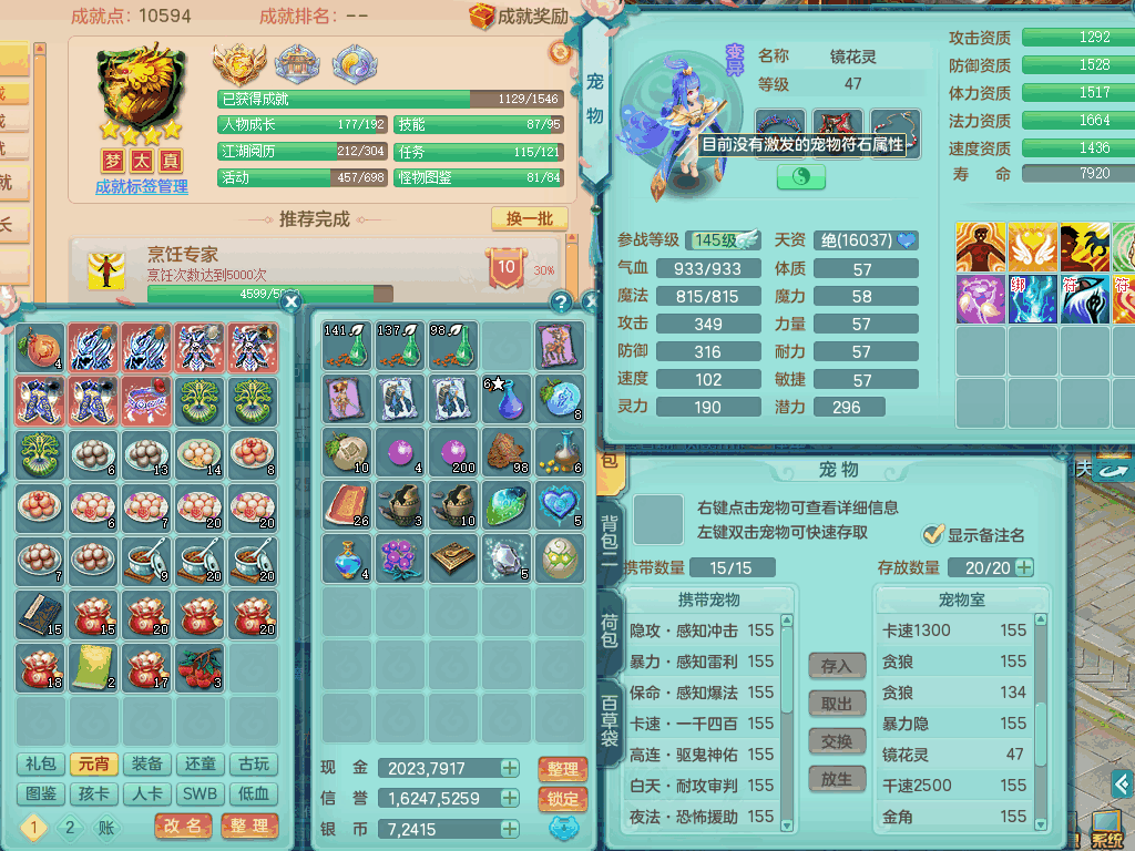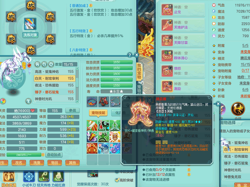J22057风驰电掣159男无量,精灵舞,7龙1龙皮,4内胆神,2破镜,【11只觉醒,已潜龙】,4位靓号ABCB,2宠皮,5只六技能镜花灵,1特殊(雷光),愤怒五特,5.5基础鼎+70攻,280血,15个格子,12个纯六字,4个五字,综合28只满果子,宠排在榜,4只坐骑,永久称谓,现在带800swb。