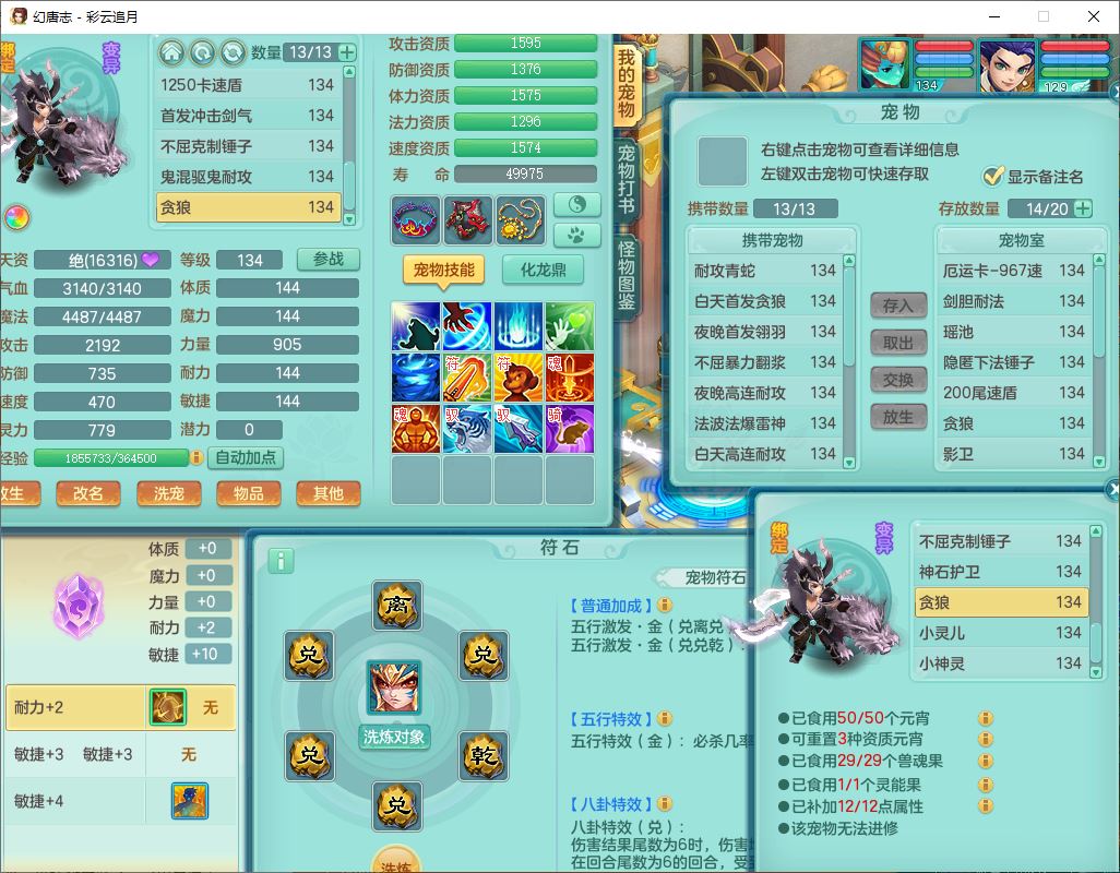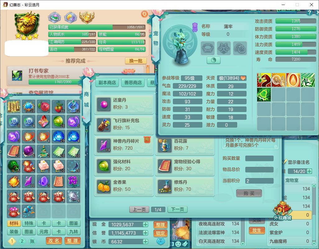71457YB彩云追月129男龙宫【潜龙号】精灵舞,2青蛇(1无内)3贪狼1神石,9觉醒10六字1五字8四字21只满果子,全单加装备,法爆武器,196Y项链,五雷鞋子,法爆魔音武器,指挥破体腰带,鼎4.0+56+224,庭院159房屋160,永久外观、精灵皮肤,1双人坐骑
