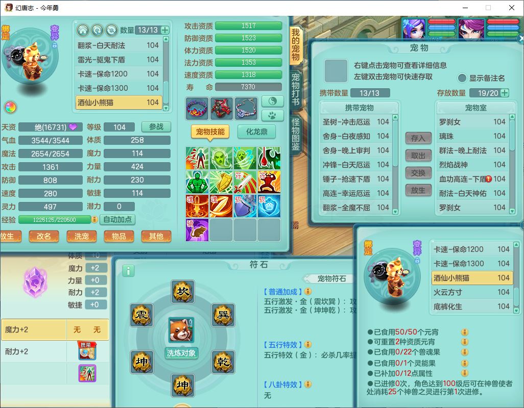 24254今年勇99男盘丝【准潜龙,只差1只宝宝,2条附加潜龙】敏耐精灵,1内丹神,综合16只满果子6觉醒7个纯6字,12红,愤怒6特,Y流云头,Y罗汉武器,Y止戈衣服,坚毅绝幻项链,愤怒晶清腰带,Y四海鞋,鼎2.5+42+168,3套符石,57天月卡,永久外观精灵皮肤,27仙兽灵,19内丹碎片,宠排在榜,2坐骑(1只双人)