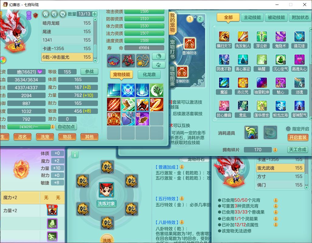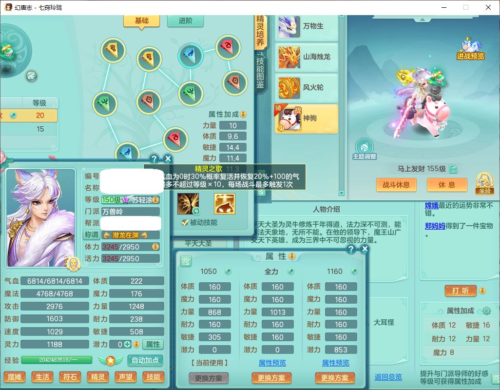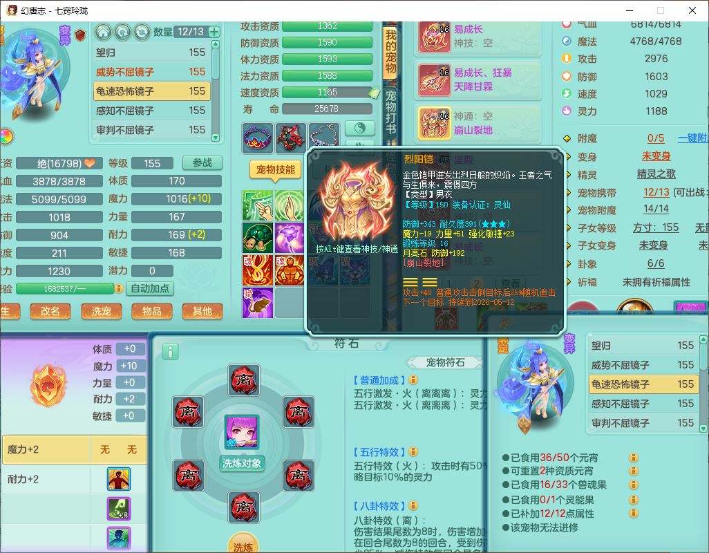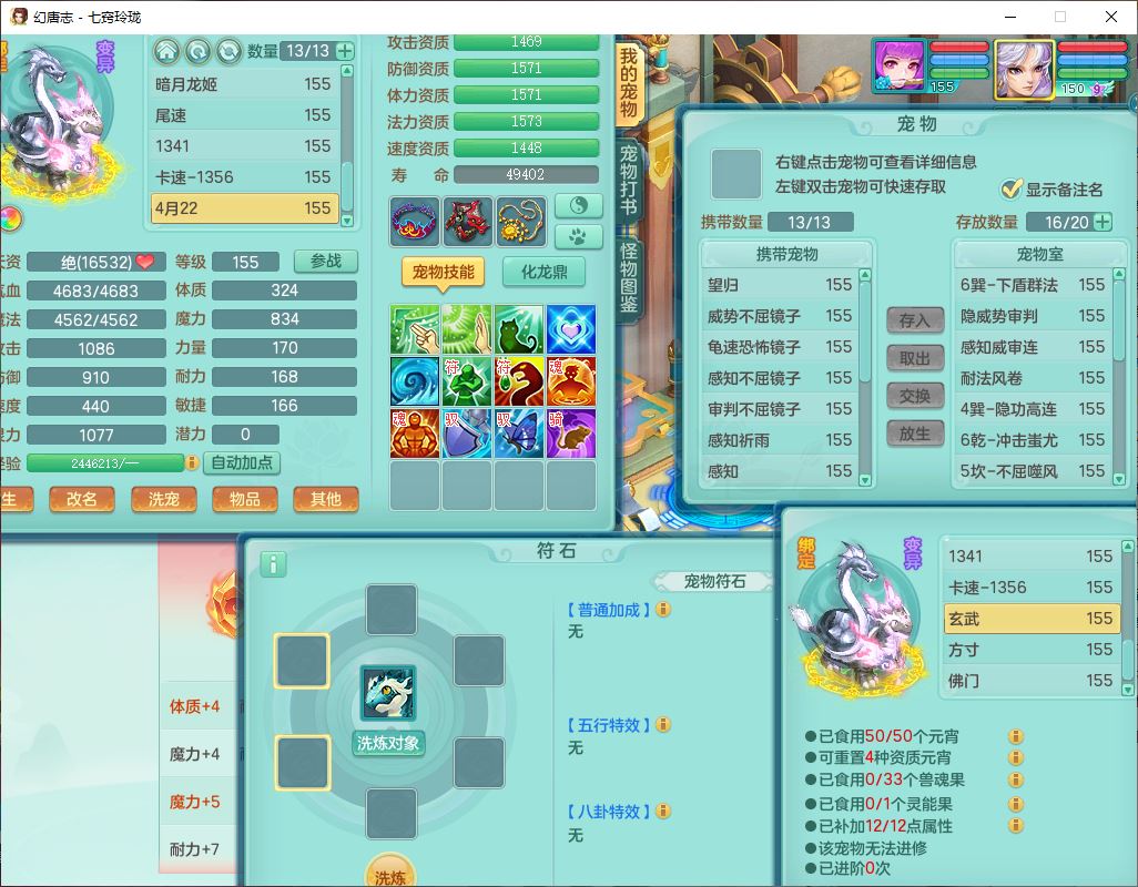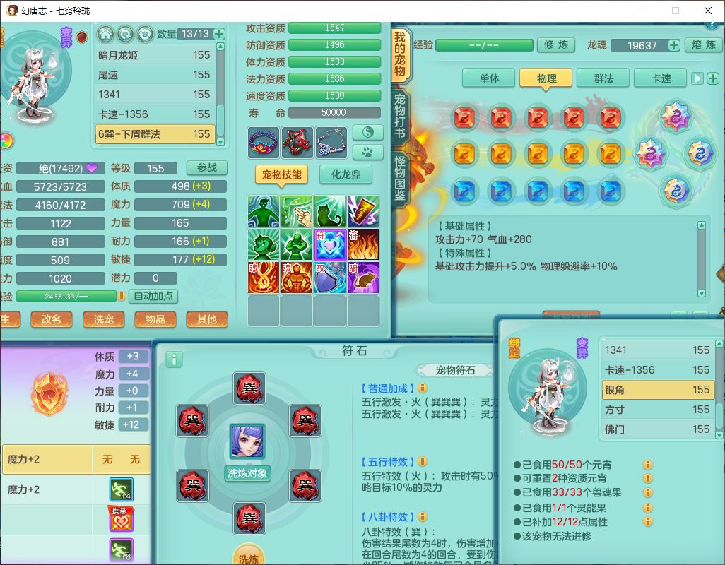71452WH七窍玲珑159男万兽【潜龙+马上发财+火焰之力】精灵歌,1内丹青蛇1望归4镜花4特殊(祈雨、舍身,兽决禁锢、夺命)2龙姬1金炉,8觉醒3宠皮12六字1五字3四字17只满果子,8红装备,Y狂暴四海武器,崩山衣服,坚毅项链,一套辅助装备,Y晶清腰带,Y四海项链,鼎5.5+70+280,2套符石,138天月卡,庭院165房屋148,永久外观、精灵皮肤,28个仙兽灵,21个内丹碎片,1双人坐骑