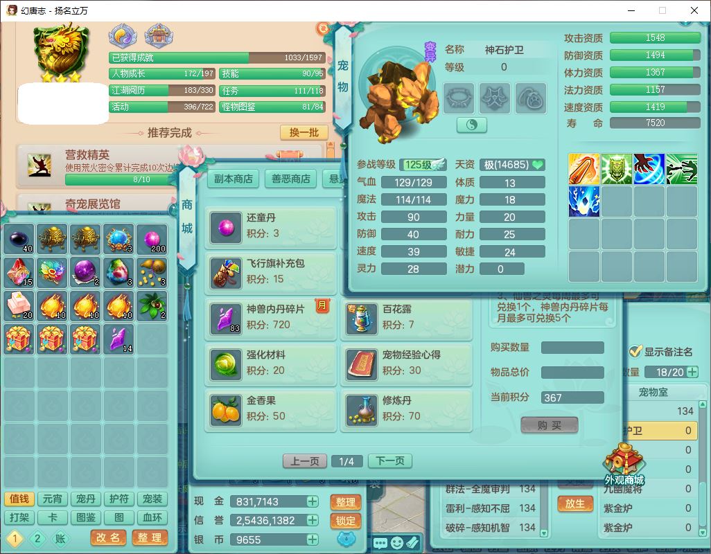 71453YB扬名立万129男方寸【暴龙逍客+西瓜冰+潜龙过半】精灵歌,1龙(换)2内(1青蛇1小马)1金炉3贪狼,10觉醒3宠皮2六字2五字12四字20只满果子,10红双法缭星辰之拥装备,五雷帽子,法爆罗汉武器,Y法缭烽火衣服,神佑群体止戈项链,法缭鞋子,一套10红物理装,破甲帽子,Y狂暴破血武器,崩山衣服,迅捷Y鞋子,鼎4.0+56,永久外观、精灵皮肤,14个内丹碎片,1双人飞行坐骑
