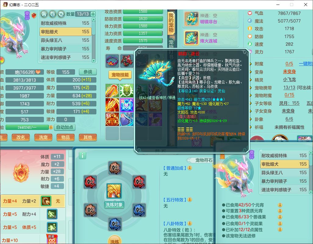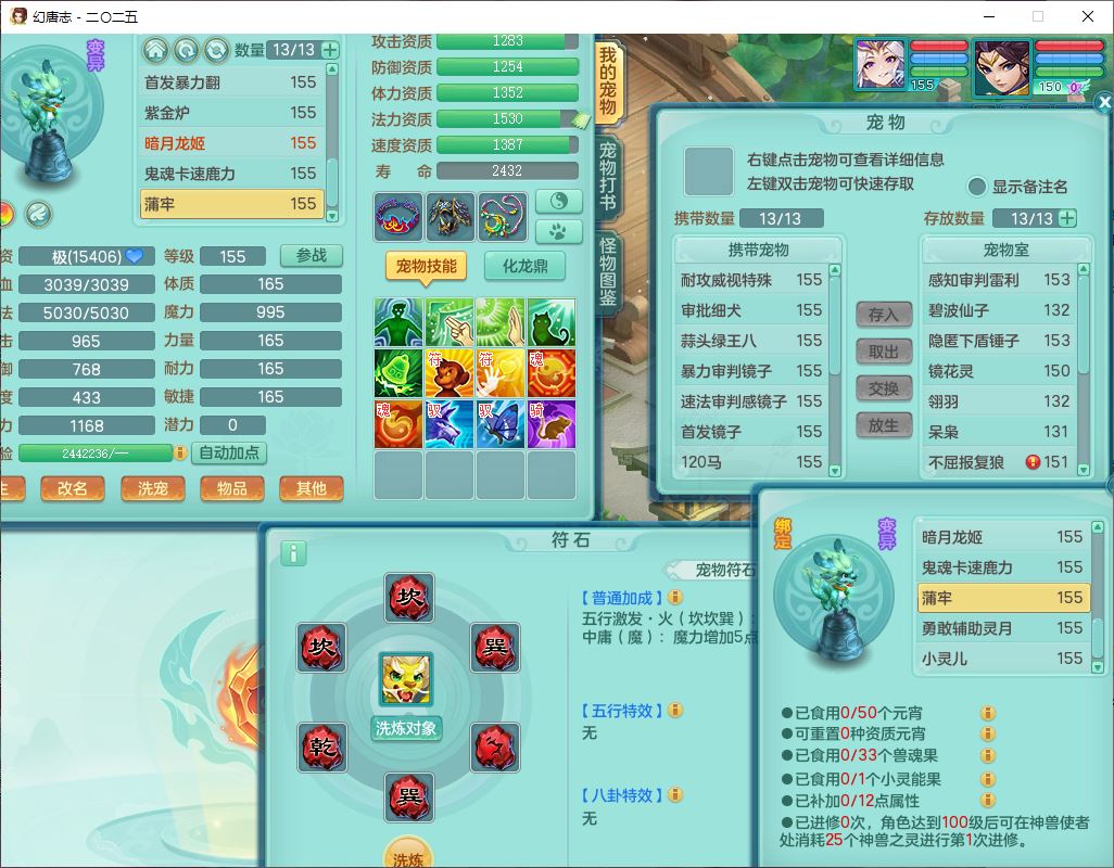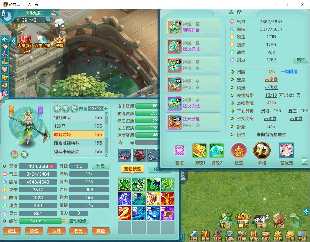 99764,2025区150男龙宫准精灵舞,1内丹龙马1青蛇(无内)1望归3镜花2龙姬1金炉,1觉醒,宝宝种类齐全,装备齐全,烽火武器,法缭鞋子,聚灵五件套,43天月卡,永久外观、精灵皮肤,16个内丹碎片,1双人坐骑
