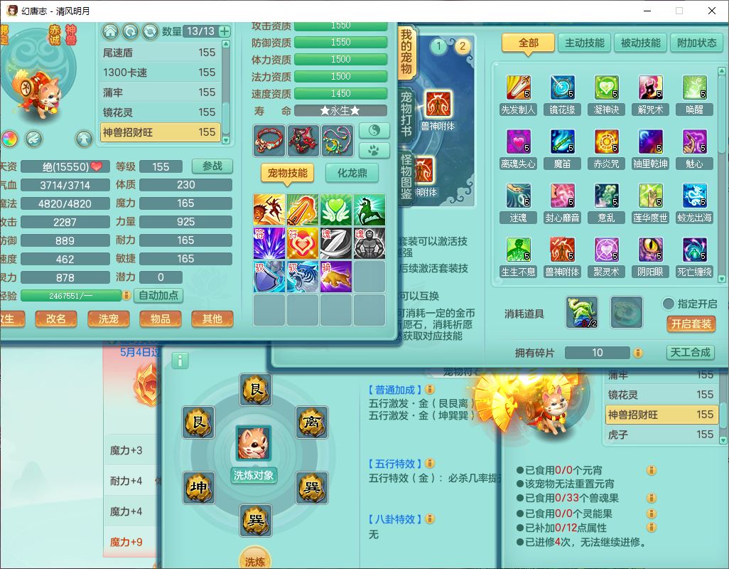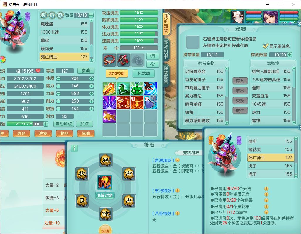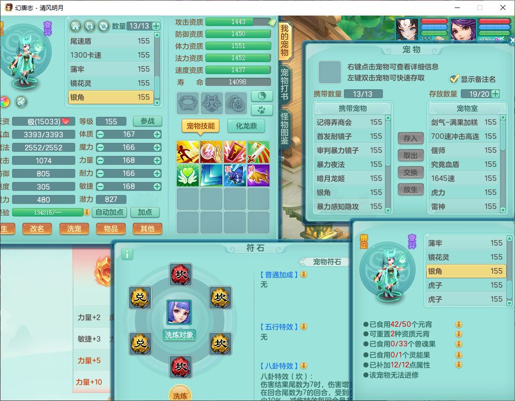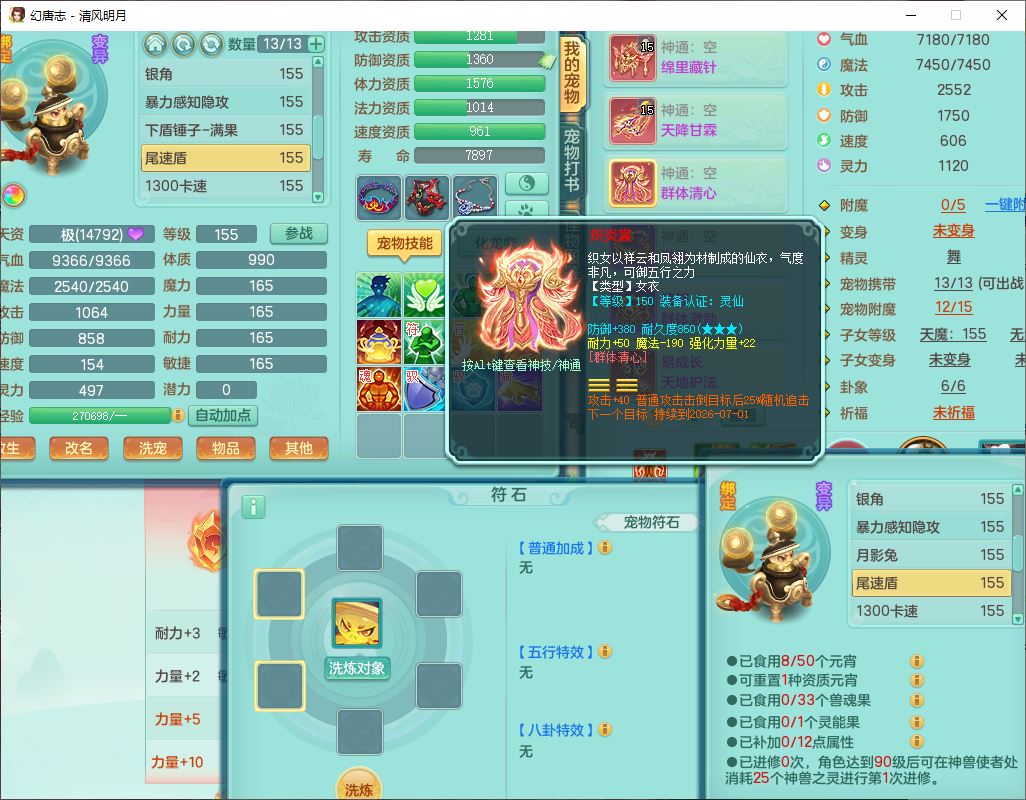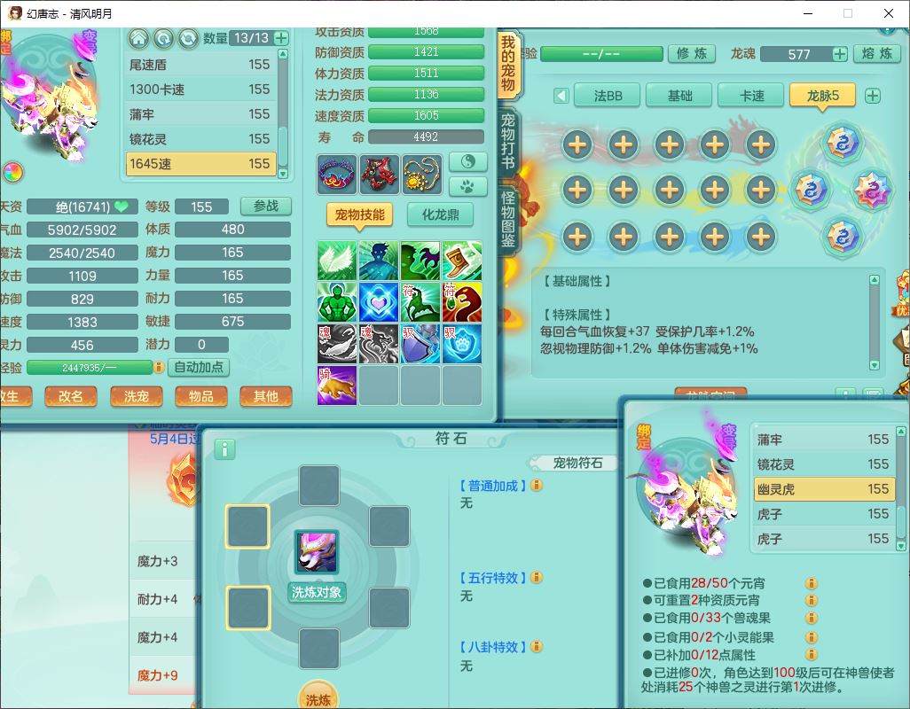 4349清风明月159女万兽精灵舞,1内丹青蛇5镜花1龙姬1金炉2特殊兽决(怒破、雷利),8觉醒3六字1五字3四字(1洗练珠)12只满果子,7红装备,必杀武器,神佑项链,Y蓄力腰带,一套8红辅助装,愤怒群体激励腰带,Y罗汉鞋子,鼎4.5+70,64天月卡,20个仙兽灵,48个内丹碎片,1飞行坐骑