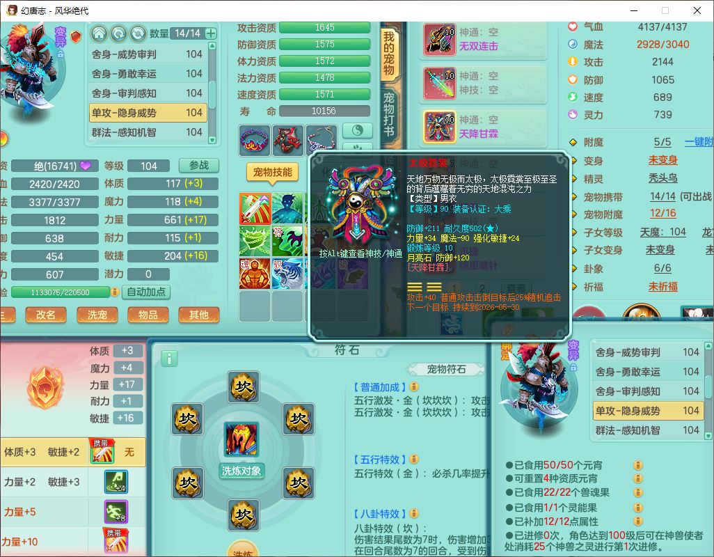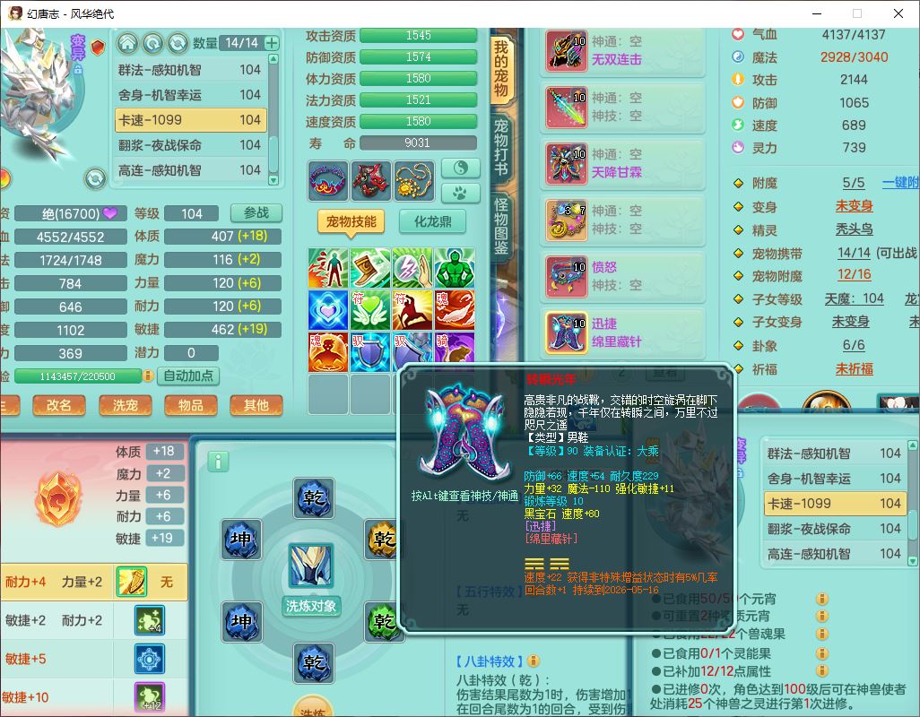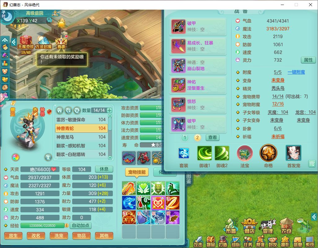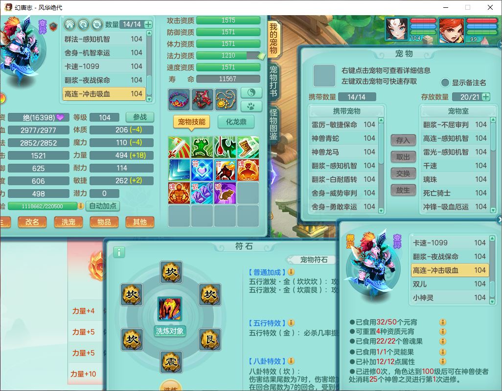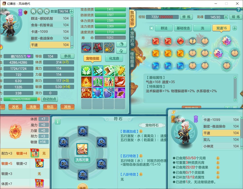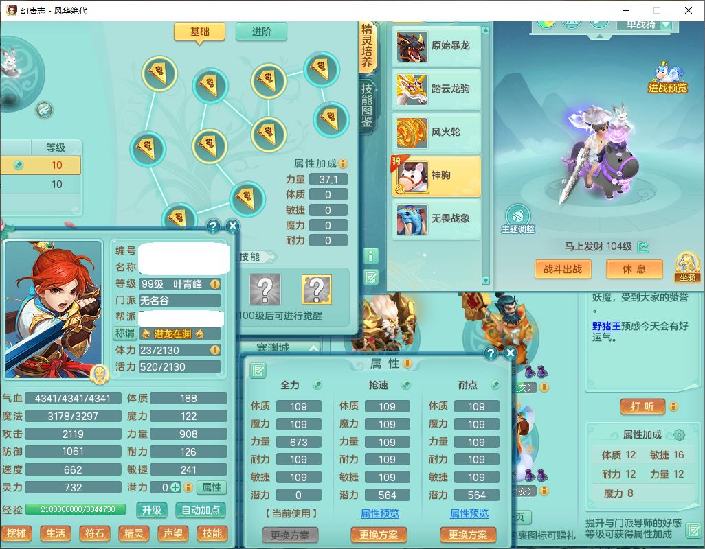 24248风华绝代99男无名【潜龙+马上发财+暴龙洪荒+火焰之力+西瓜冰】全力精灵,1龙(换、无内)1内丹青蛇1龙马(无内)4翻江4舍身1童子1金炉,11觉醒3宠皮10六字3五字8四字23只满果子,8红双破甲装备,破甲帽子、鞋子,Y狂暴武器,迅捷笑里鞋子,仓库多装备,有辅助装,回春武器,鼎3.0+42+168,2套符石,146天月卡,永久外观、精灵皮肤,120多w神武币,34个内丹碎片,2双人坐骑