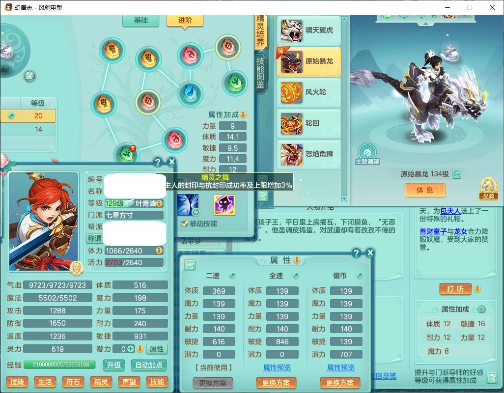 71451YB风驰电掣129男方寸【暴龙洪荒+西瓜冰】精灵舞,1龙(无内)2内(1青蛇1破境)2贪狼1七技能雷光霜狼1七技能雷光妖鬼1神石1金炉,7觉醒2宠皮3六字9四字(1洗练珠)9只满果子,8红装备,Y玉清衣服,愤怒Y腰带,一套7红物理装,Y狂暴武器,神佑项链,仓库一套辅助装,回春武器,匠心激励衣服,幸运慈航帽子,Y四海鞋子,鼎4.5+56,人物符石附加满足潜龙要求,113天月卡,永久外观、精灵皮肤,34个仙兽灵,1双人飞行坐骑