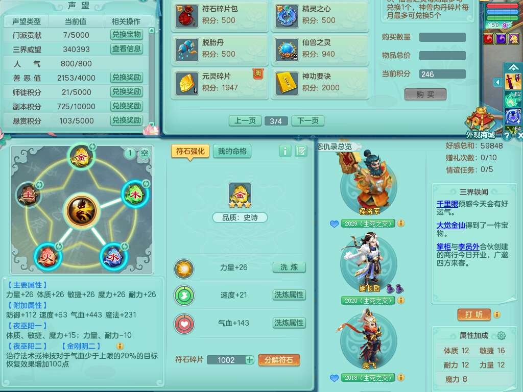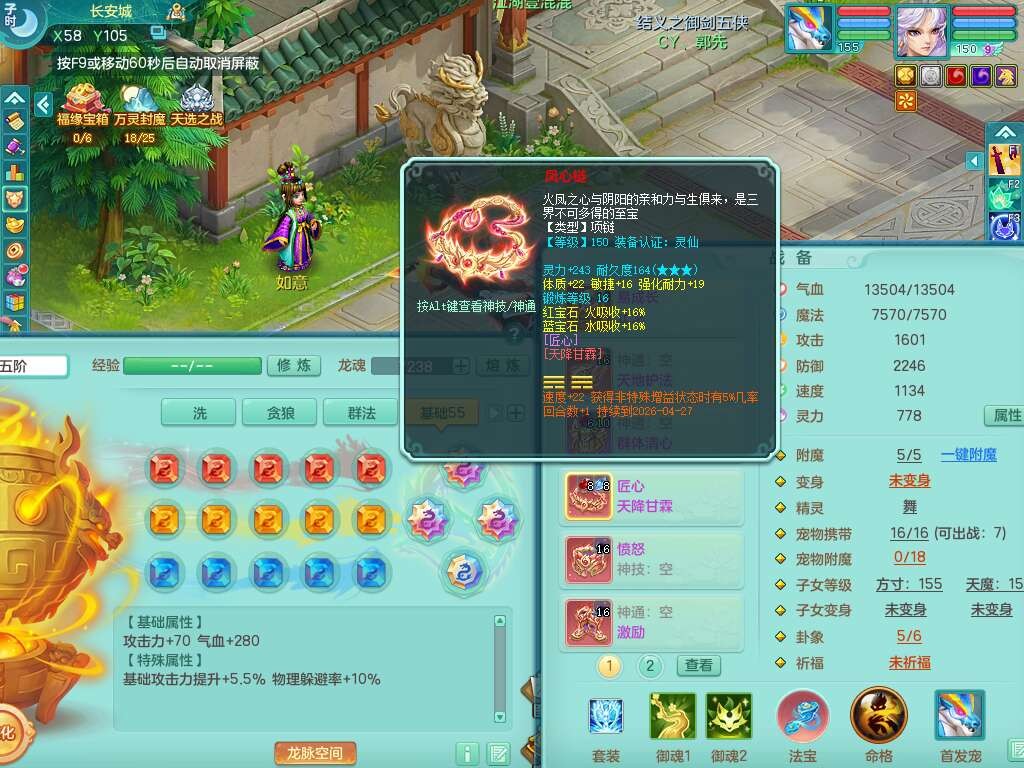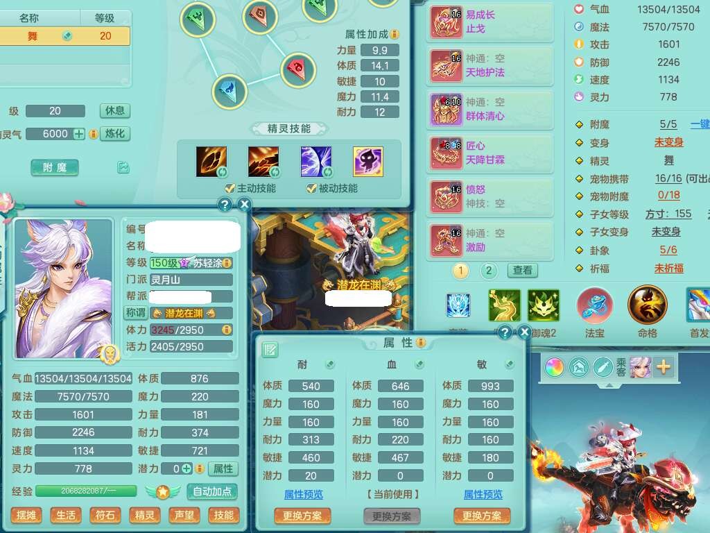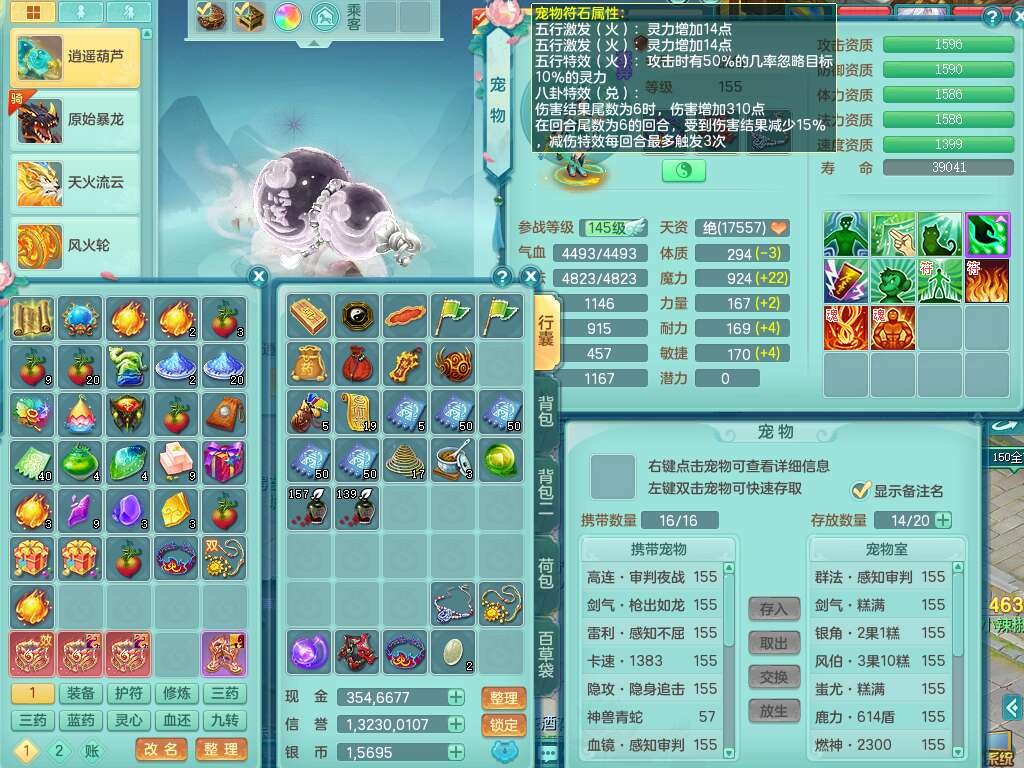J22258超凡入圣159男灵月山,精灵舞,5龙(1龙没内),1内丹神,1破镜,【11觉醒,已潜龙】,8位靓号不含4(AABBBBAA),2宠皮,1特殊(羽袭),3只六技能镜花灵,1只六技能龙姬,易成长止戈单加54头,匠心四海项链,愤怒五特,5.5基础鼎+70攻+280血,8个纯六字,6个五字,15只满果子,仓库还有34个果子,宠排在榜,经验修炼在榜,3只双人坐骑,暴龙逍客+神驹马上发财+西瓜冰武器,带147天月卡。