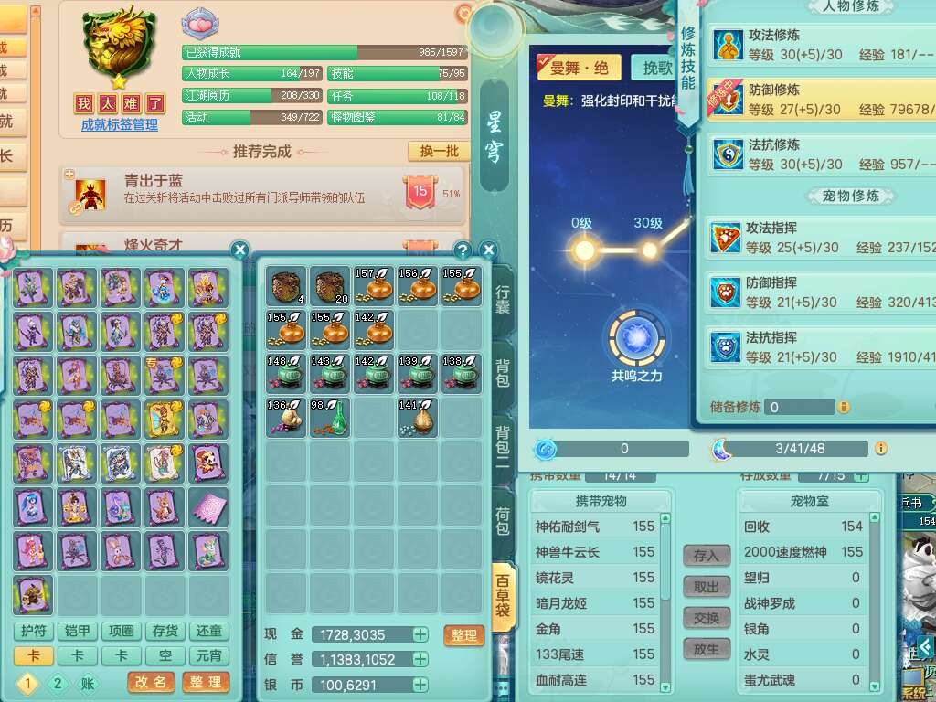 a22257风驰电掣154男盘丝,精灵舞,1内丹龙,1神兽,3觉醒,1只六技能镜花灵,1只六技能龙姬,易成长玉清单加53武器,震怒清心术单加51腰带,六特,4.5基础鼎,1个五字,1只满果子,仓库还有37个果子,带100w神武币,有安全证书,介意勿扰。
