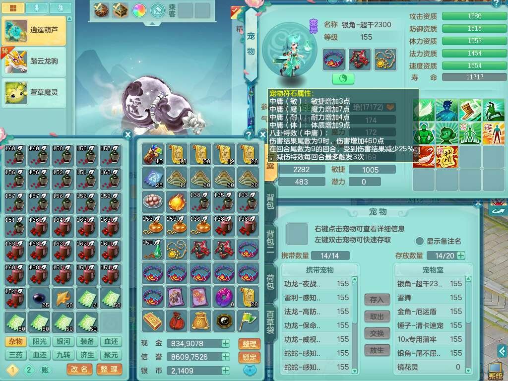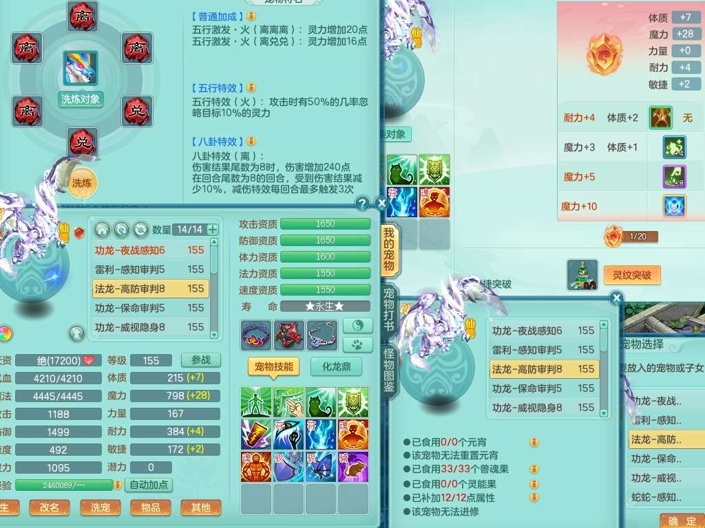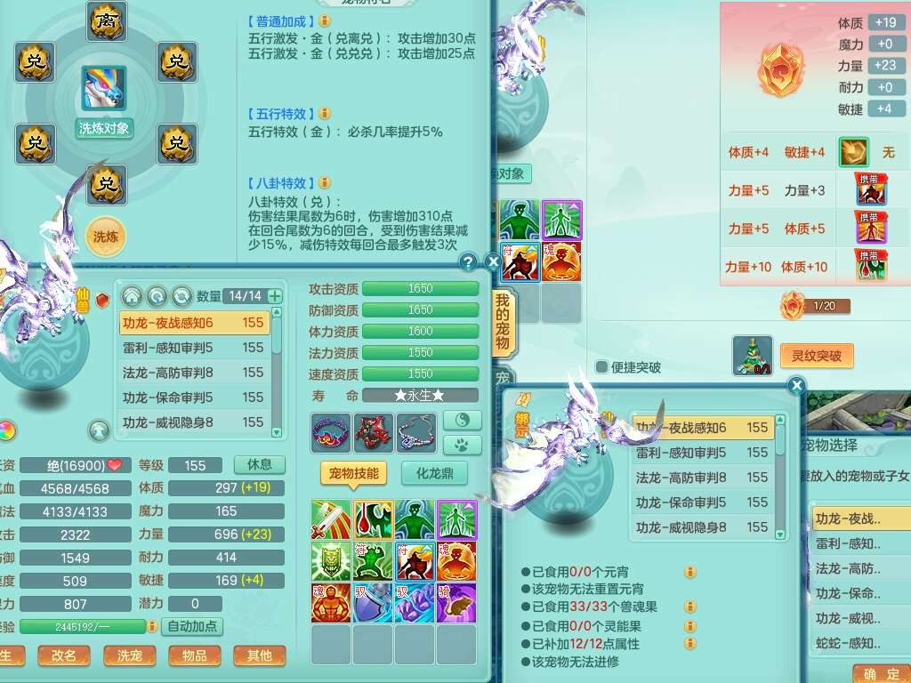 A22255浪淘沙159女魔王,精灵舞,5龙3内胆神,1破镜,9觉醒,4宠皮,4只六技能镜花灵,易成长单加54头,五雷单加56武器,易成长烽火单加50衣服,愤怒慈航单加57腰带,法缭单加51鞋子,5.0基础鼎+70攻+280血,3个纯六字,4个五字,16只满果子,宠排在榜,2只双人坐骑,带50天月卡。带4个153奶粉。