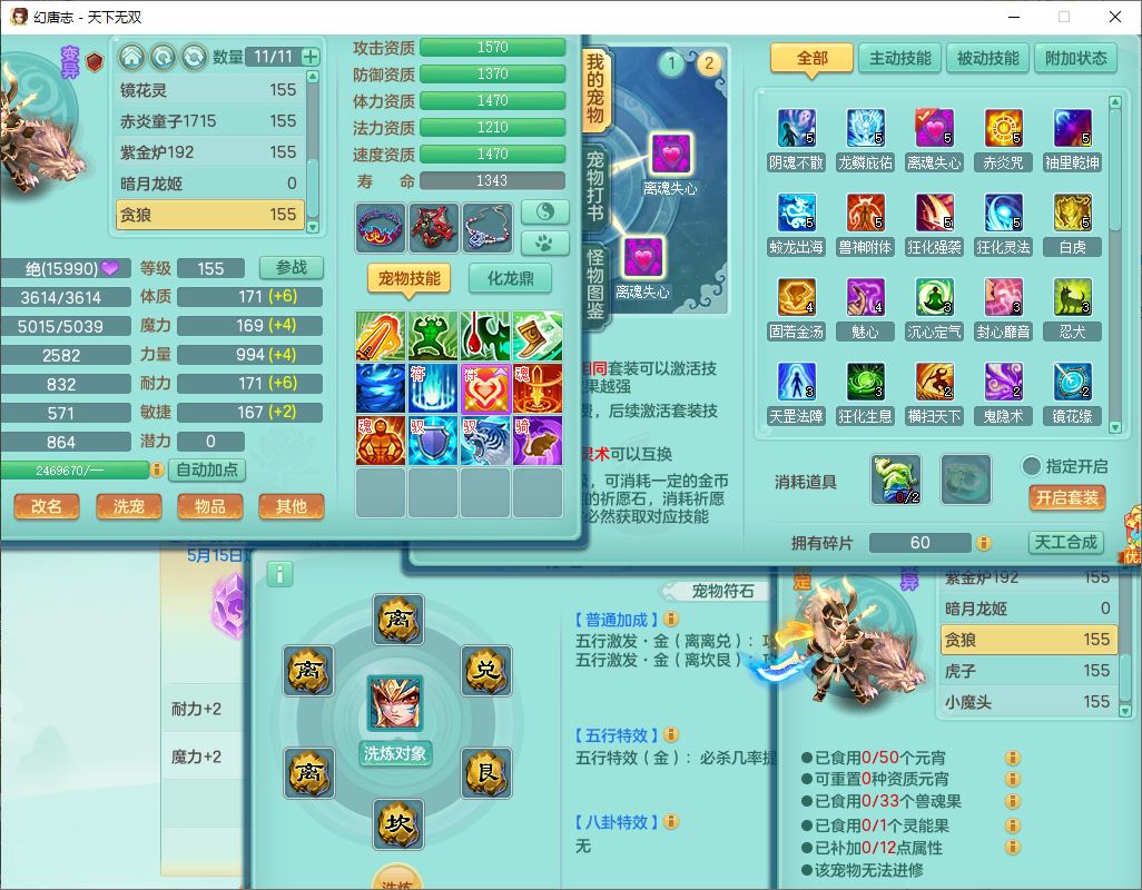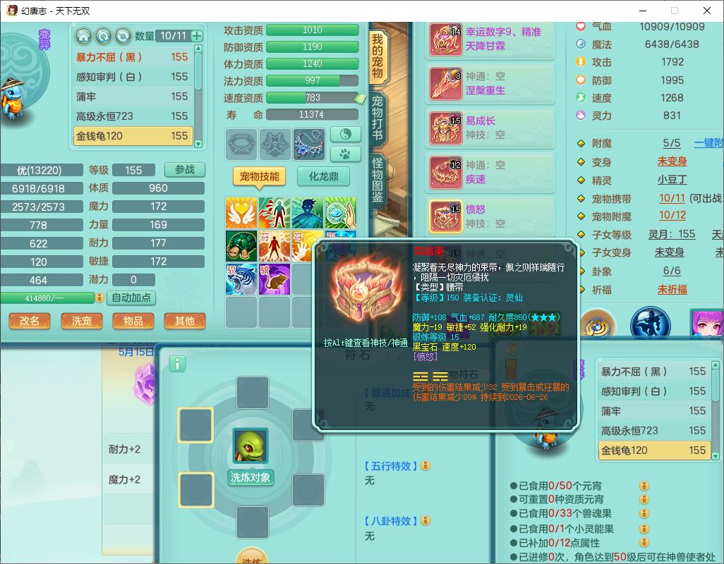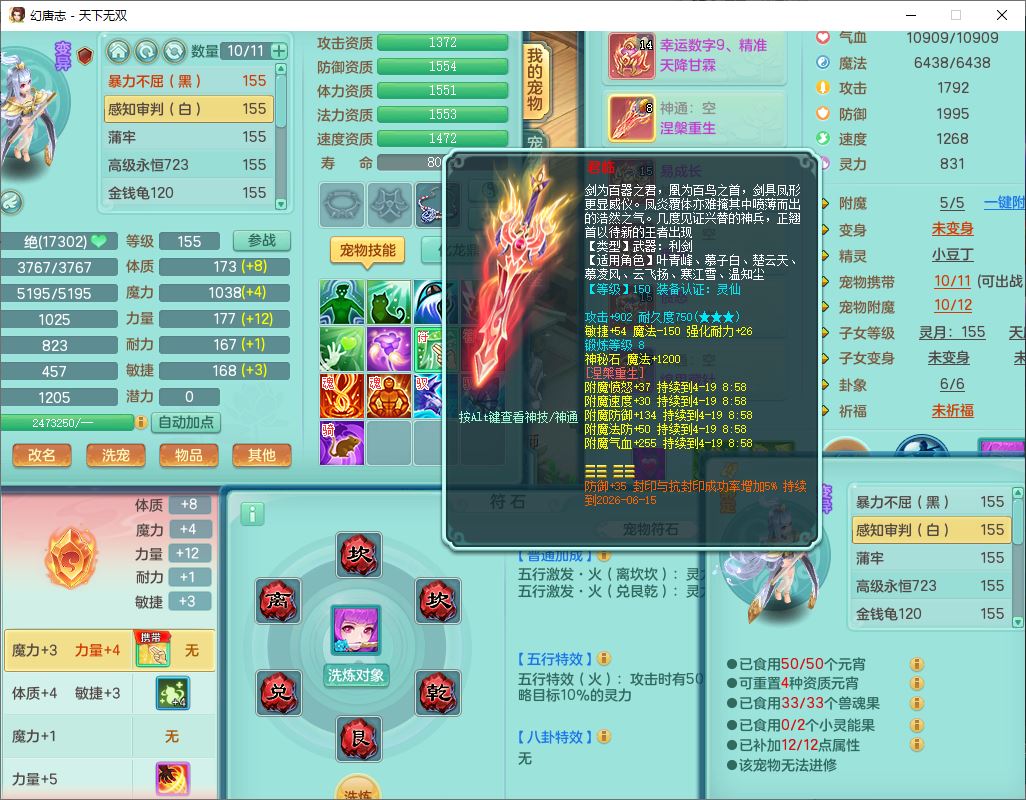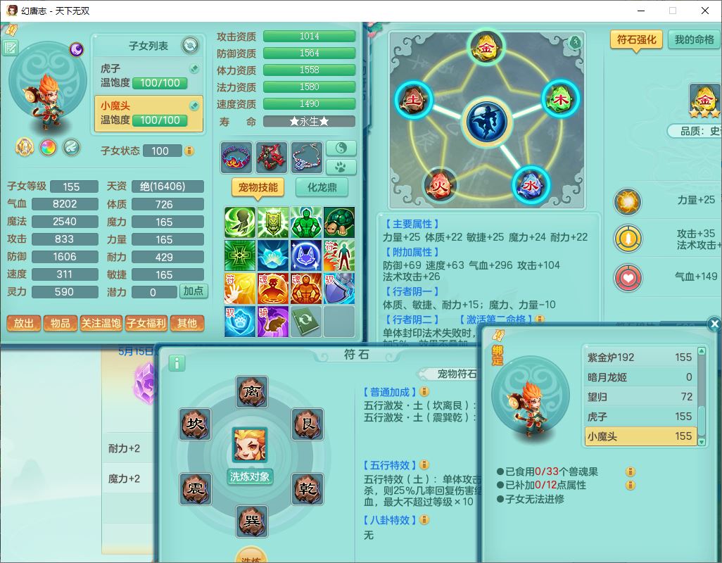 tx10364天下无双159男五庄【马到成功+暴龙洪荒+火焰之力】准精灵舞,3镜花1银角1金炉,2孩子(天魔+灵月),1觉醒1六字,8红装备,幸运精准四海帽子,愤怒腰带,鼎4.5+70+280,50天月卡,永久外观、精灵皮肤,34个内丹碎片,3坐骑