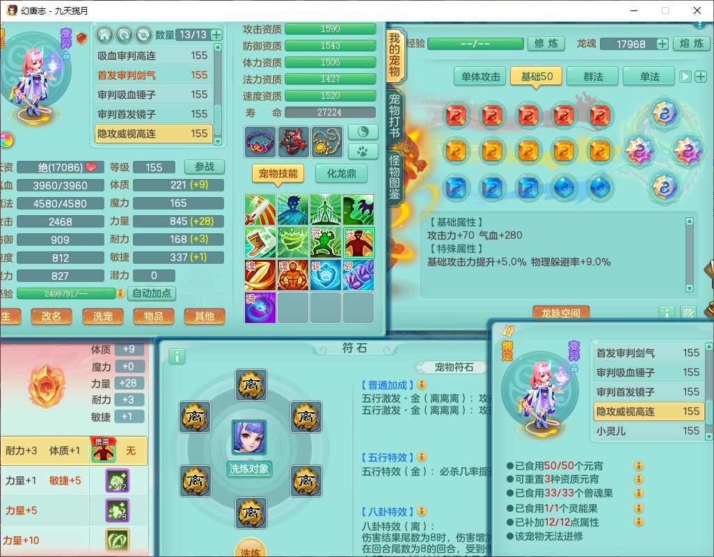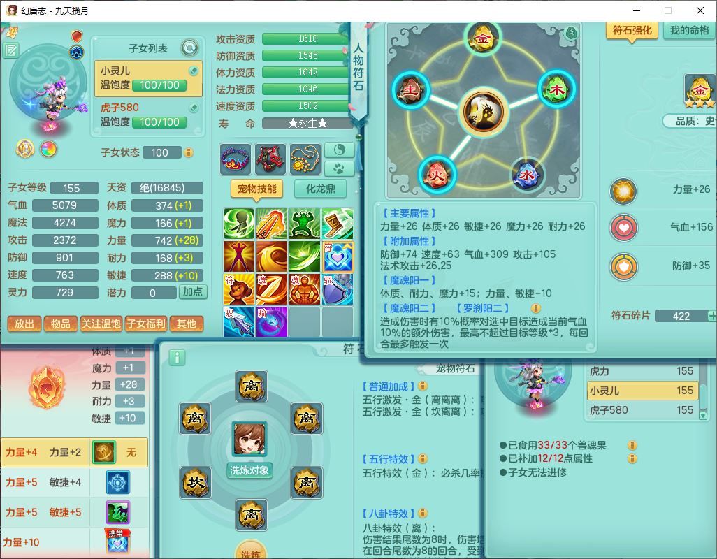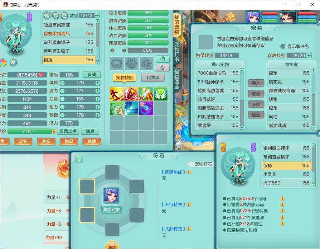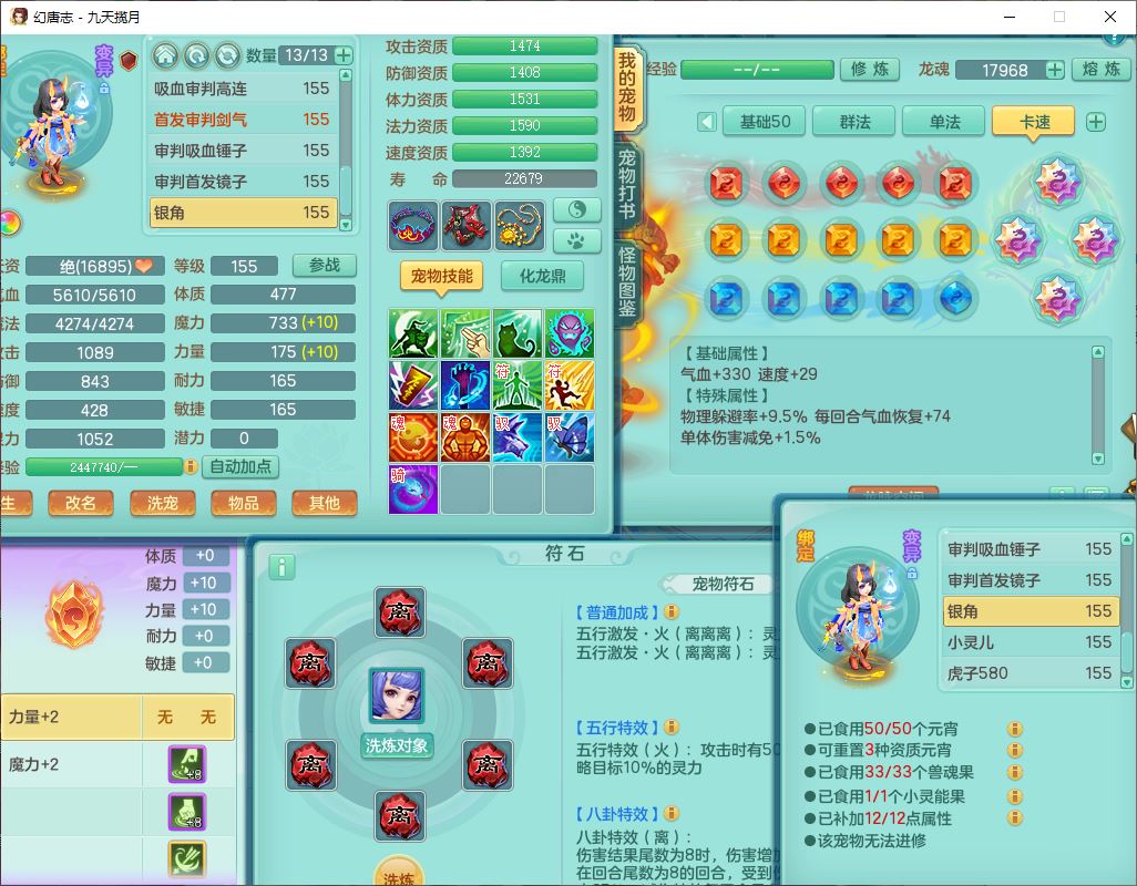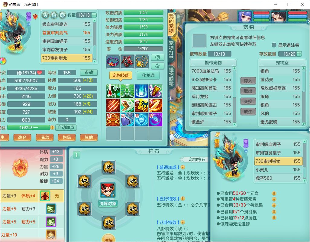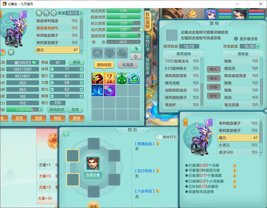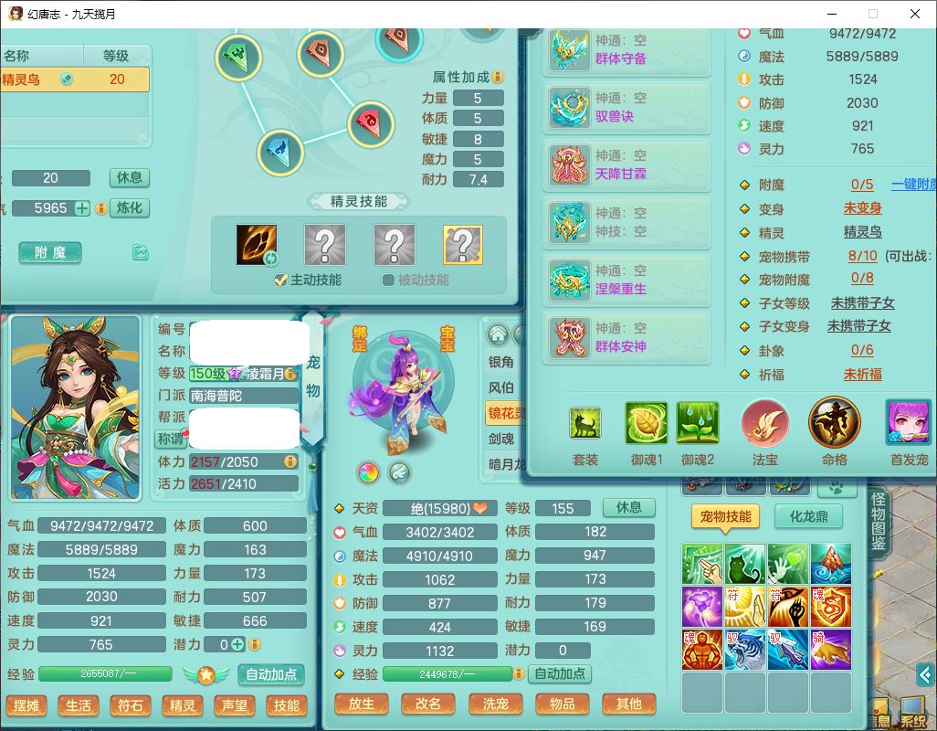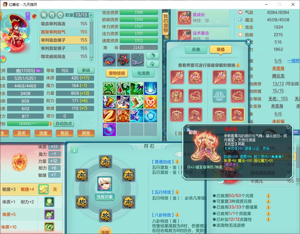 jt10360九天揽月159男天宫【潜龙+马到成功+火焰之力】精灵歌,1内丹龙马1望归1龙姬3特殊(剑胆、破碎、禁锢)3镜花1六技能雷光妖鬼1金炉,10觉醒8六字2五字6四字16只满果子,装备齐全,法爆武器,愤怒腰带,幸运五雷鞋子,一套8红物理装,932Y武器,崩山腰带,匠心破甲帽子,神佑项链,Y吸血鞋子,鼎6.0+70+280,69天月卡,永久头饰、精灵皮肤,57个仙兽灵,19个内丹碎片,1双人飞行坐骑,带150奶粉,有双重