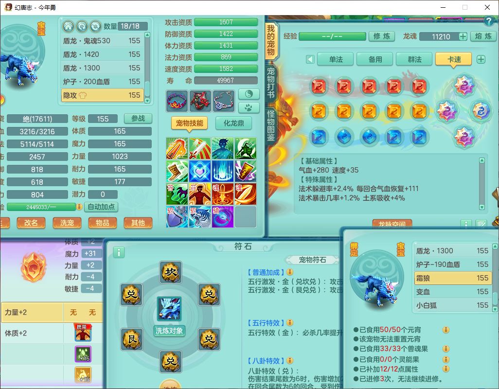 jn10370今年勇159女普陀【潜龙+马上发财+火焰之力+流光翎】精灵舞,6内丹龙(2破境)4神兽(1青蛇3龙马,1破境1无内)4镜花2特殊(灵傀、怒破)2龙姬1金炉,9觉醒1宠皮10六字3五字7四字综合26只满果子,10红装备,Y晶清帽子,匠心笑里衣服,药师卸甲项链,愤怒四海腰带,一套9红双破甲物理装,破甲帽子,Y激励武器,崩山衣服,神佑项链,破甲五雷鞋子,可出星辰之拥,必杀激励武器,鼎6.0+70+280,3套符石,121天月卡,庭院153房屋151,永久外观、精灵皮肤,47个内丹碎片,成就在榜、永久称谓,5坐骑(2双人)