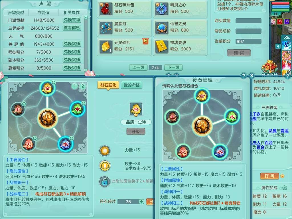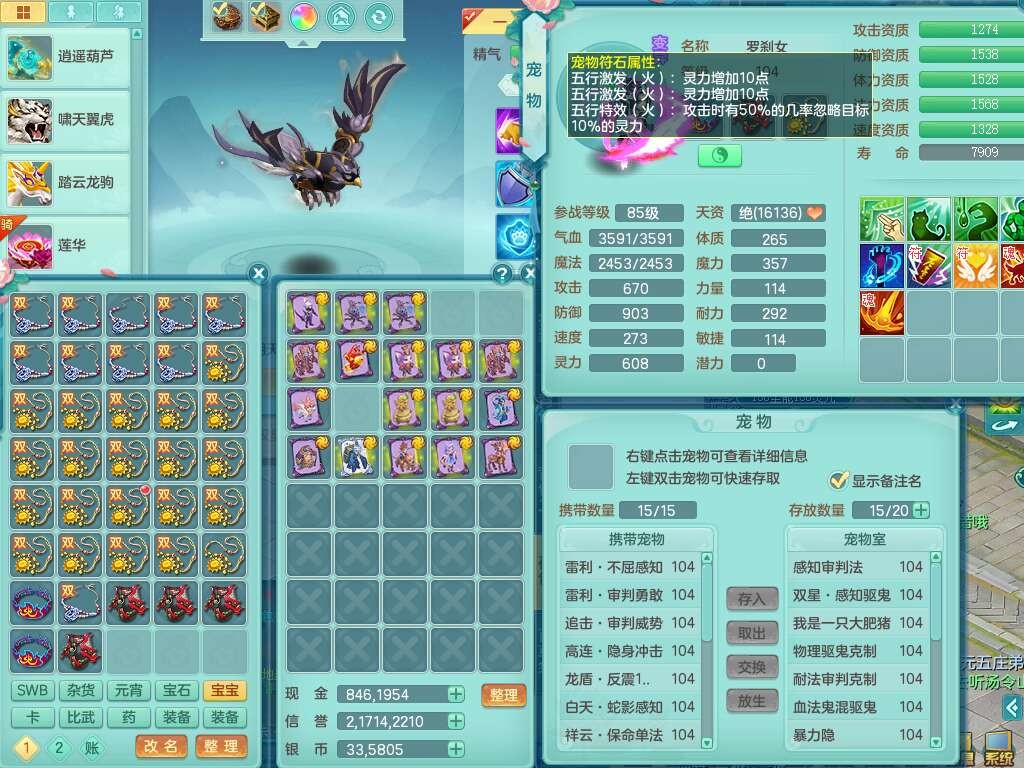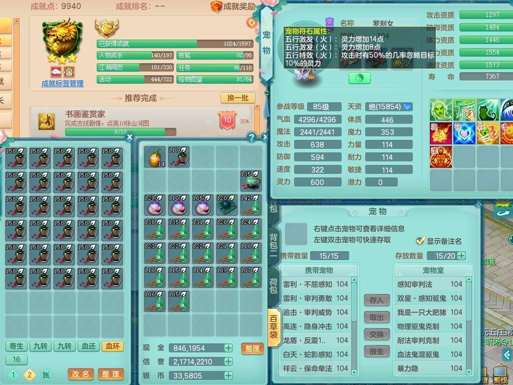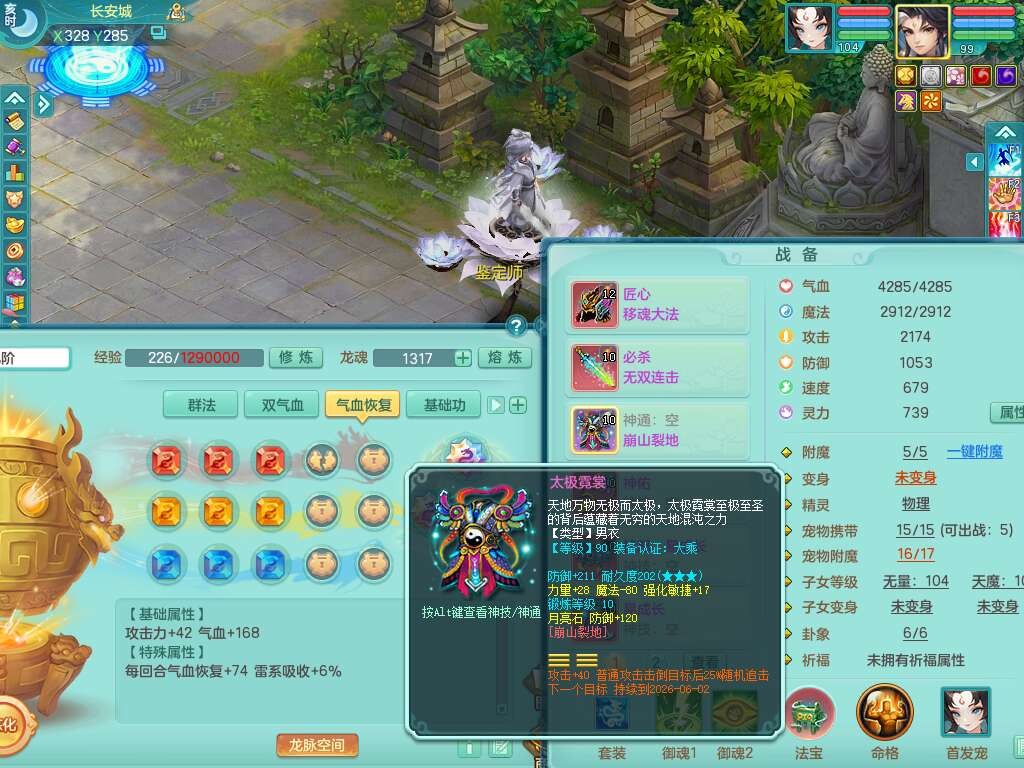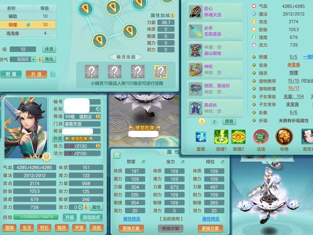 p22260壮志凌云99男天宫,5龙4内胆神,【8只觉醒,已潜龙】,4位靓号不带4,5宠皮,554必杀破血单加武器,匠心移魂单加34头,崩山单加衣服,神佑单加34项链,愤怒易成长单加32腰带,有五雷头,法缭单加衣服,愤怒卸甲腰带,2.5基础鼎+42攻+168血,13个永久格子,9个纯六字,1个五字,20只满果子,宠排在榜,5个坐骑,带52天月卡。