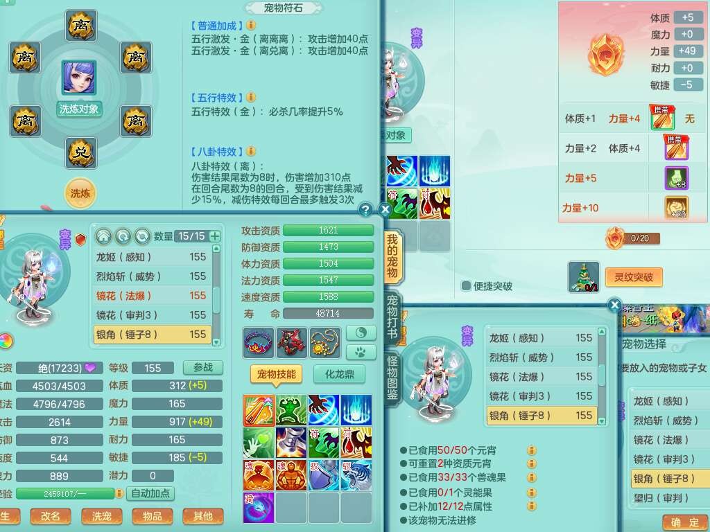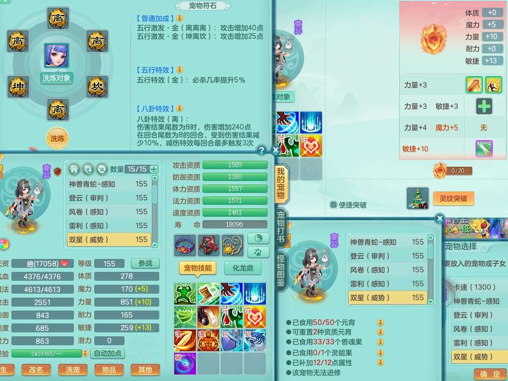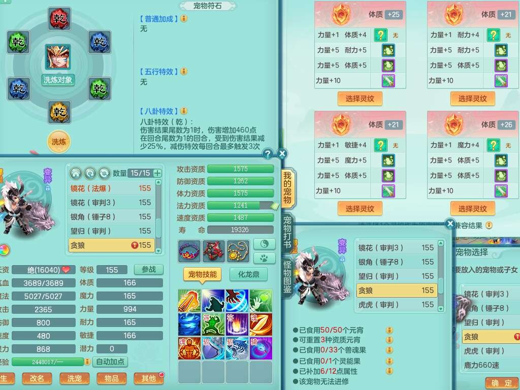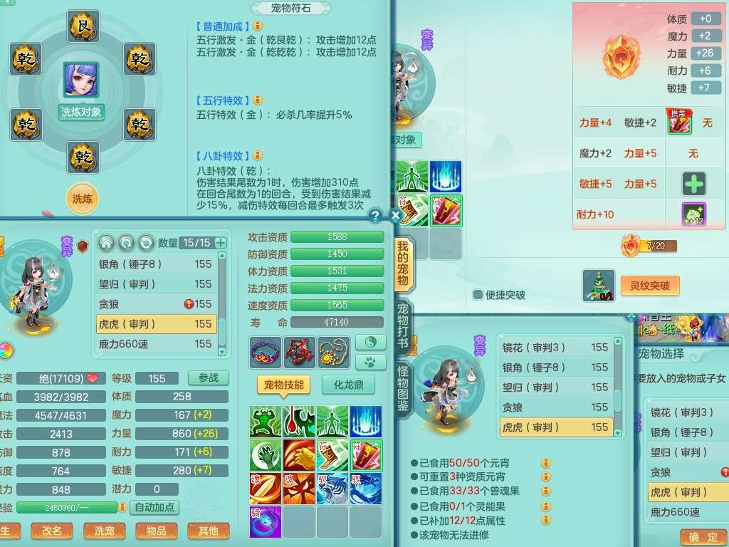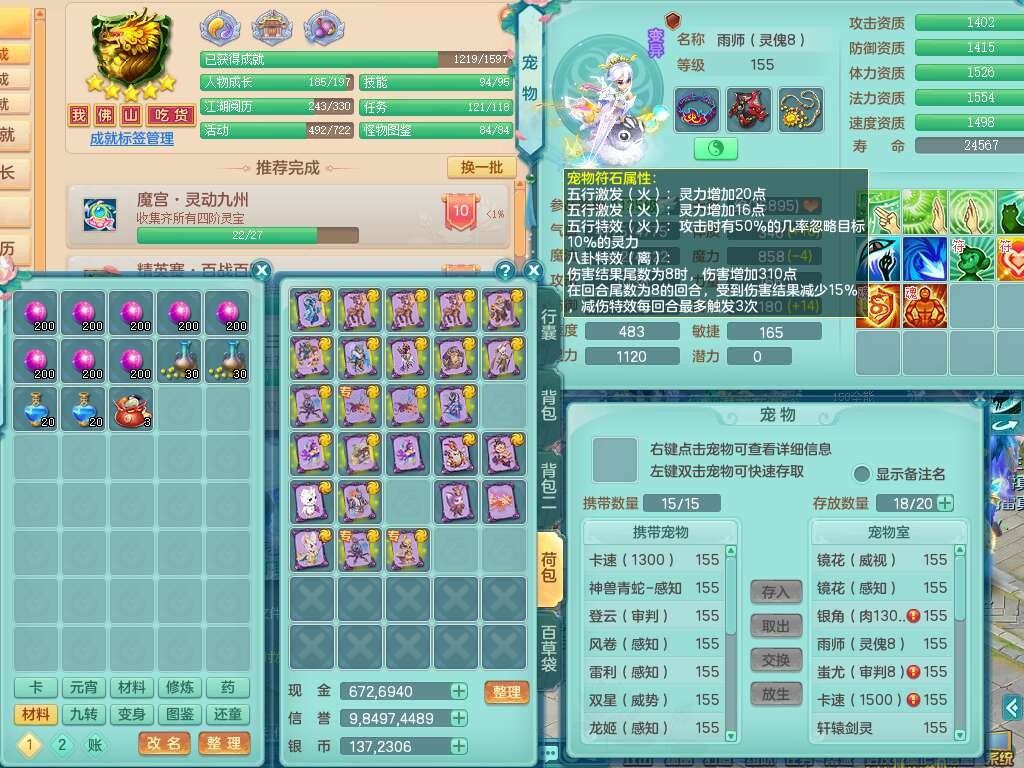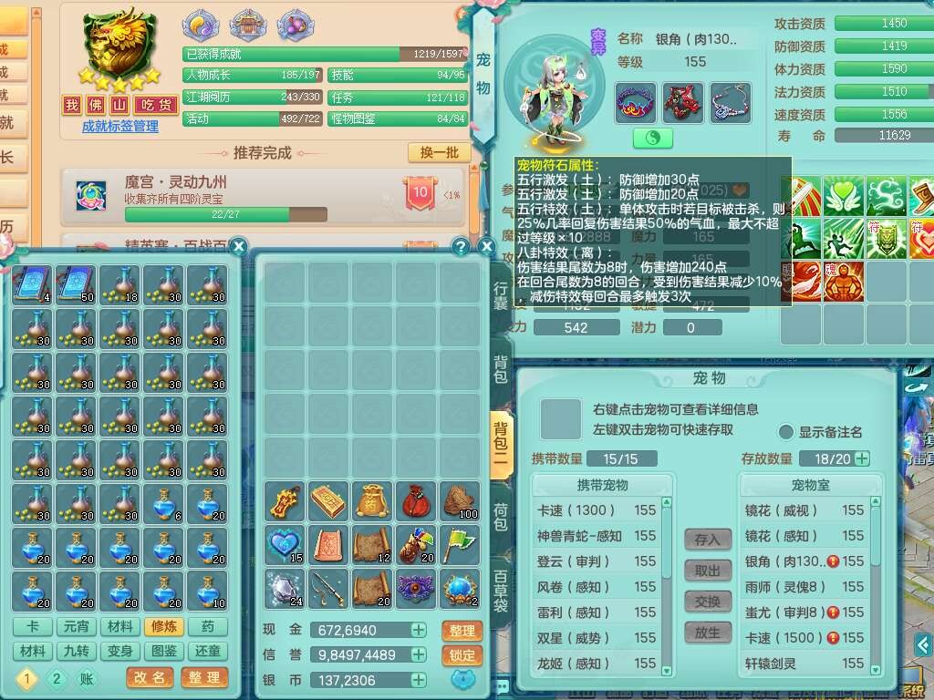 S22030笑傲江湖159男魔王,精灵舞,1龙无内,1内胆神,8只觉醒,2宠皮,4只六技能镜花灵,2只六技能龙姬,8特殊(登云,烈焰,锤子,雷厉,风卷,灵傀,虎虎,双星),五雷单加51腰带,易成长烽火单加52衣服,有匠心易成长单加55腰带,匠心易头,5.5基础鼎+70攻,13个格子,2个纯六字,7个五字,17只满果子,仓库45神兽内丹碎片,经验成就在榜,4只坐骑。