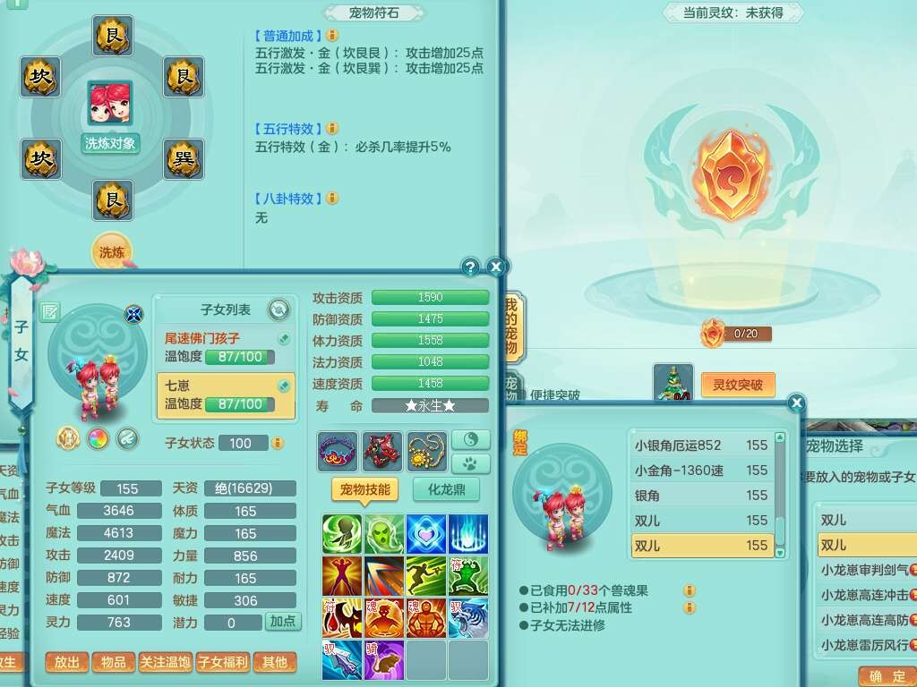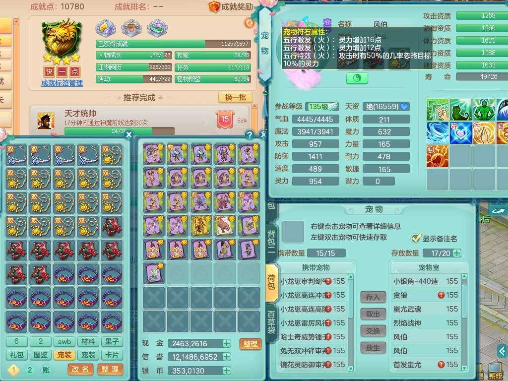 J22029醉生梦死159男五庄,精灵舞,4内丹龙+80仙兽灵,2内胆神+31神兽内胆碎片,1破镜,【准潜龙,只差1个附加属性,1个厚土龙纹】,4位靓号不含4,3只六技能镜花灵,7特殊(翻江,流星×2,噬风,琴音,逆龙,上善),易成长罗汉单加57鞋子,愤怒六特,物理狂暴武器,强化防御崩山单加56衣服,神佑项链,5.5基础鼎,13个永久格子,7个纯六字,1个五字,15只满果子,宠排在榜,经验修炼在榜,永久称谓,2个双人坐骑,带353万神武币。➕159女普陀,2只六技能镜花灵,回春迟滞武器,愤怒五特,4.5基础鼎,1800万神武币。➕159男天宫,1只六技能镜花灵,1只六技能龙姬,4.5基础鼎,317万神武币。➕159男无量,1只六技能镜花灵,977万神武币。