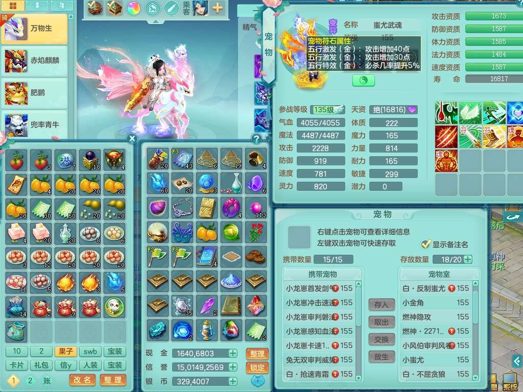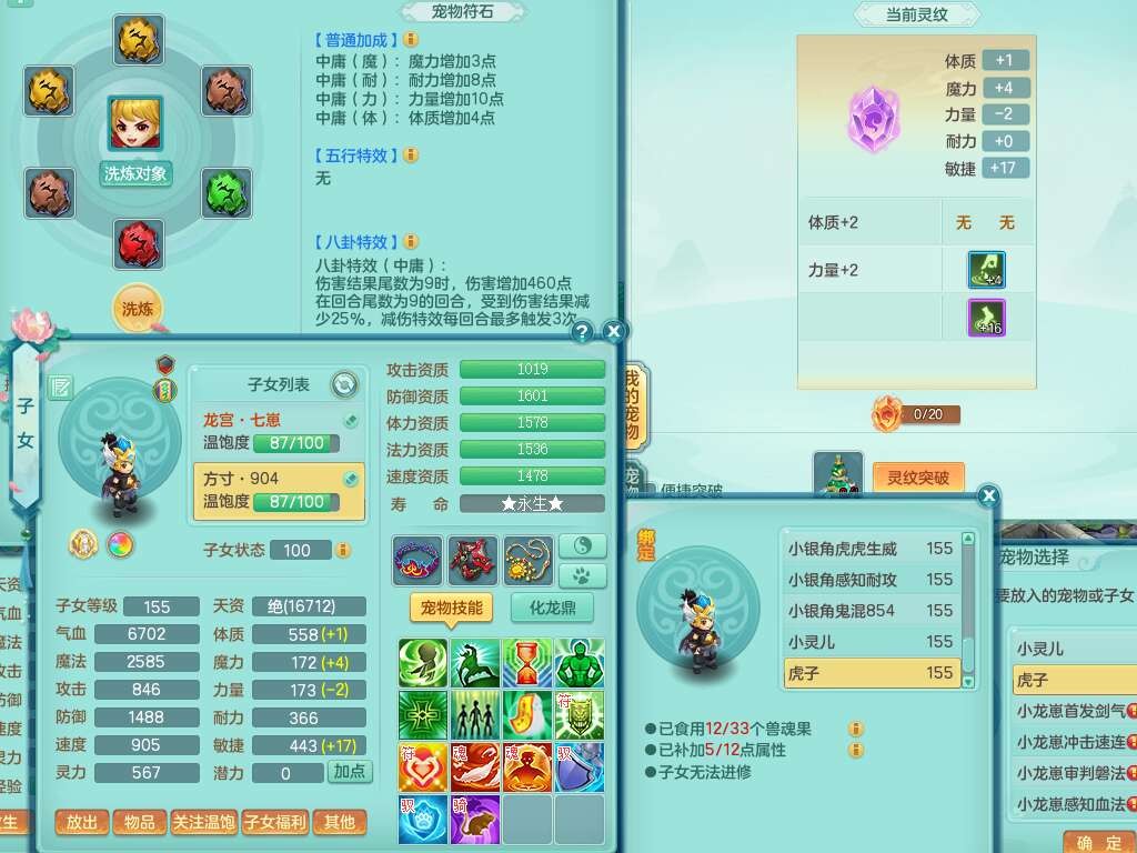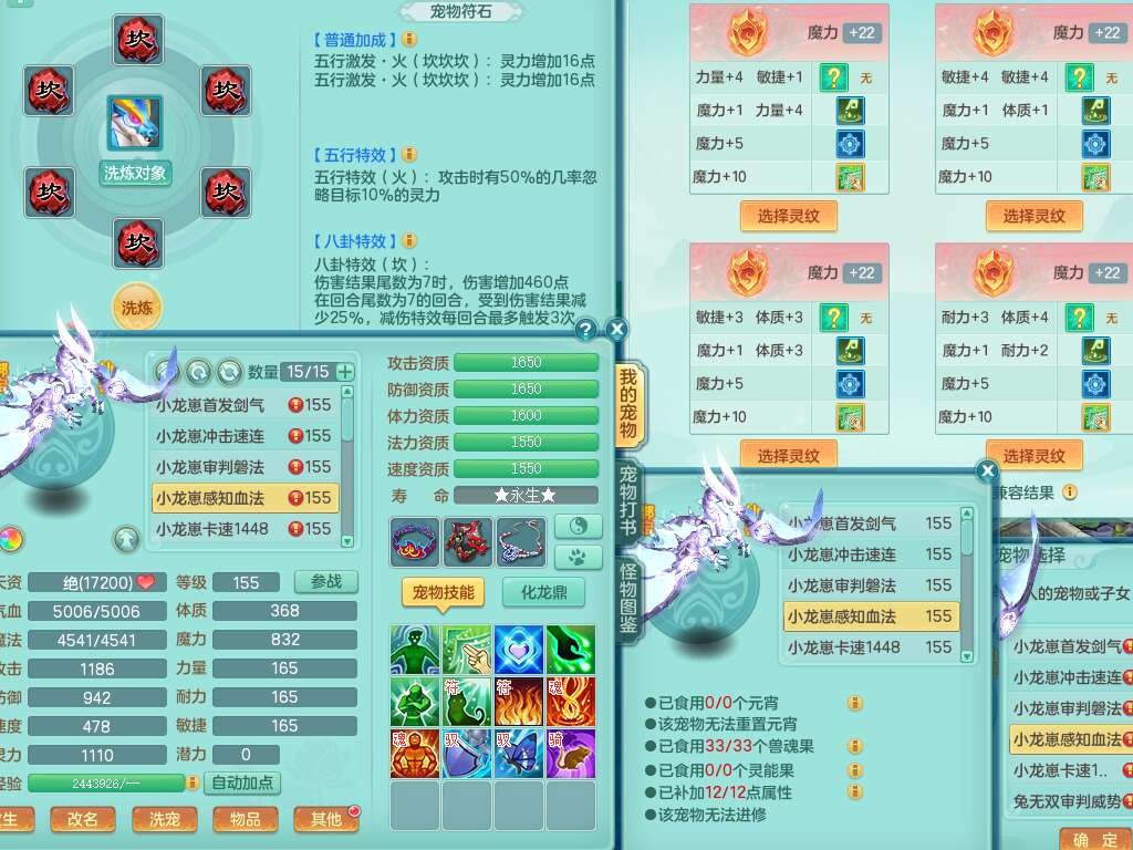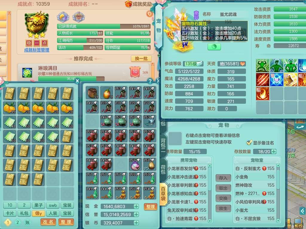 J22028醉生梦死159女五庄,精灵歌+悟,5内丹龙+80仙兽灵,2内胆神+34神兽内胆碎片,2只六技能镜花灵,1只六技能龙姬,2特殊(虎虎,守护),934易成长武器,崩山衣服,愤怒单加54腰带,5.5基础鼎,13个永久格子,6个纯六字,2个五字,综合13只满果子,宠排在榜,经验修炼在榜,永久称谓,2只双人坐骑,带329万神武币。