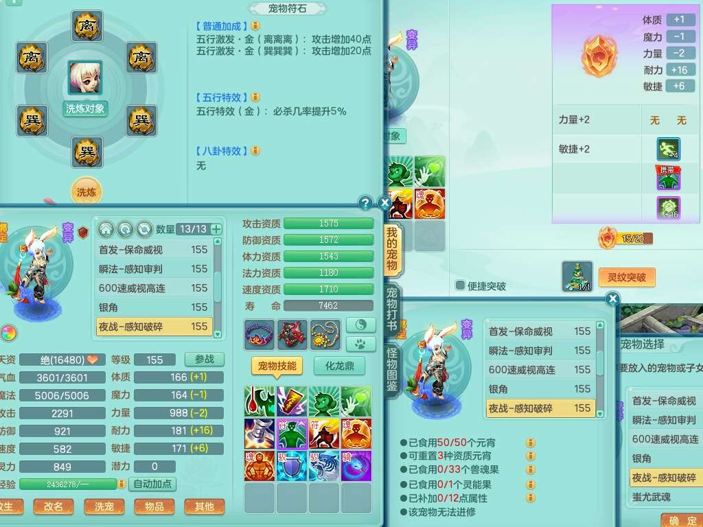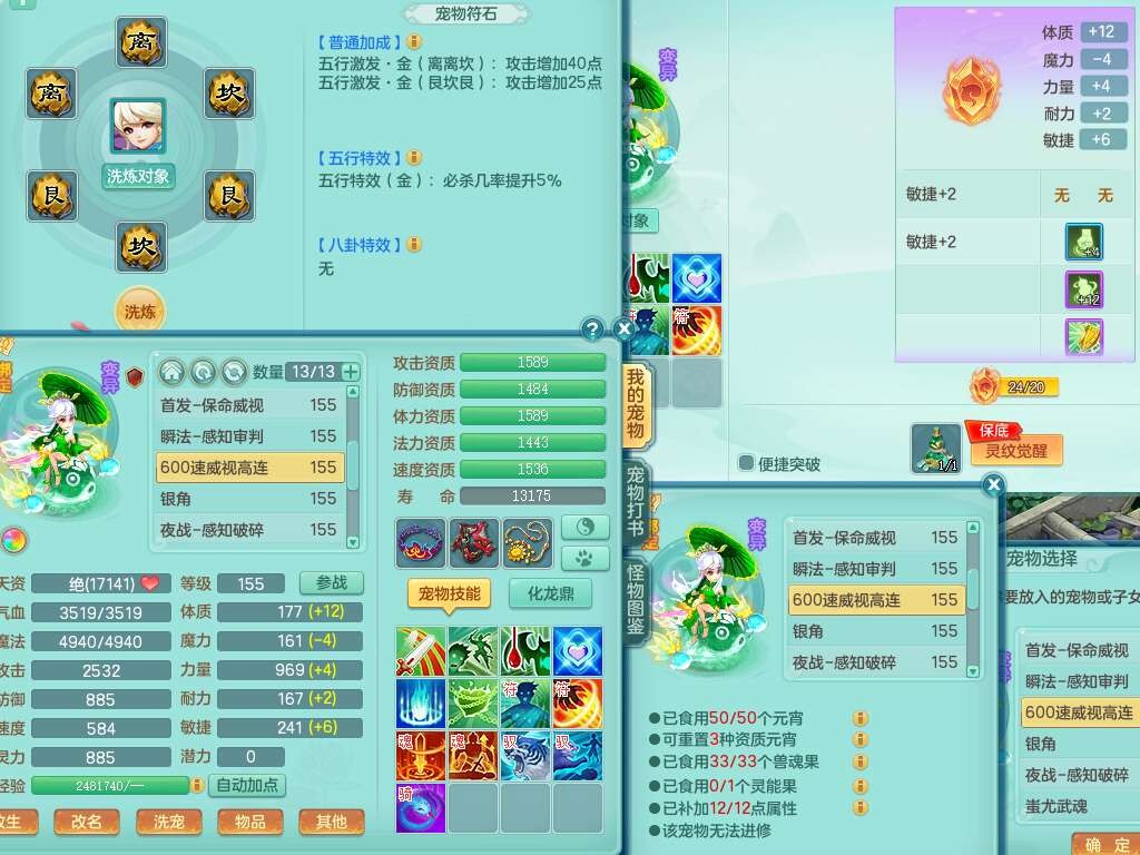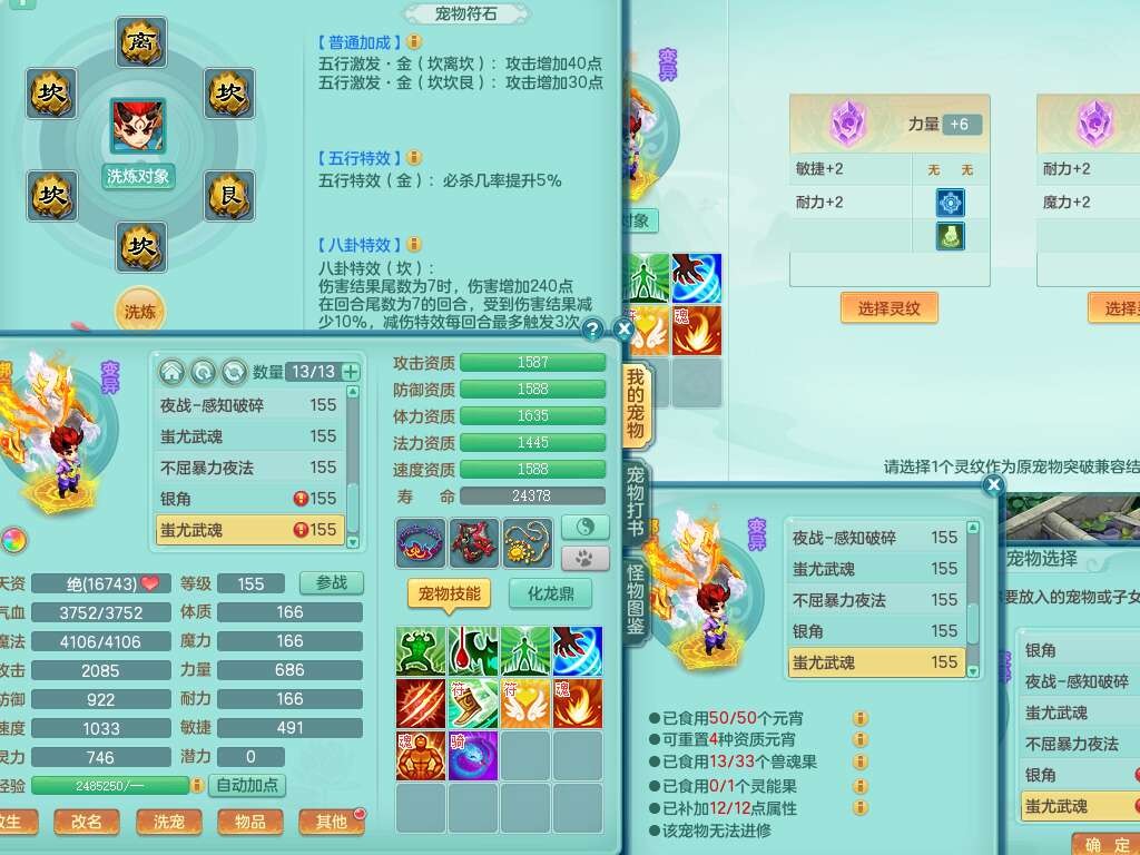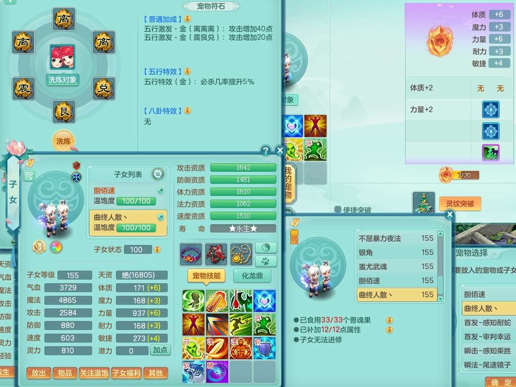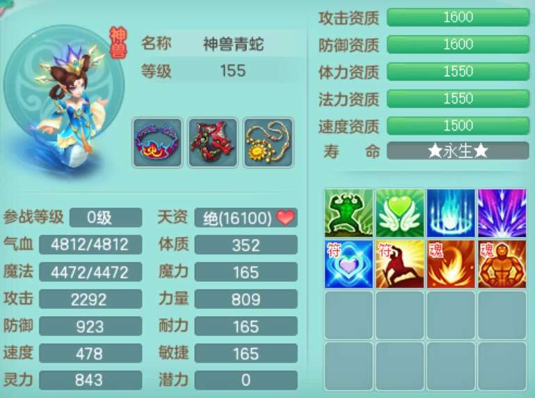 A22026彩云追月159女灵月山,精灵舞,1内胆神青蛇,3只神兽+33神兽内胆碎片,3只觉醒,1只六技能龙姬,3只六技能镜花灵,1特殊(舍身),三红易成长神佑罗汉项链,愤怒五特,躲避明镜单加50衣服,崩山衣服,狂暴破血武器,可转物理,2个五字,8只满果子,双人坐骑。