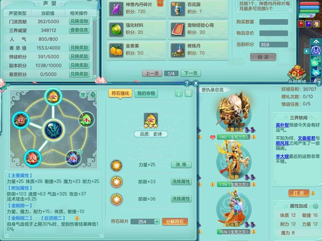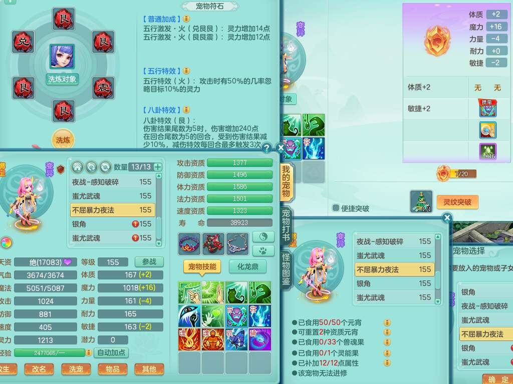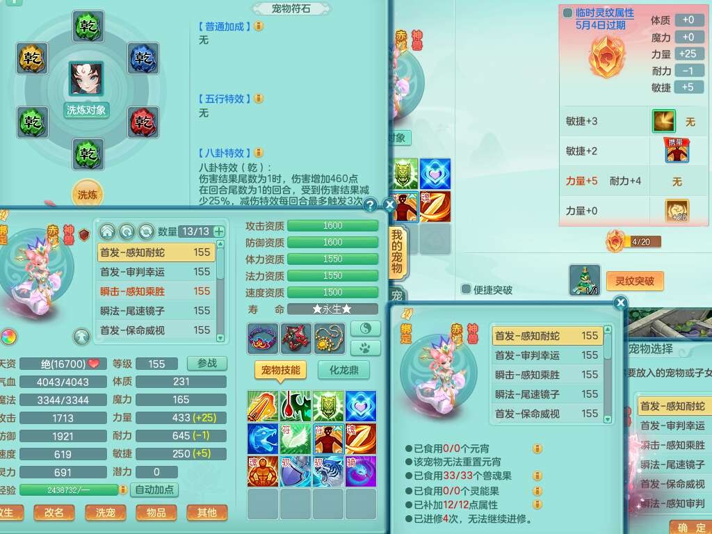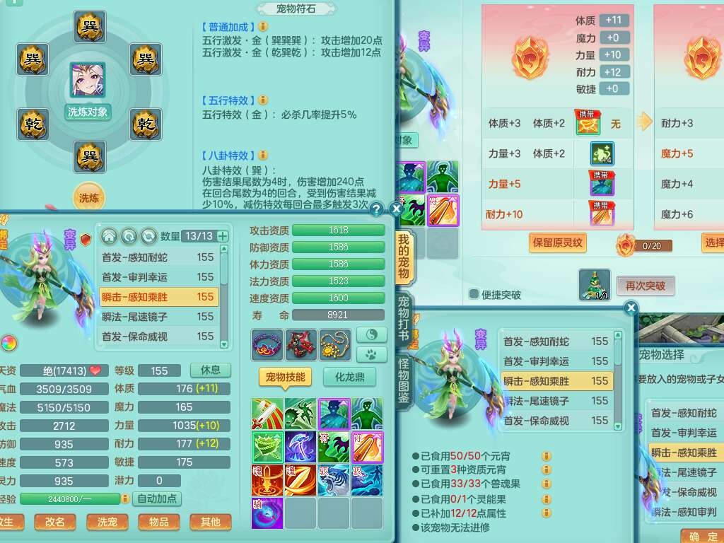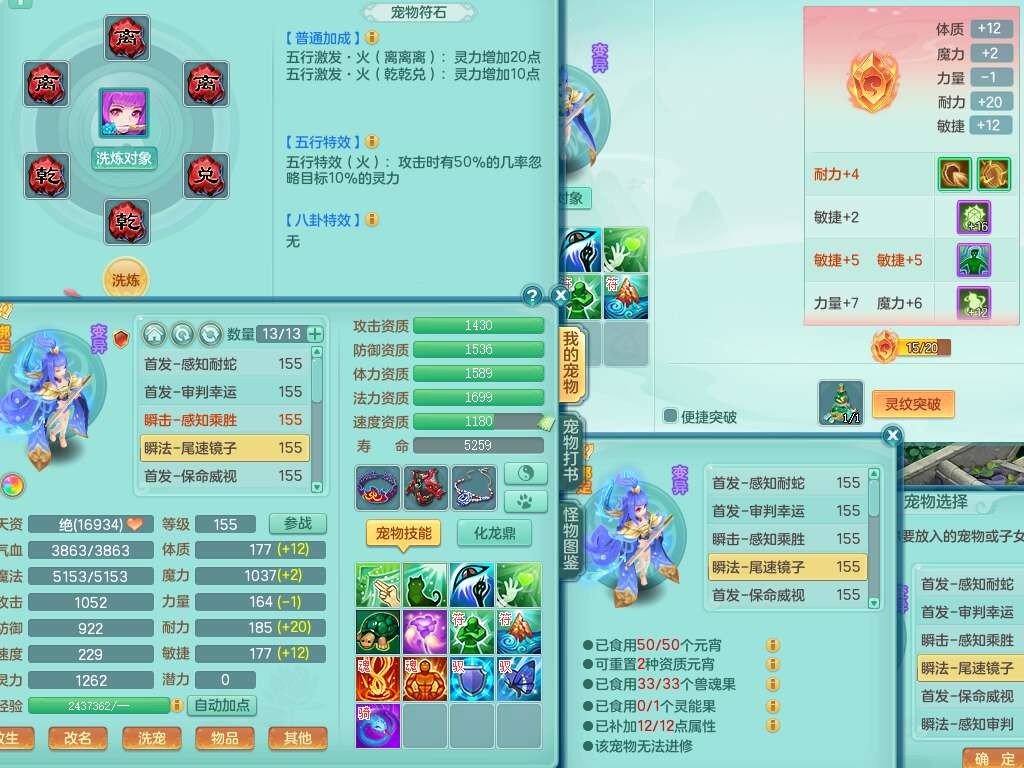 A22026彩云追月159女灵月山,精灵舞,1内胆神青蛇,3只神兽+33神兽内胆碎片,3只觉醒,1只六技能龙姬,3只六技能镜花灵,1特殊(舍身),三红易成长神佑罗汉项链,愤怒五特,躲避明镜单加50衣服,崩山衣服,狂暴破血武器,可转物理,2个五字,8只满果子,双人坐骑。