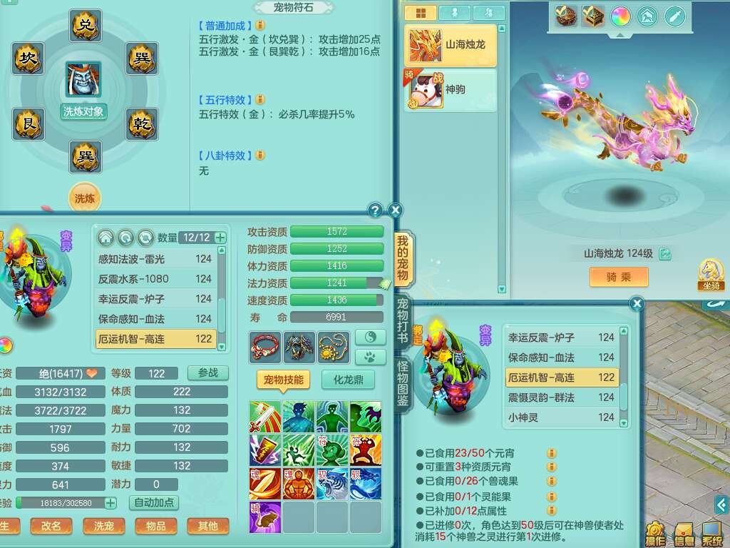 K22023山河盛世119男力天魔,当前服务器等级105级,1内胆神,5只满果子,宠排在榜,成就在榜,山海烛龙,神驹红红火火+西瓜冰武器+火焰之力,月卡还有177天。