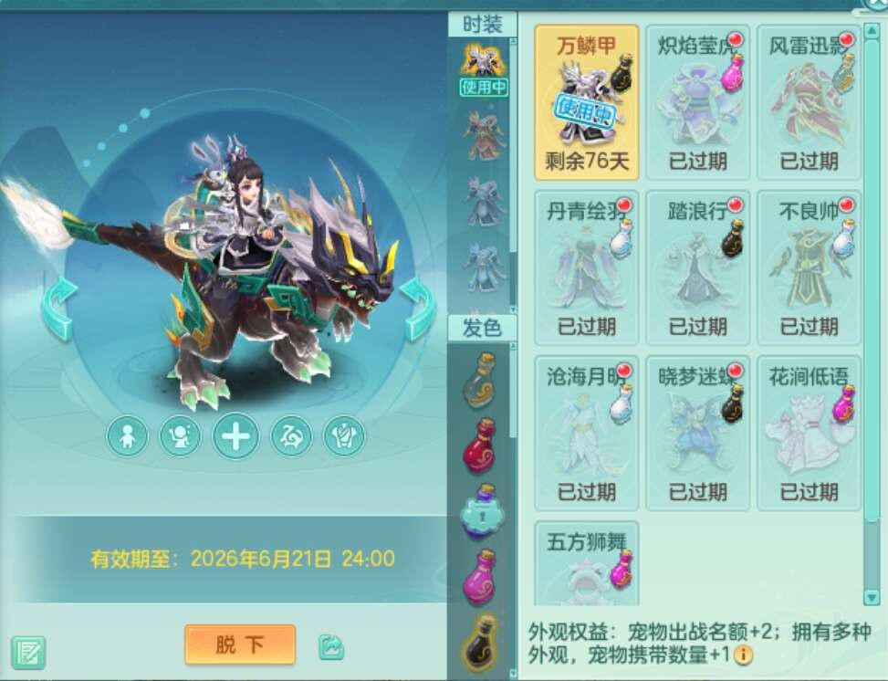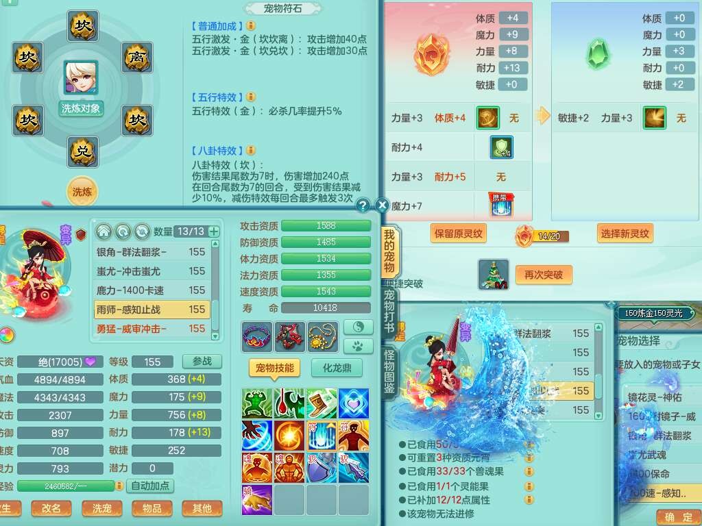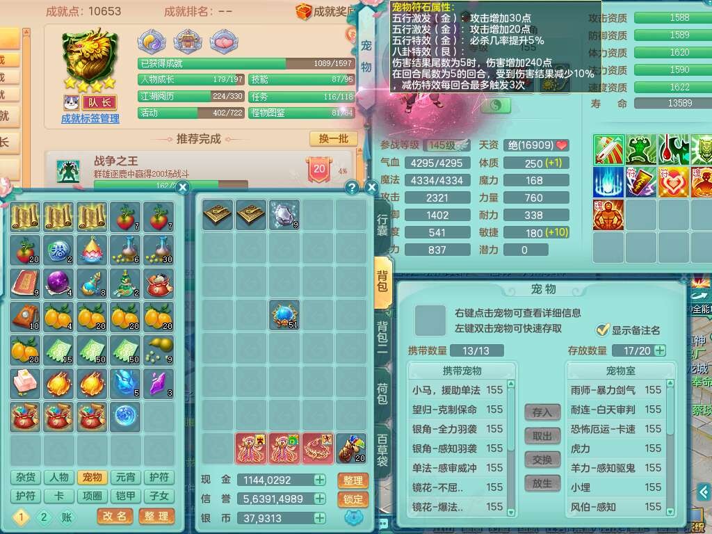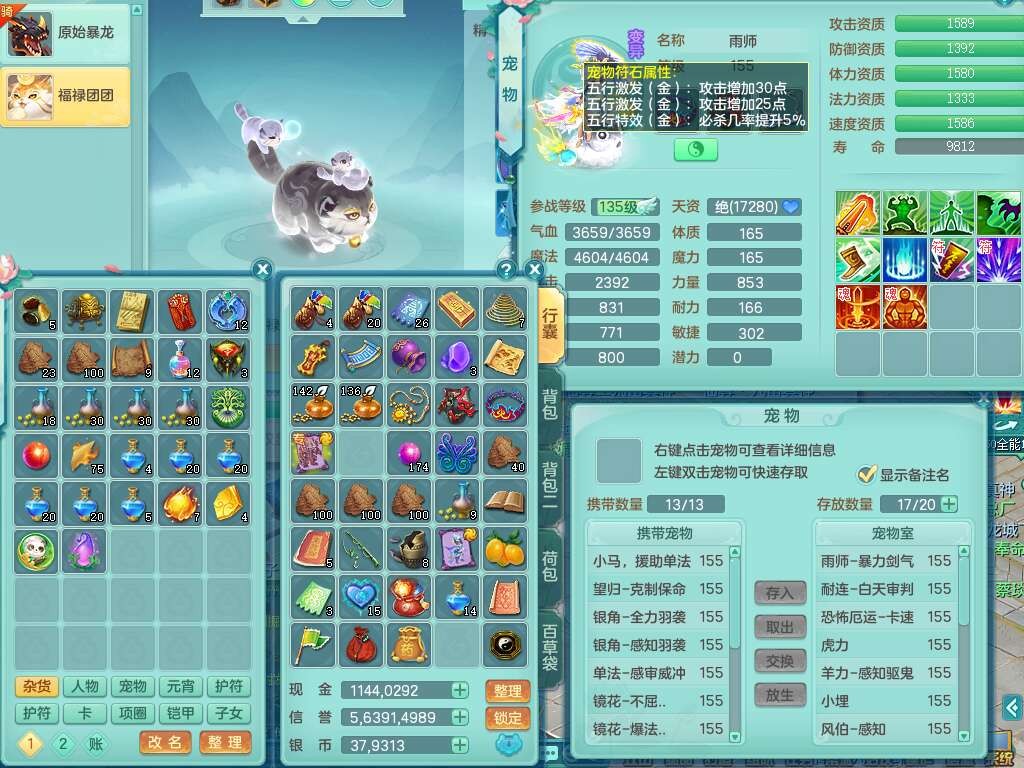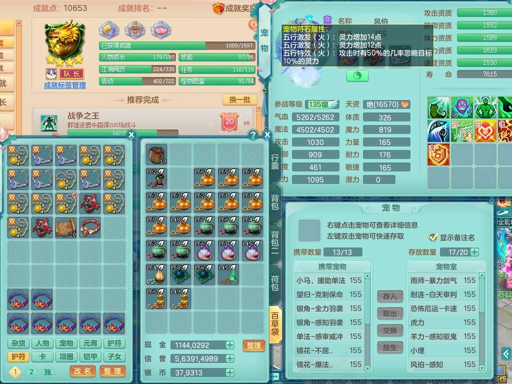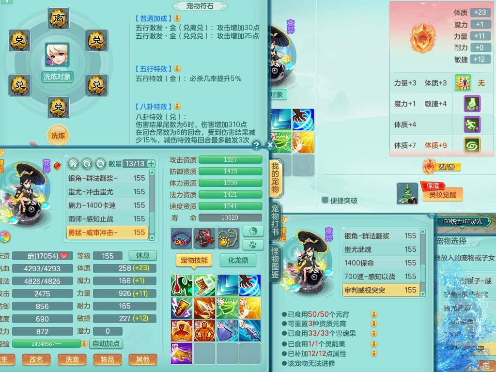 J22021龙腾九州159女万兽,精灵舞,1内胆神,2宠皮,10只觉醒,6特殊(羽袭2,翻江,以战,勇猛,堕天),3只6技能镜花灵,三红易成长疾速冷却群体守护单加帽子,911狂暴单加53武器,崩山裂地单加衣服,坚毅单加52链子,易成长四海单加54腰带,全身高单加,化龙鼎5.5+70攻,13只满果子,7个纯六字,宠排在榜,修炼在榜,纯白团团,原始暴龙洪荒,背包51仙兽蛋,月卡还有109天。
