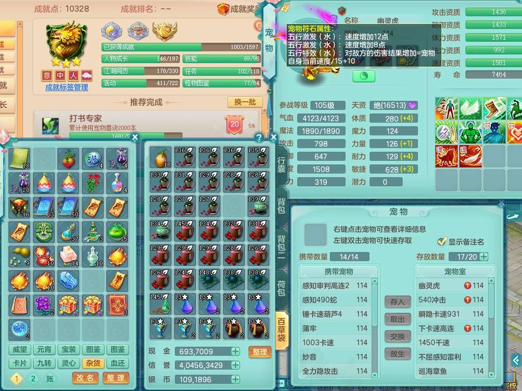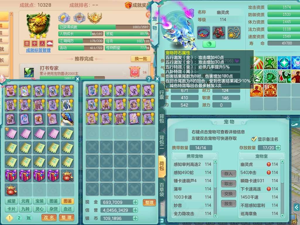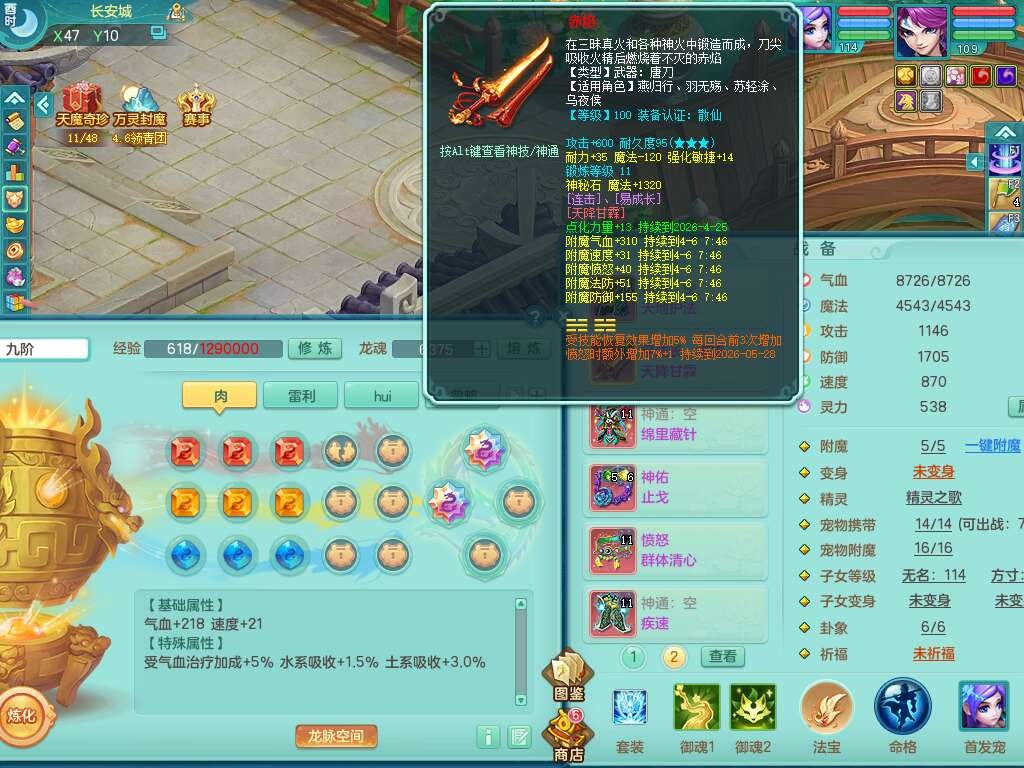 p22006扬名立万109男灵月山,精灵歌,1龙2内胆神,【7只觉醒,已潜龙】,8位靓号,2宠皮,愤怒晶清单加腰带,三红连击易成长四海单加武器,愤怒六特,2.5基础鼎,8个纯六字,20只满果子,宠排在榜,2只双人坐骑,背包49仙兽灵,月卡还有21天。