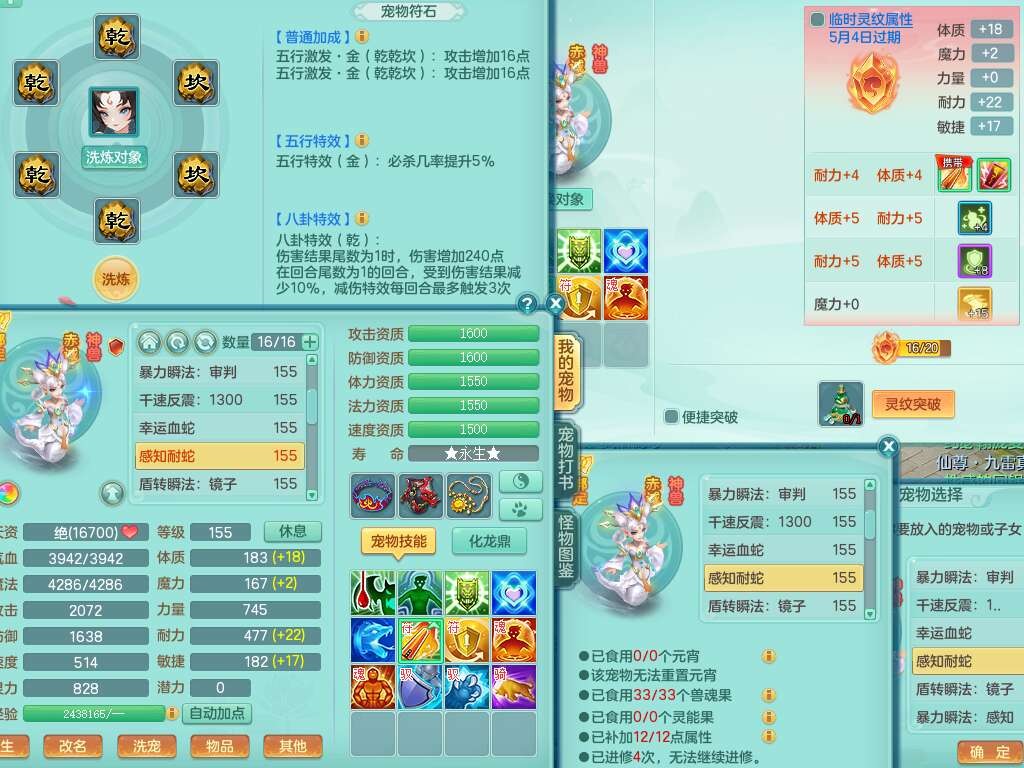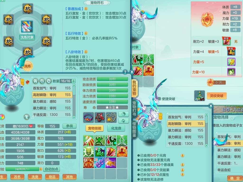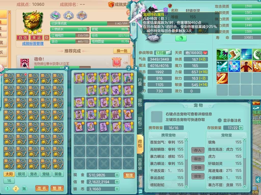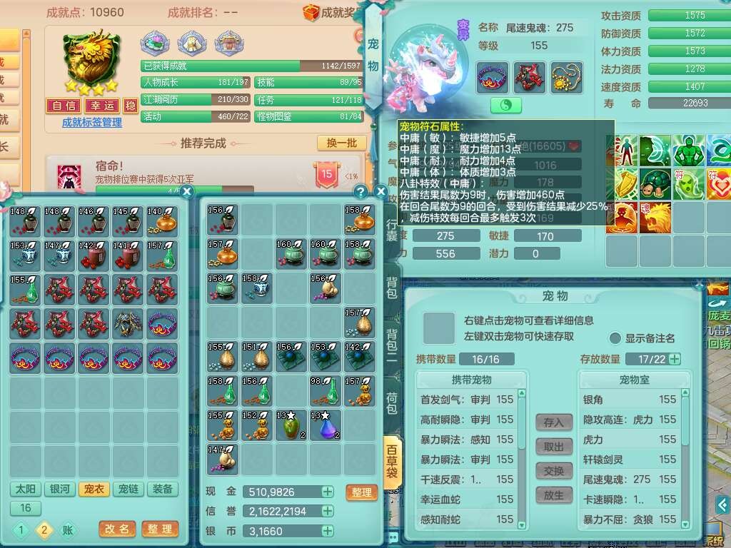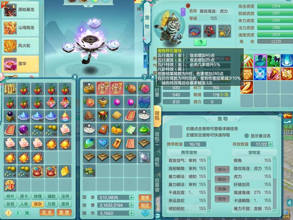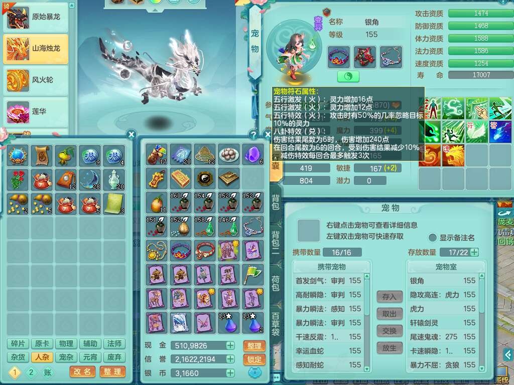 J21994超凡入圣159男万兽,精灵舞,5龙(1龙无内),1龙破镜,2内胆神+1颗神兽内丹,9只觉醒,1特殊(登云),4位靓号ABBB不含4,10宠皮,2只六技能镜花灵,934狂暴武器,崩山单加头,易成长群安单加55衣服,有件破血单加51衣服,有条272易成长单加链子,5.0基础鼎,13个格子,3个纯六字,2个五字,综合16只满果子,仓库还有118个果子,绝版原始暴龙逍客+西瓜冰武器皮肤+神驹马到成功,带152天月卡。