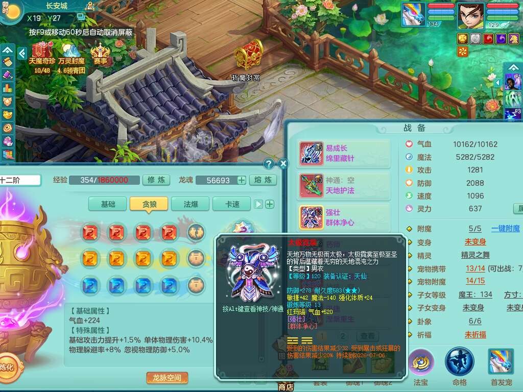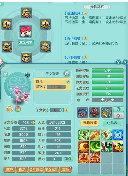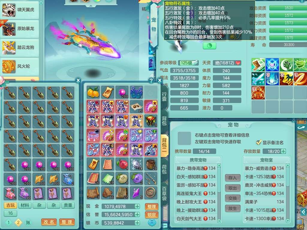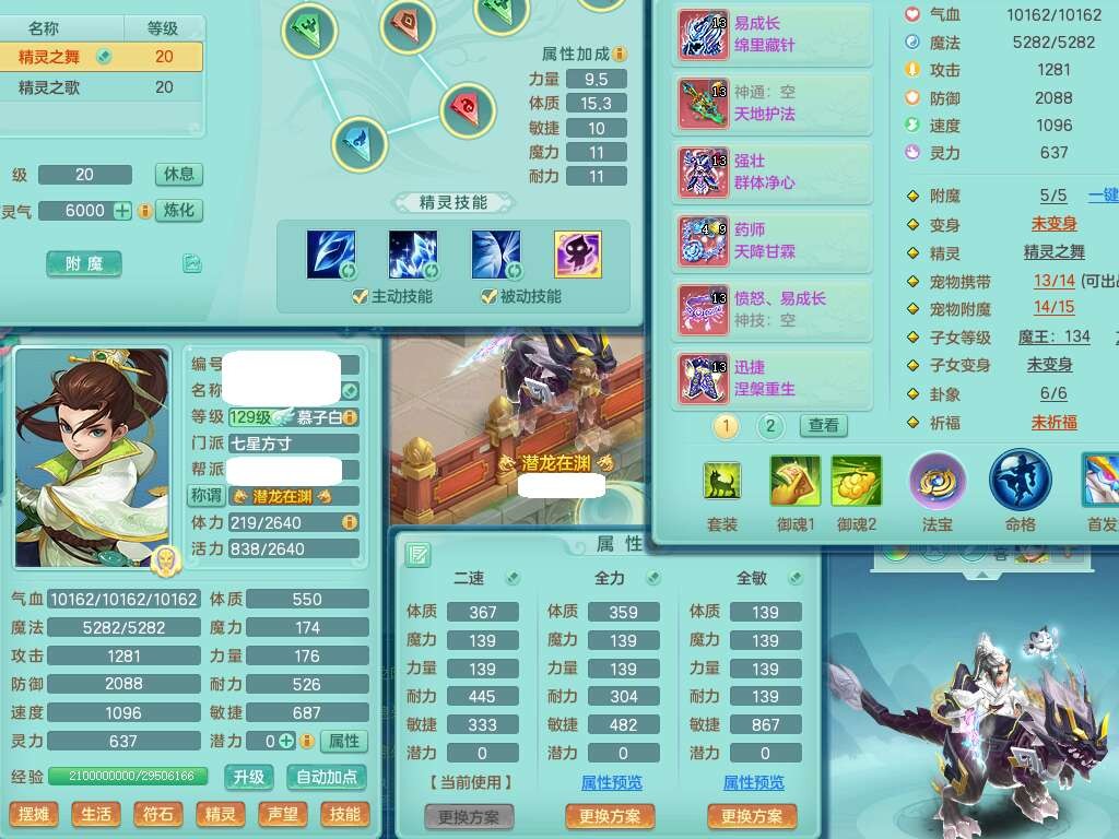 p21993风驰电掣129男方寸,精灵歌+舞,8龙2内胆神,2破镜,【12只觉醒,已潜龙】,3宠皮,4位靓号不含4,愤怒易成长单加41腰带,迅捷慈航单加44鞋子,有物理和法系装备,724必杀单加44武器,神佑单加链子,203易成长蓄力一击单加40项链,4.0基础鼎,14个纯六字,1个五字,25只满果子,仓库还有74个果子,宠排在榜,4个孩子,3个双人坐骑,原始暴龙洪荒,带539万神武币。