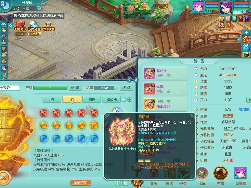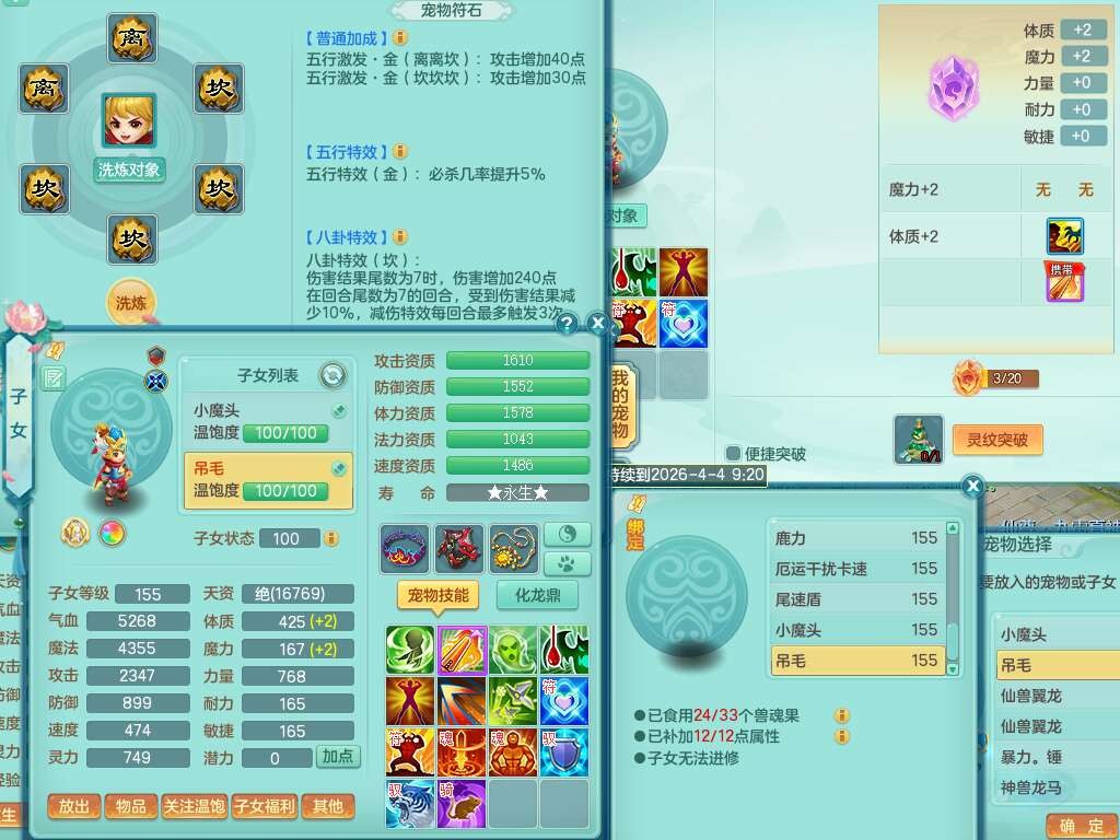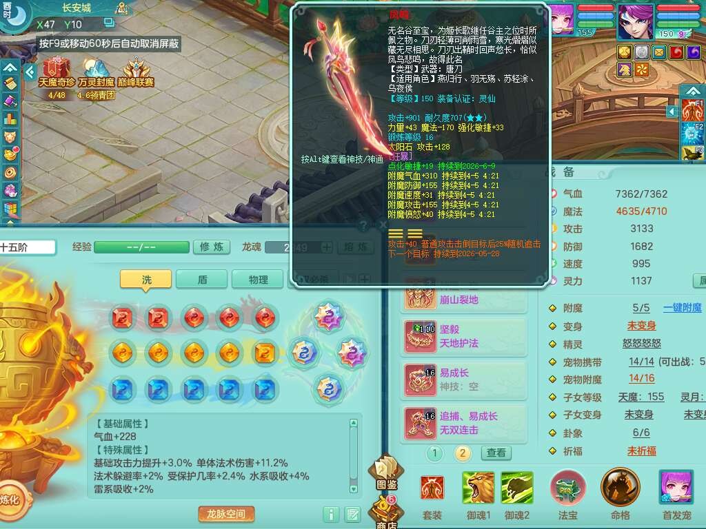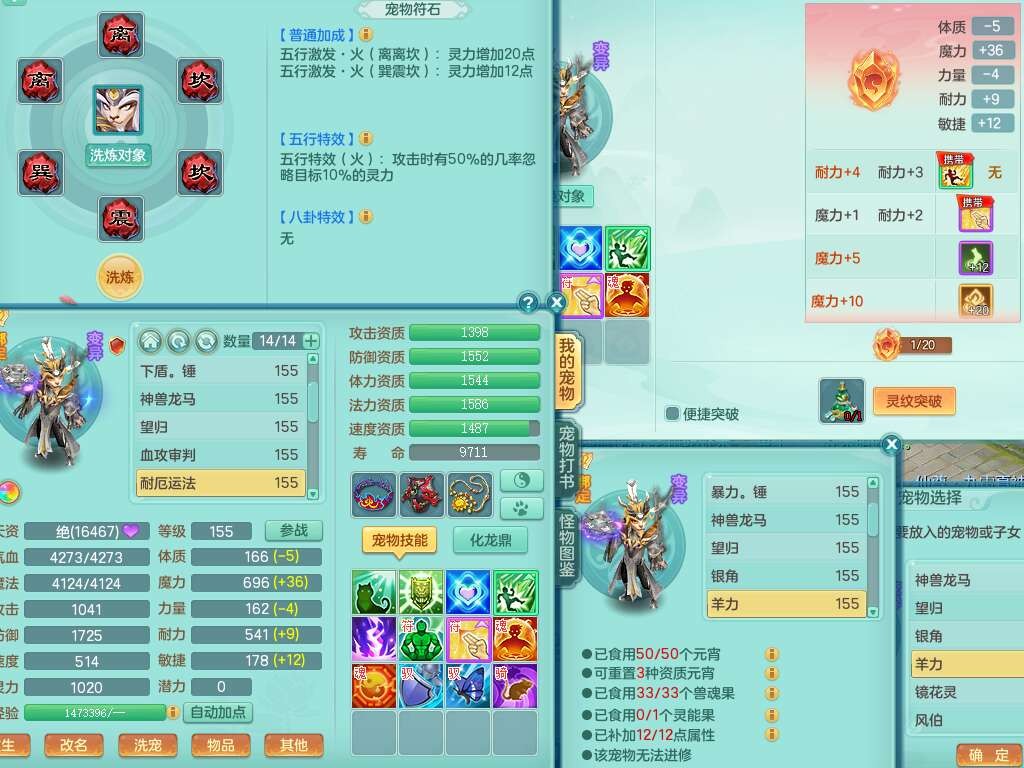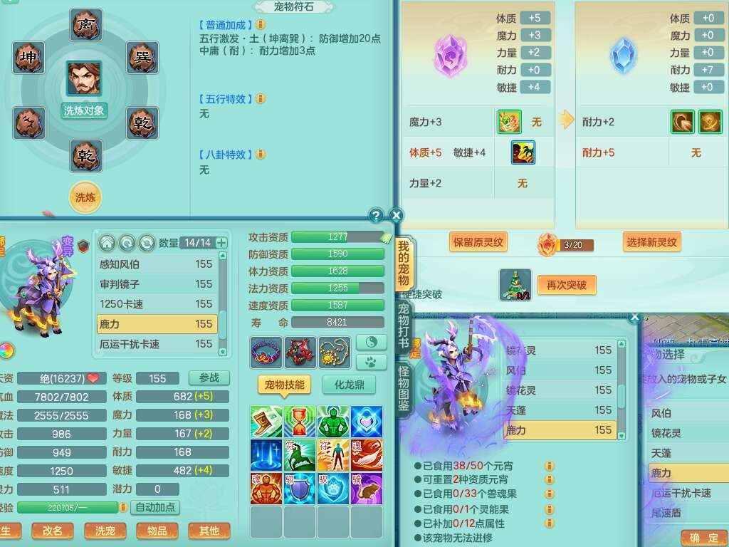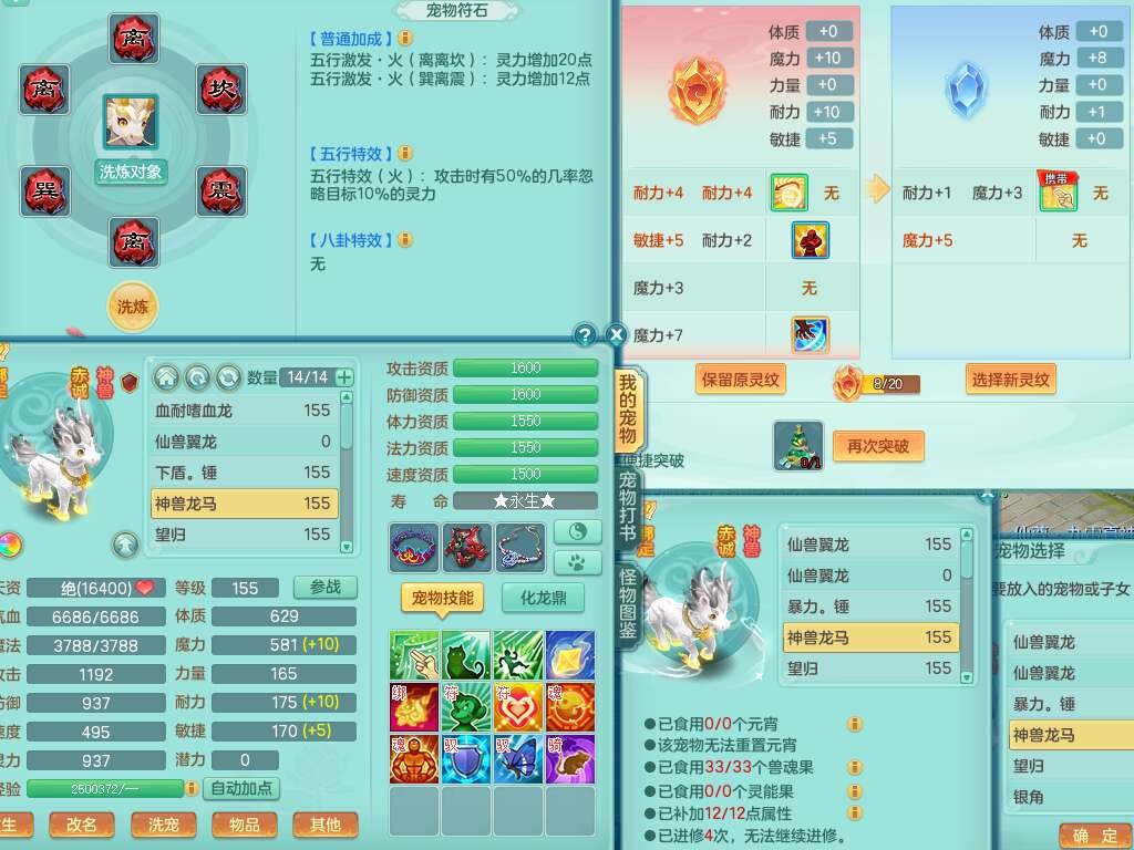 p21984阳春白雪159男万兽,精灵歌,2龙(1龙无内),2内胆神,1破镜,4只觉醒,1只6技能镜花灵,901狂暴单加武器,崩山衣服,坚毅罗汉链子,三红追捕易成长破血单加鞋子,4.5基础鼎,身上7只满果子,4只坐骑。