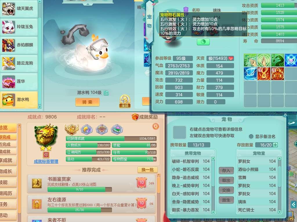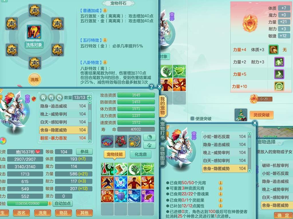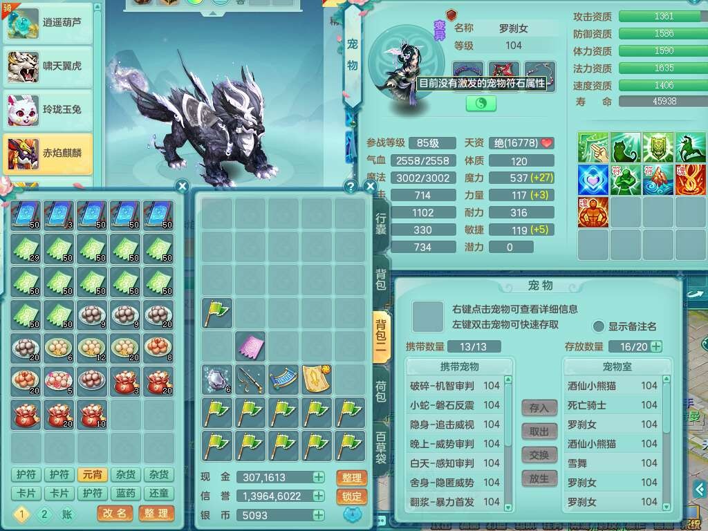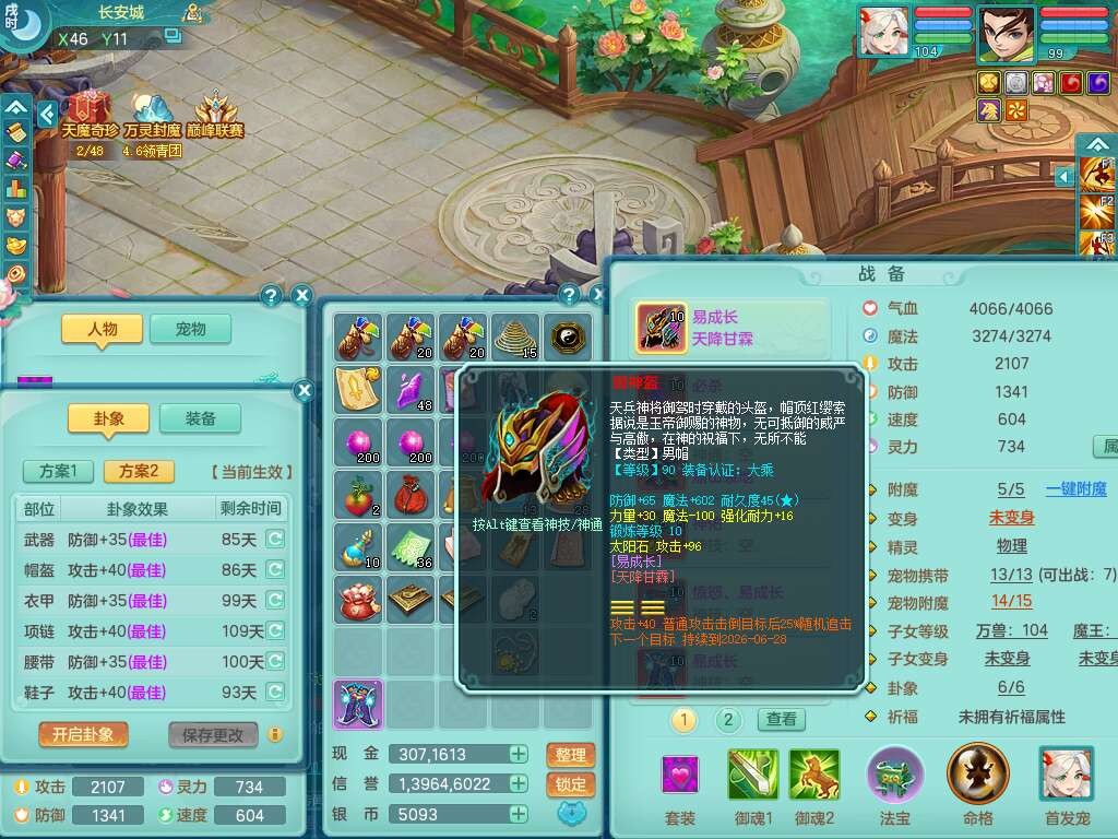 S21982今年勇99男天策,2内胆神,【已潜龙】,2宠皮,8位靓号不带4,554必杀破血武器,崩山衣服,神佑链子,愤怒易腰带,3.0基础鼎,7个纯六字,2个五字,19只满果子,背包51神兽内丹碎片,宠排在榜,5只双人坐骑,月卡还有111天。