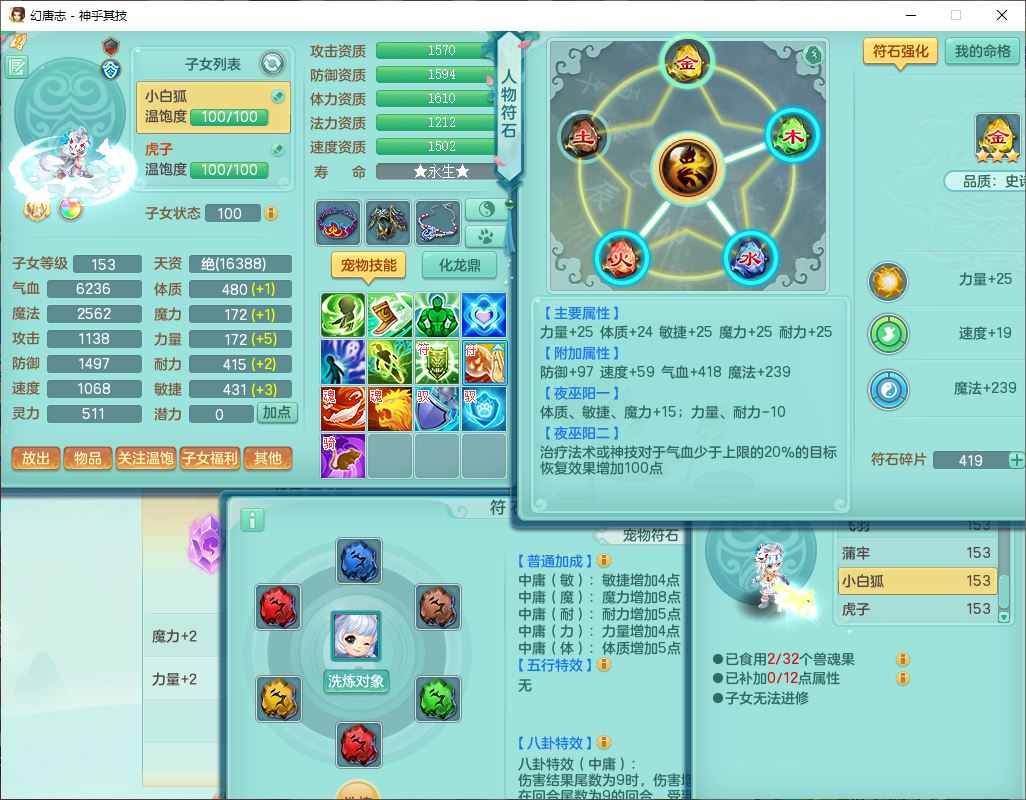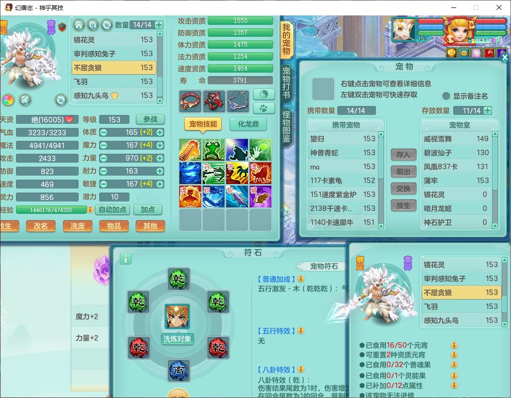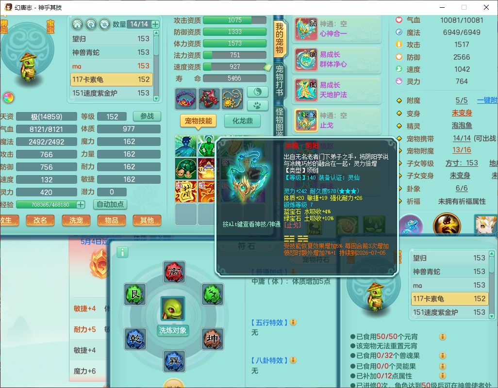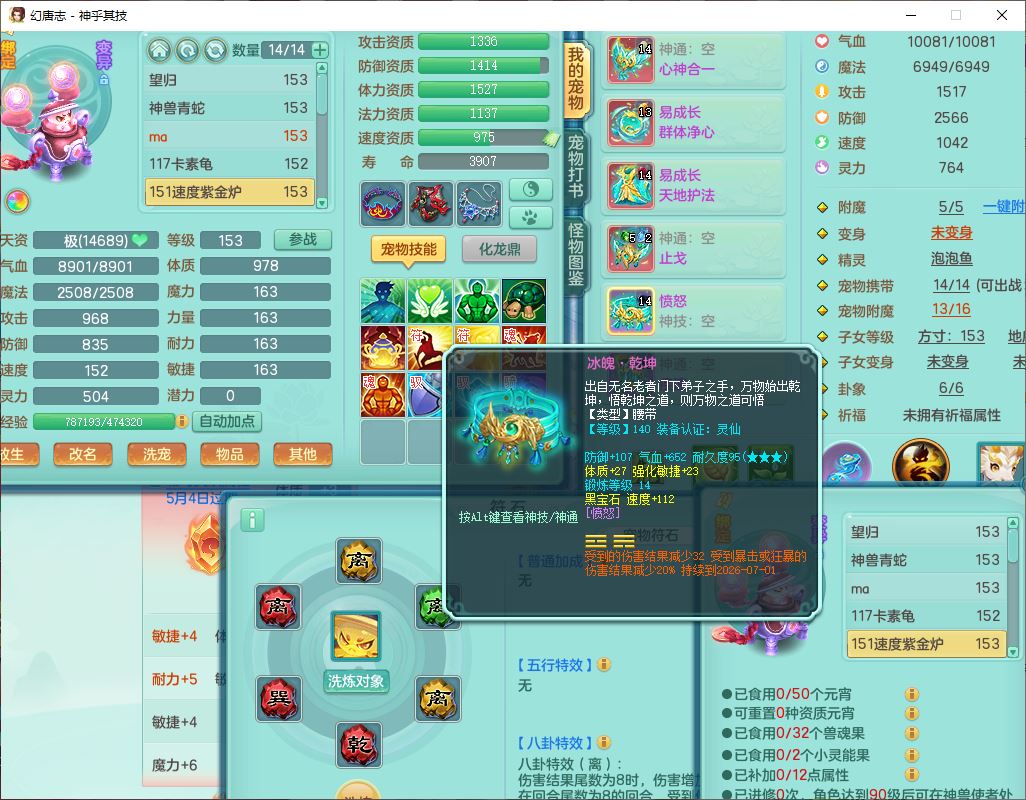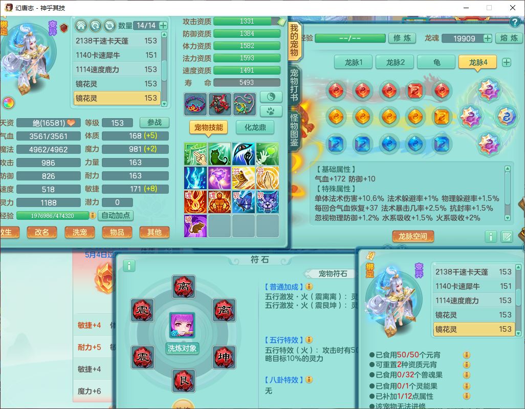 62437神乎其技148女普陀【马上发财】准精灵舞,2内(1青蛇1龙马)1望归1金炉2镜花1飞羽1童子,2宠皮2孩子(地府+方寸),8红装备,Y晶清武器,Y罗汉衣服,133天月卡,冰晶庭院195房屋186,永久背饰、精灵皮肤,经验、宠排在榜,1双人飞行坐骑,带双重