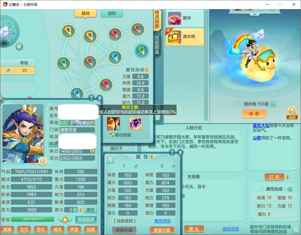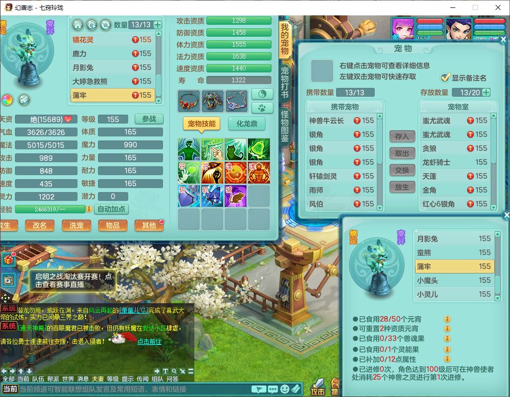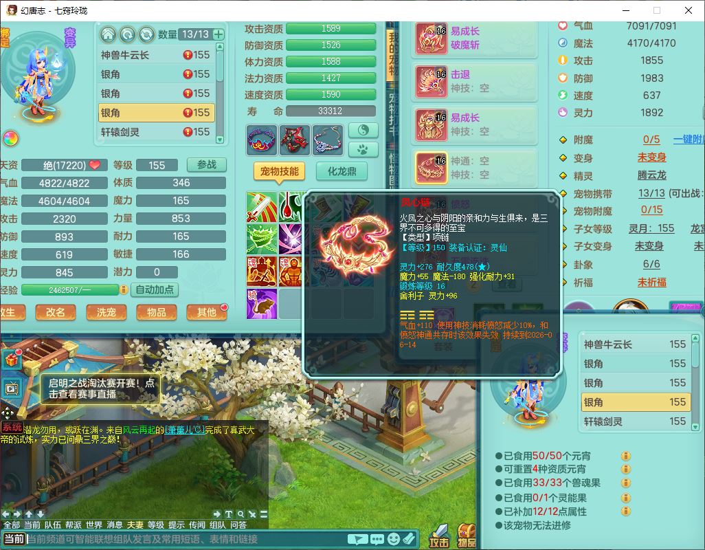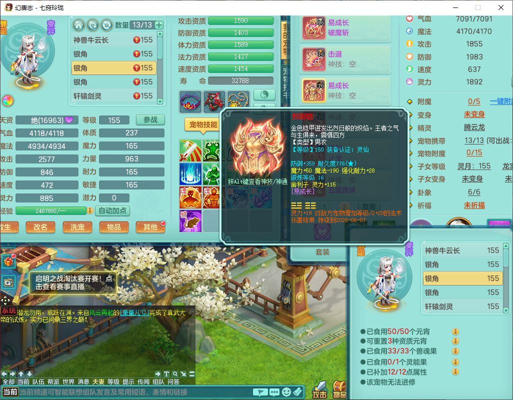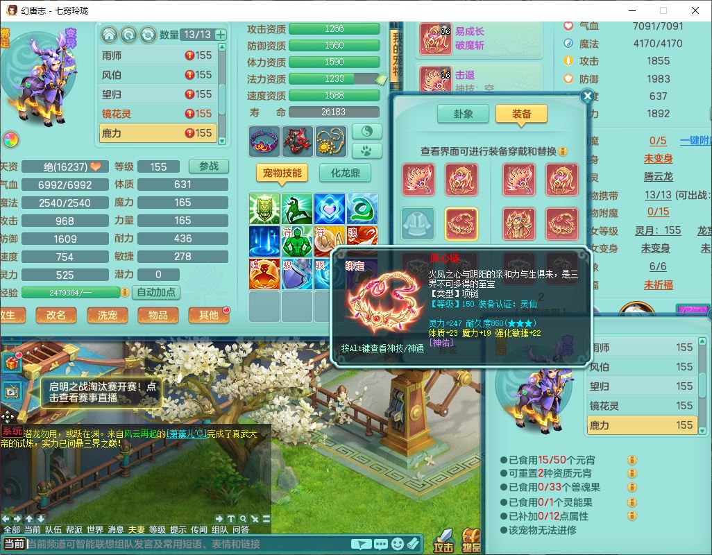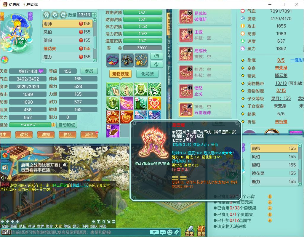 24307七窍玲珑159男天宫精灵舞,1内5特殊(影袭、琴音,兽决登云、焚心、剑胆)1镜花,8只满果子,宝宝种类齐全,7红全单加装备,Y破魔帽子,愤怒止戈腰带,五雷鞋子,一套物理装备,狂暴破魔武器,神佑项链,鼎5.5,400多w神武币,2坐骑