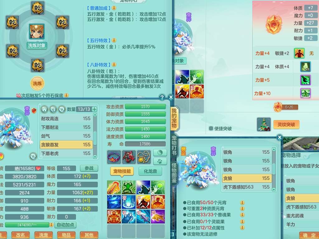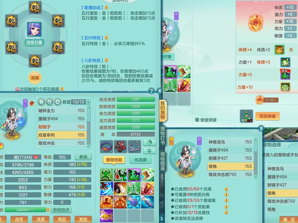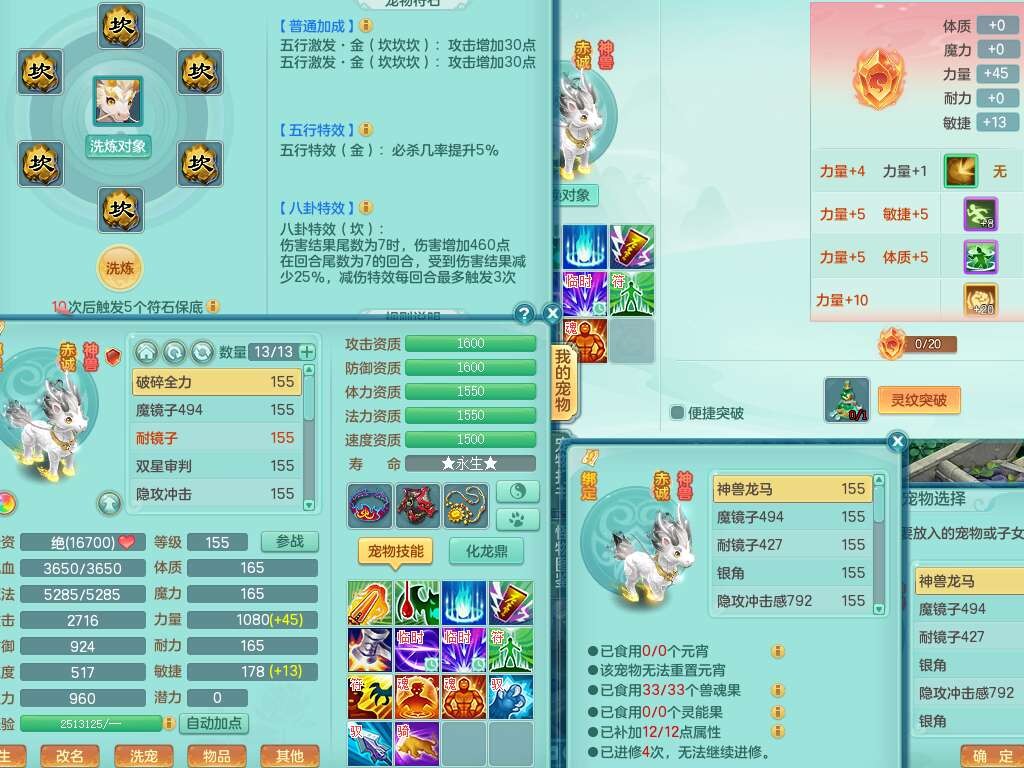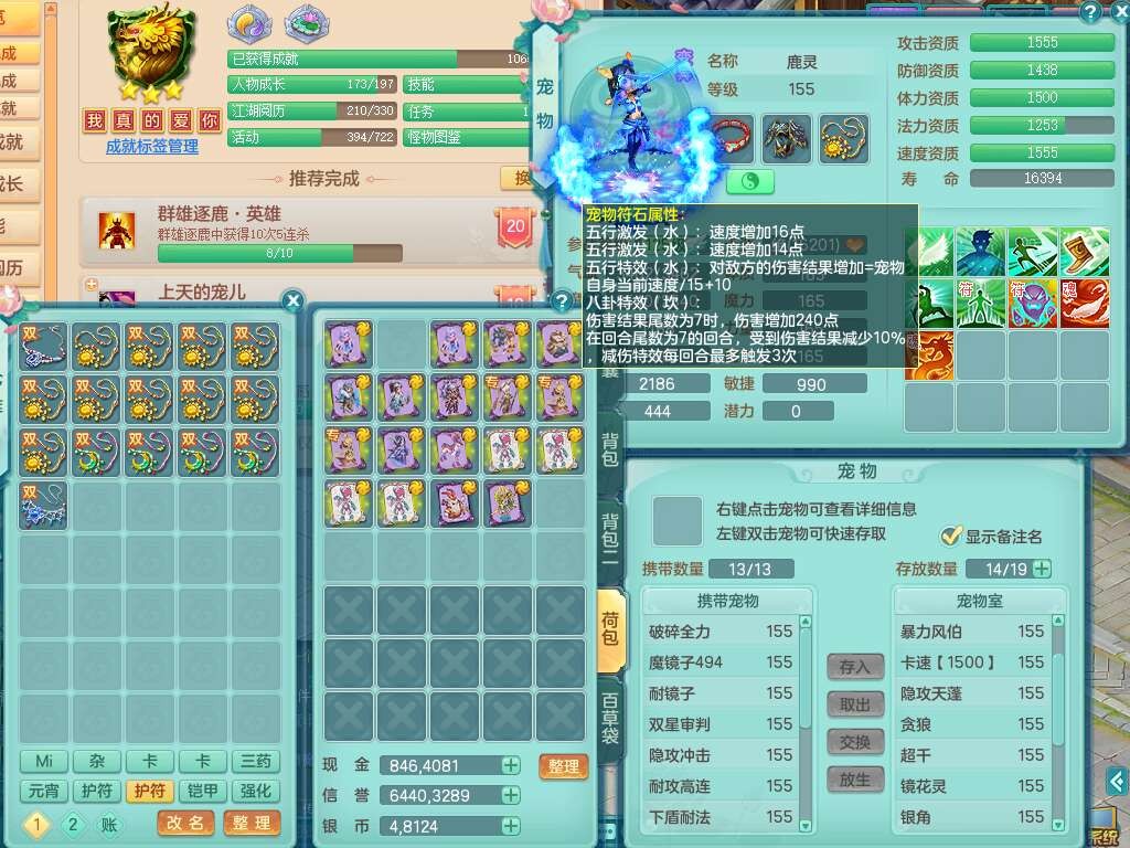 K22270浪淘沙159男无量,精灵歌,1内胆神,7觉醒(准潜龙,宝宝满足,符石只差3个主要,化龙鼎差1个赤炎龙纹,1个厚土龙纹),1宠皮,1特殊(双星),2只六技能镜花灵,双红回春疾速武器,三红幸运8愤怒清心术腰带,六特,有272易成长链子,5.5基础鼎,7个纯六字,2个五字,12只满果子,宠排在榜,双人坐骑,有50个仙兽蛋,41天月卡。