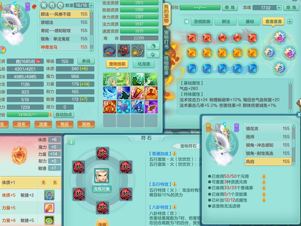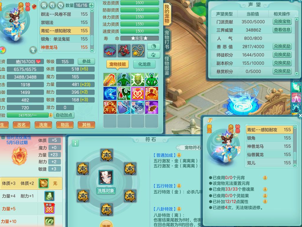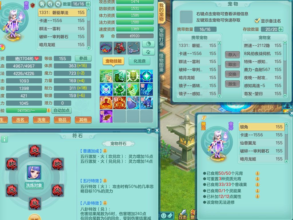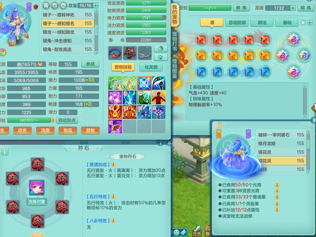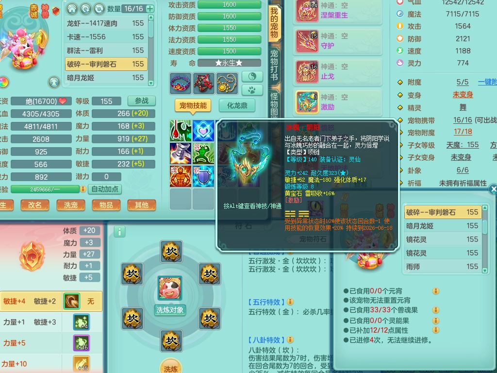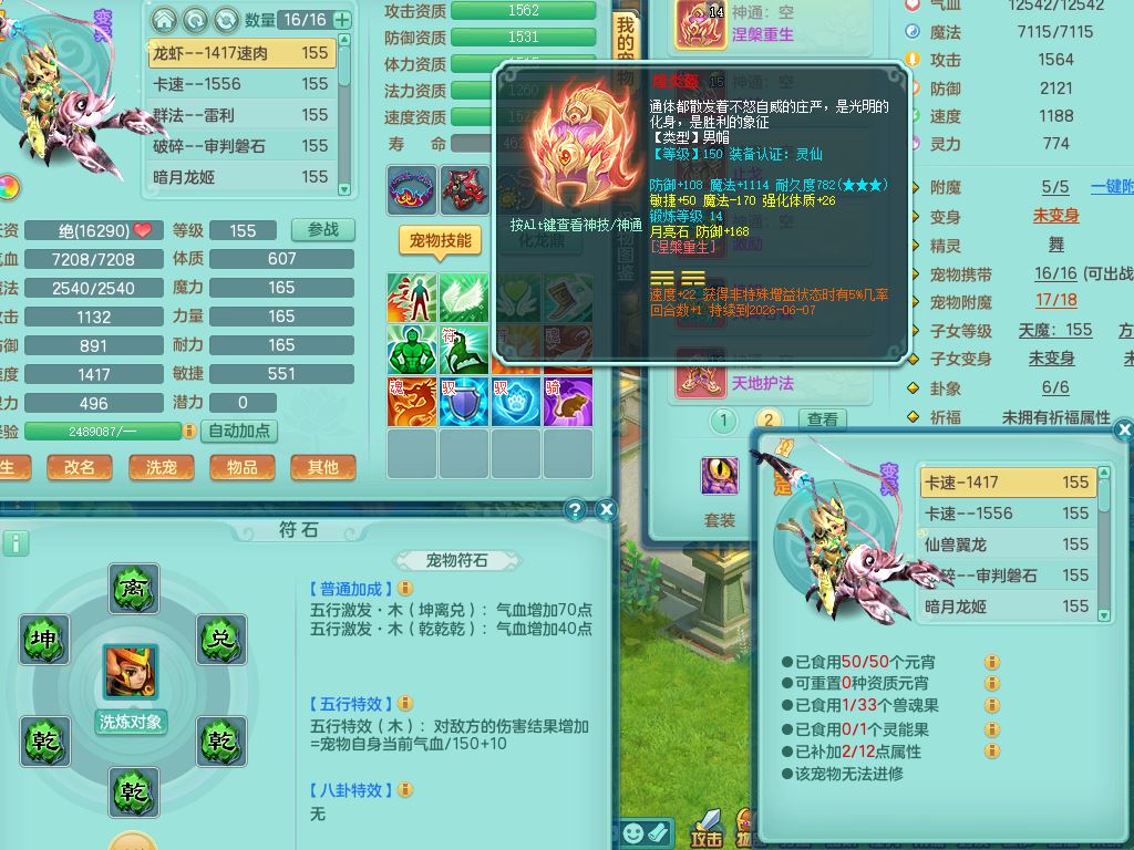 4370任剑逍遥159男普陀【潜龙过半】精灵舞,8字靓号,2内龙(换,1仙兽内丹)3内(1青蛇1龙马)3镜花1望归1特殊(禁锢、善恶,兽决琴音)4宠皮(1幻灵果),8觉醒8六字4五字9四字24只满果子,7红装备,愤怒四海腰带,鼎5.5+70+280,化龙鼎满足潜龙条件,2套符石,庭院163,房屋193,永久外观饰物、精灵皮肤,27内丹碎片,1168金币,3双人坐骑(1飞行)