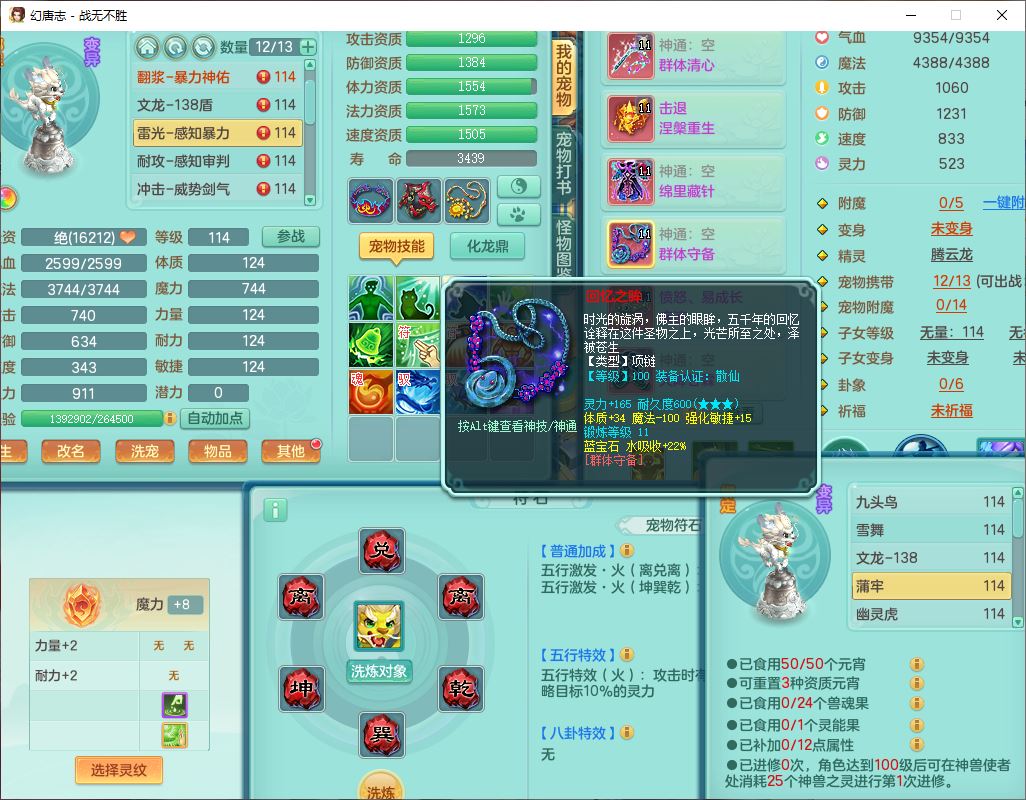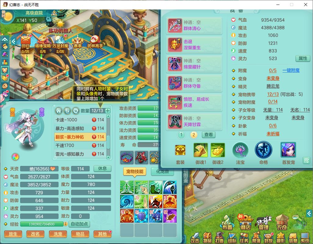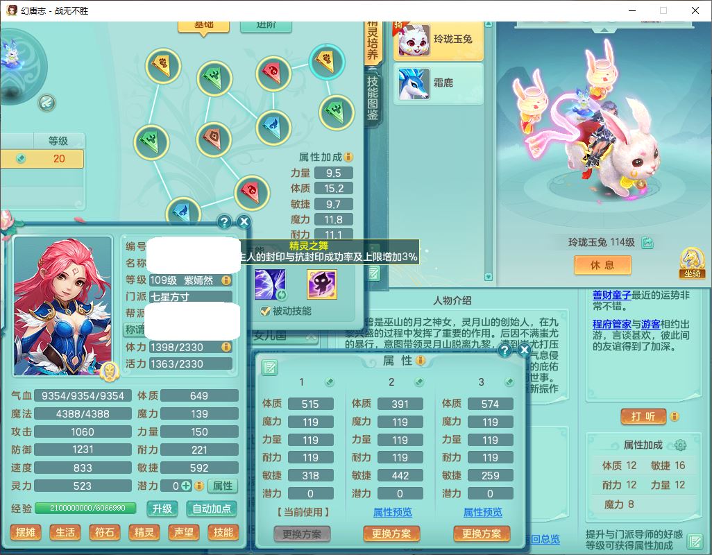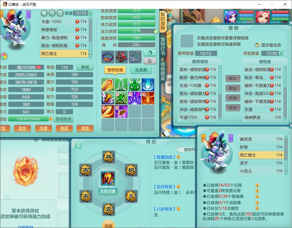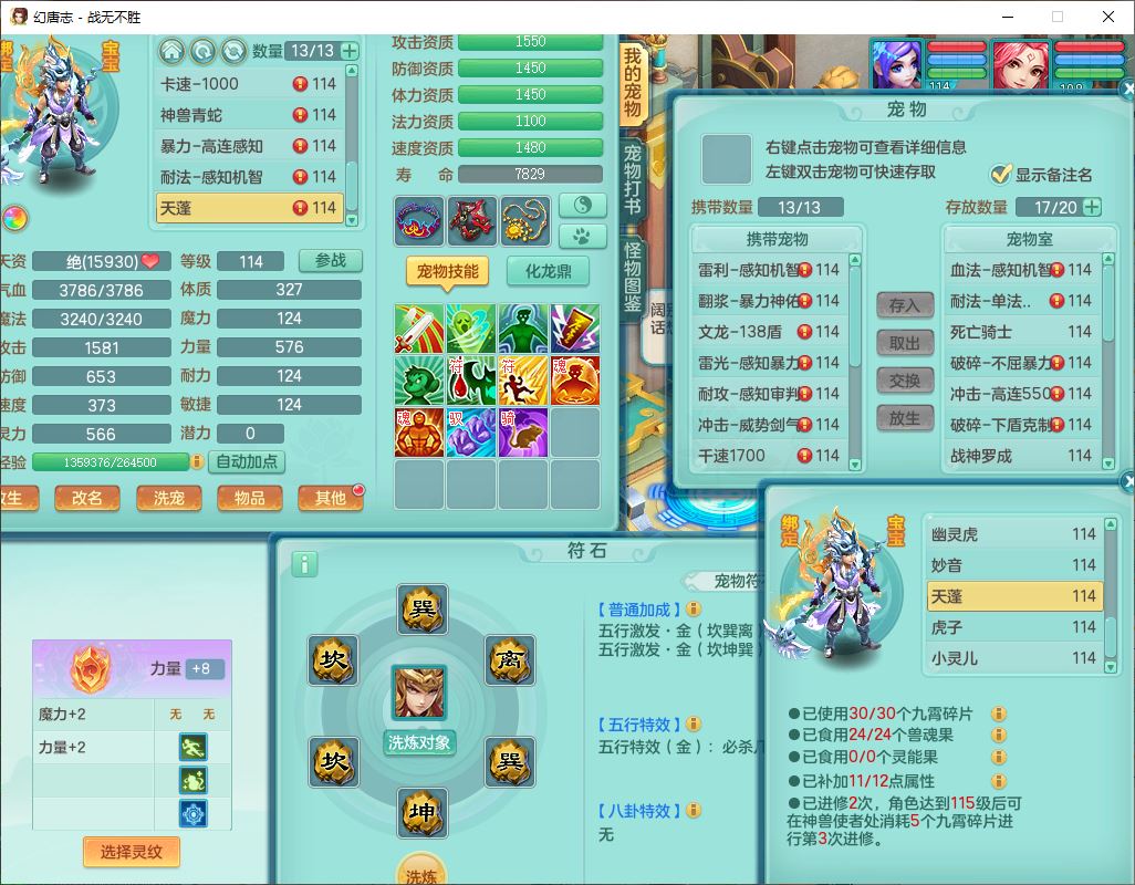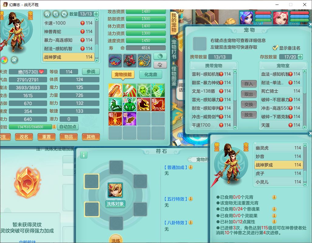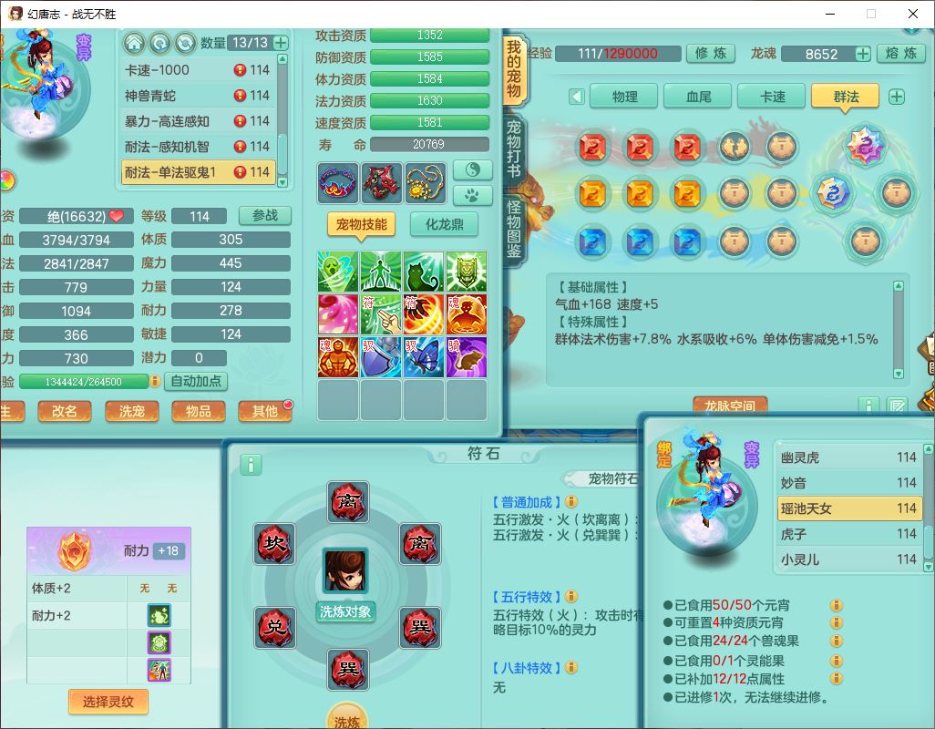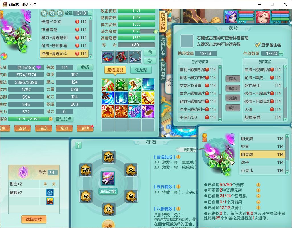 24305战无不胜109女方寸【潜龙过半】精灵舞,1内丹青蛇2羽袭1翻江1雷利8幽灵虎,4觉醒1宠皮3六字13四字(1洗练珠)13只满果子,9红全单加装备,击退慈航武器,愤怒Y疾速腰带,鼎2.5+42+168,100多w神武币,60个仙兽灵,1双人坐骑,带158奶粉