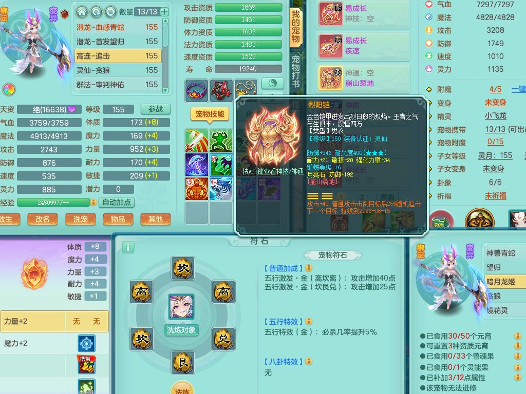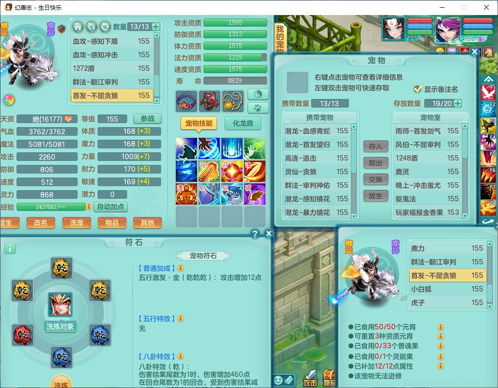 sr10377生日快乐159男万兽【暴龙泰坦+西瓜冰】精灵歌,2套星穹,1内丹青蛇1望归4镜花1龙姬2特殊(兽决藕断、勇猛)1皮,综合12只满果子7觉醒6个纯6字,7红装备,917单加Y流云武器,法爆慈航武器,震怒烽火腰带,鼎5.5,永久头饰、背饰、精灵皮肤,13个仙兽灵,2个混沌果,4坐骑(3只双人)